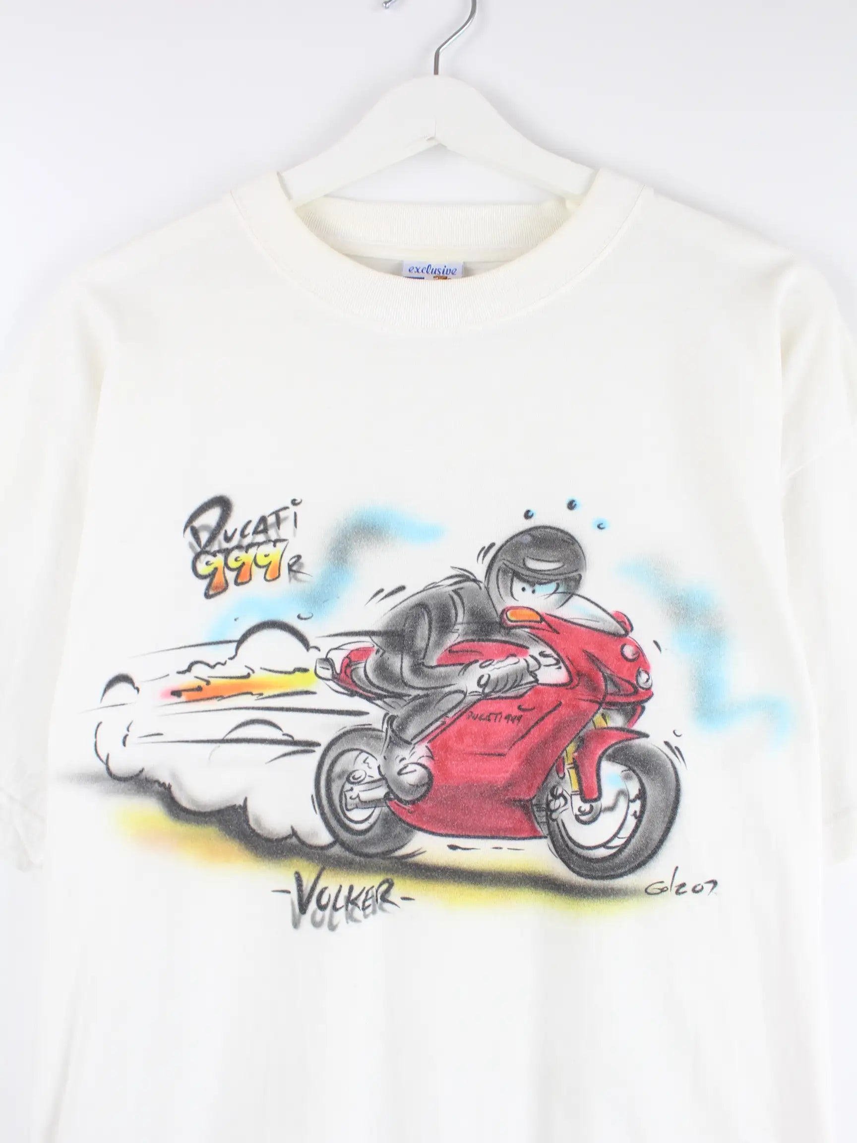 Vintage 90s Ducati Print T-Shirt Weiß L