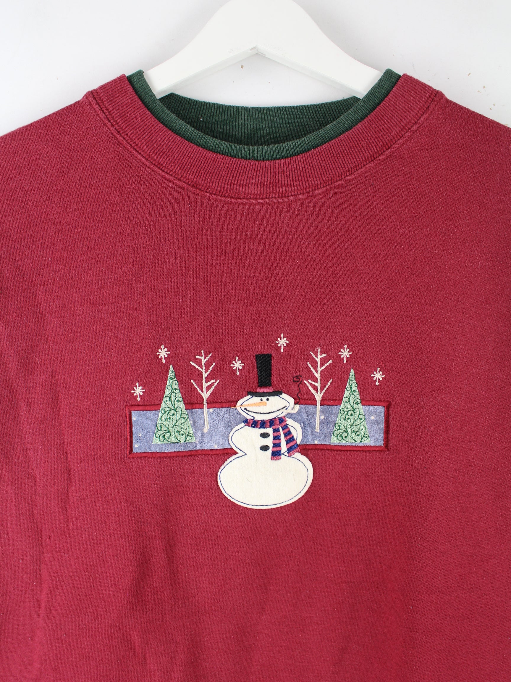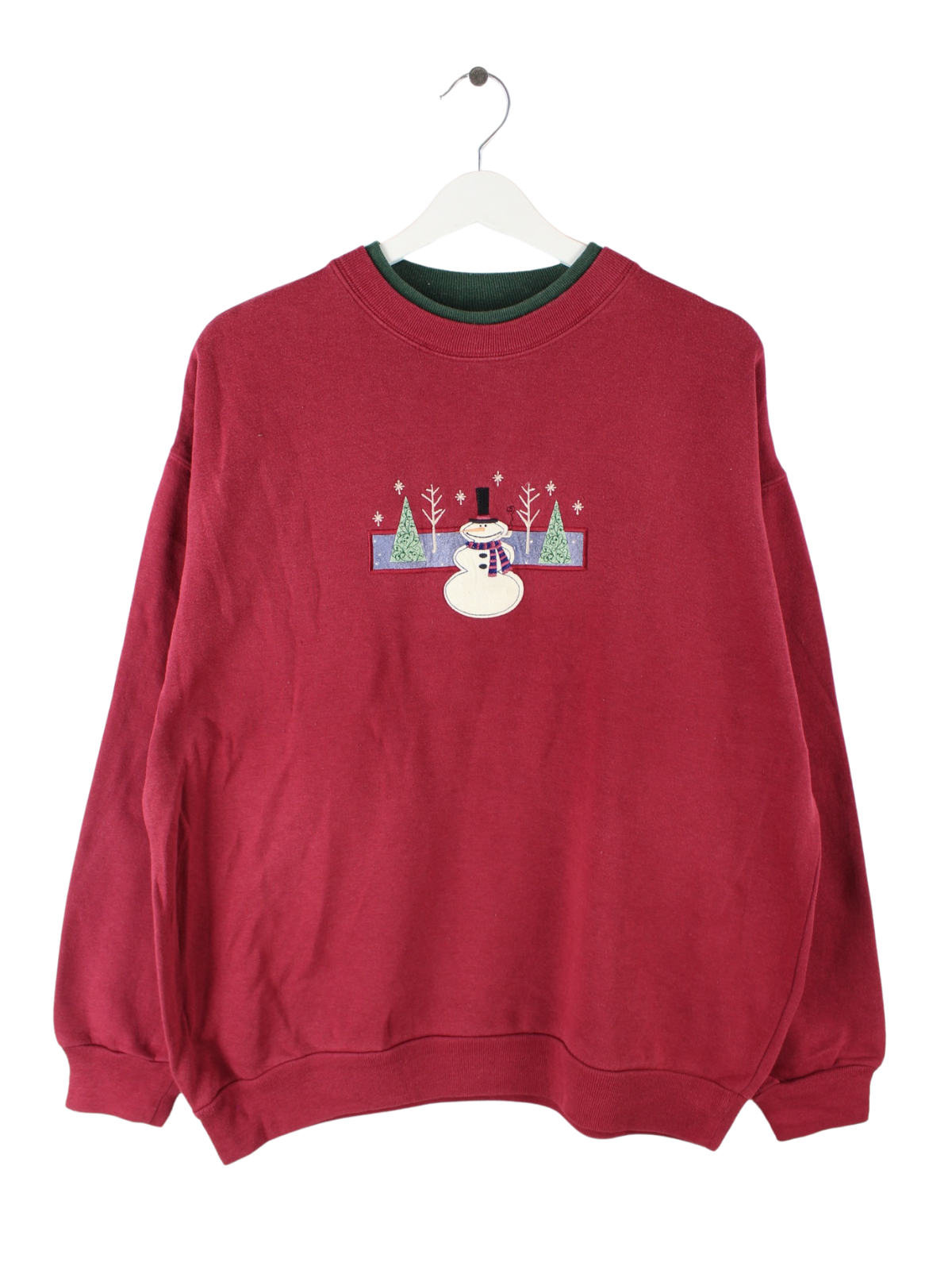 Vintage 90s Embroidered Christmas Sweater Rot L