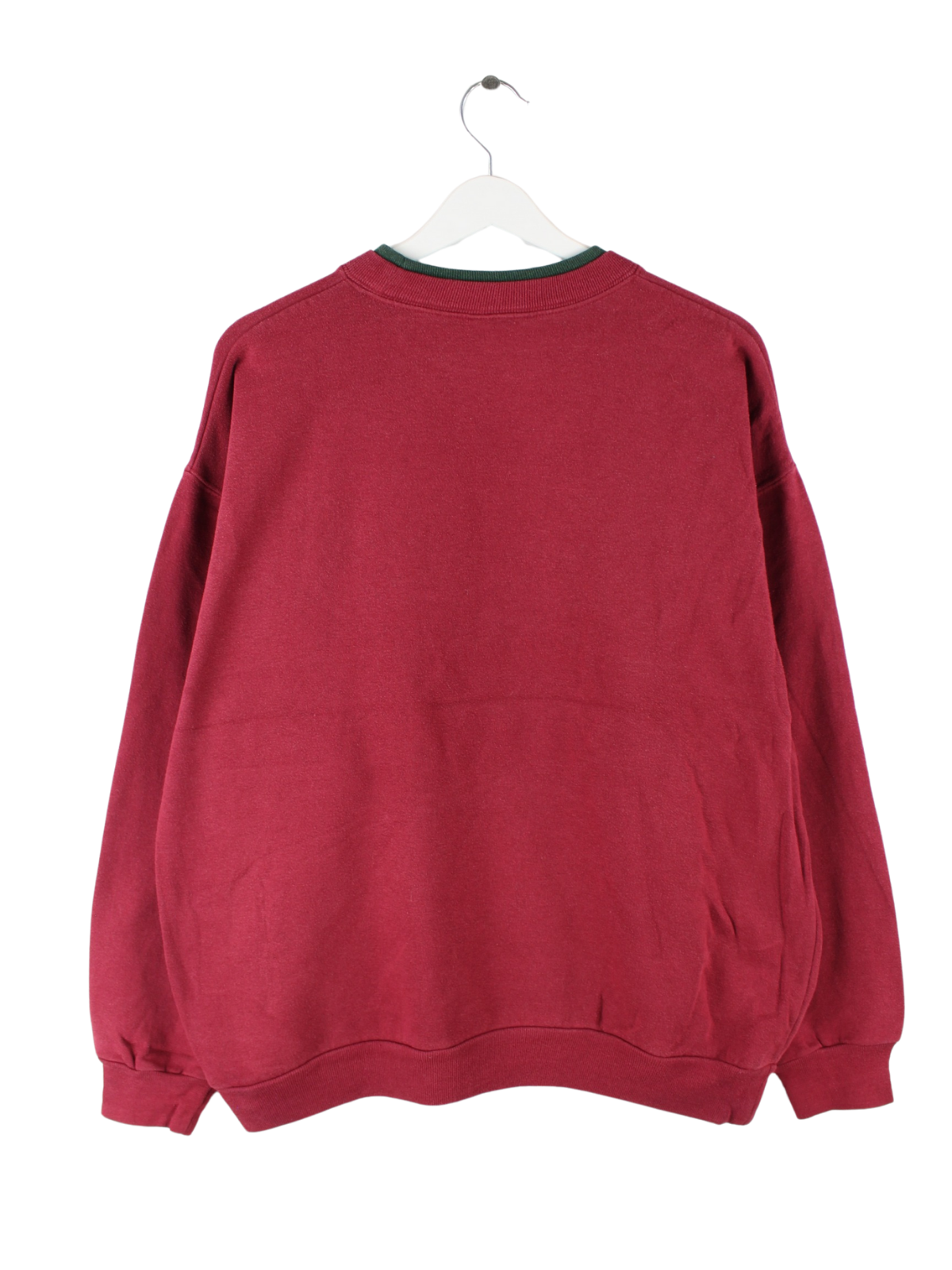 Roter Vintage Sweater mit gestickten Motiven aus den 90'ern in Größe L. Er ist aus einer Baumwollmischung angefertigt und in sehr gutem Zustand lieferbar.