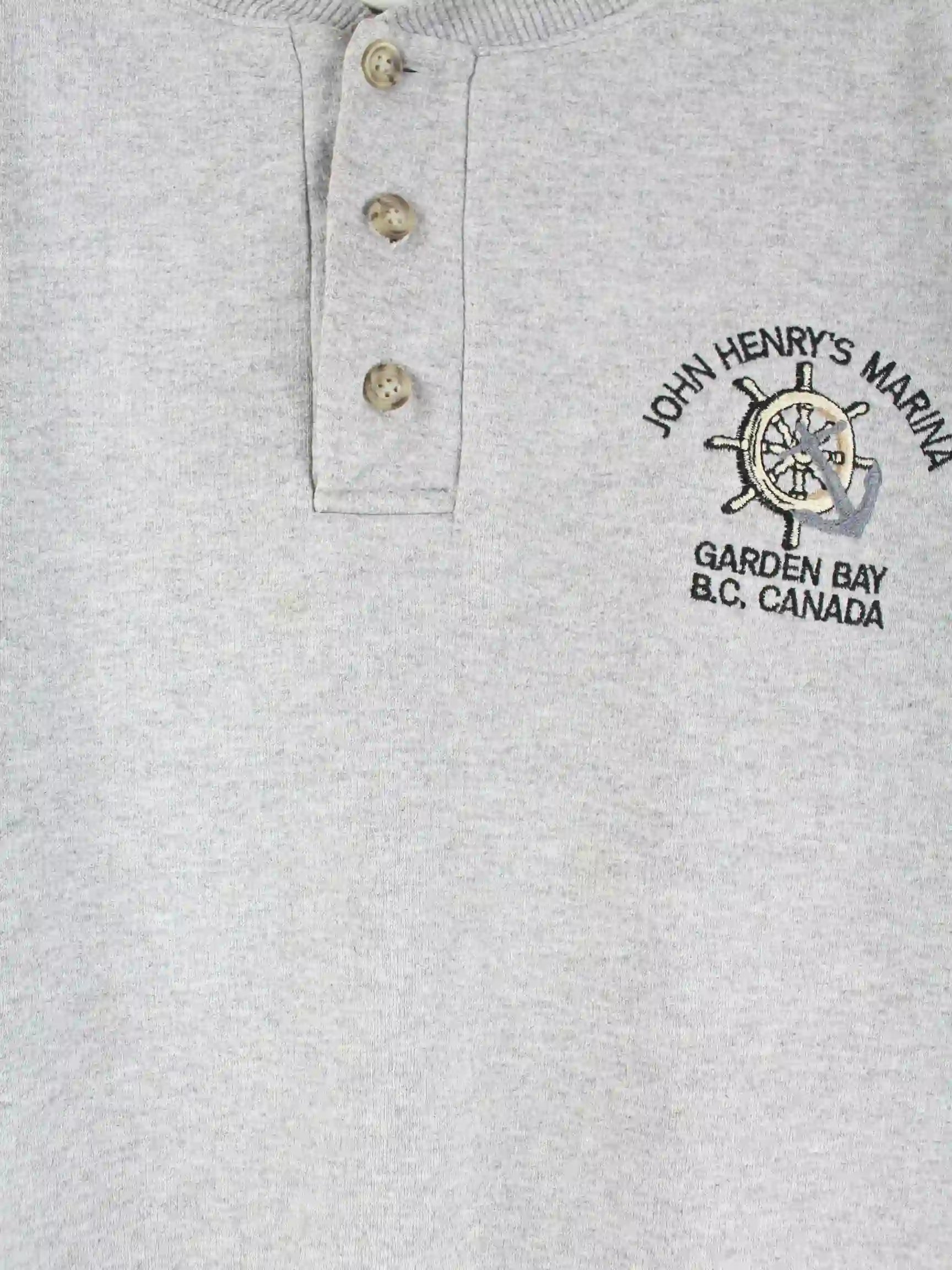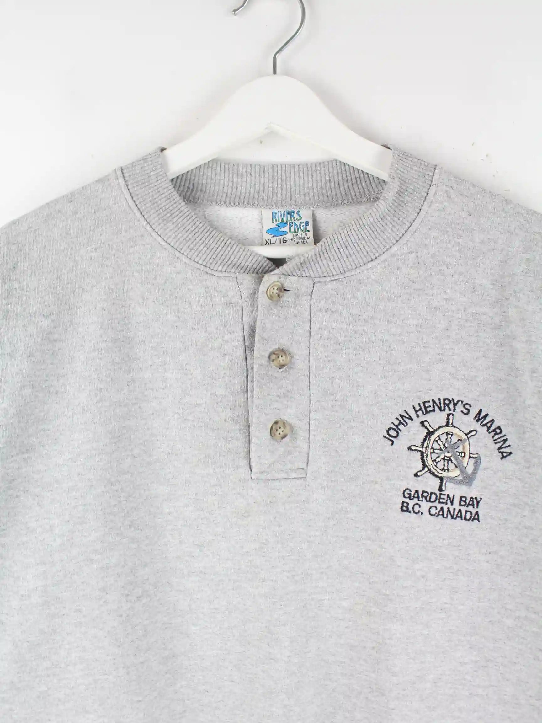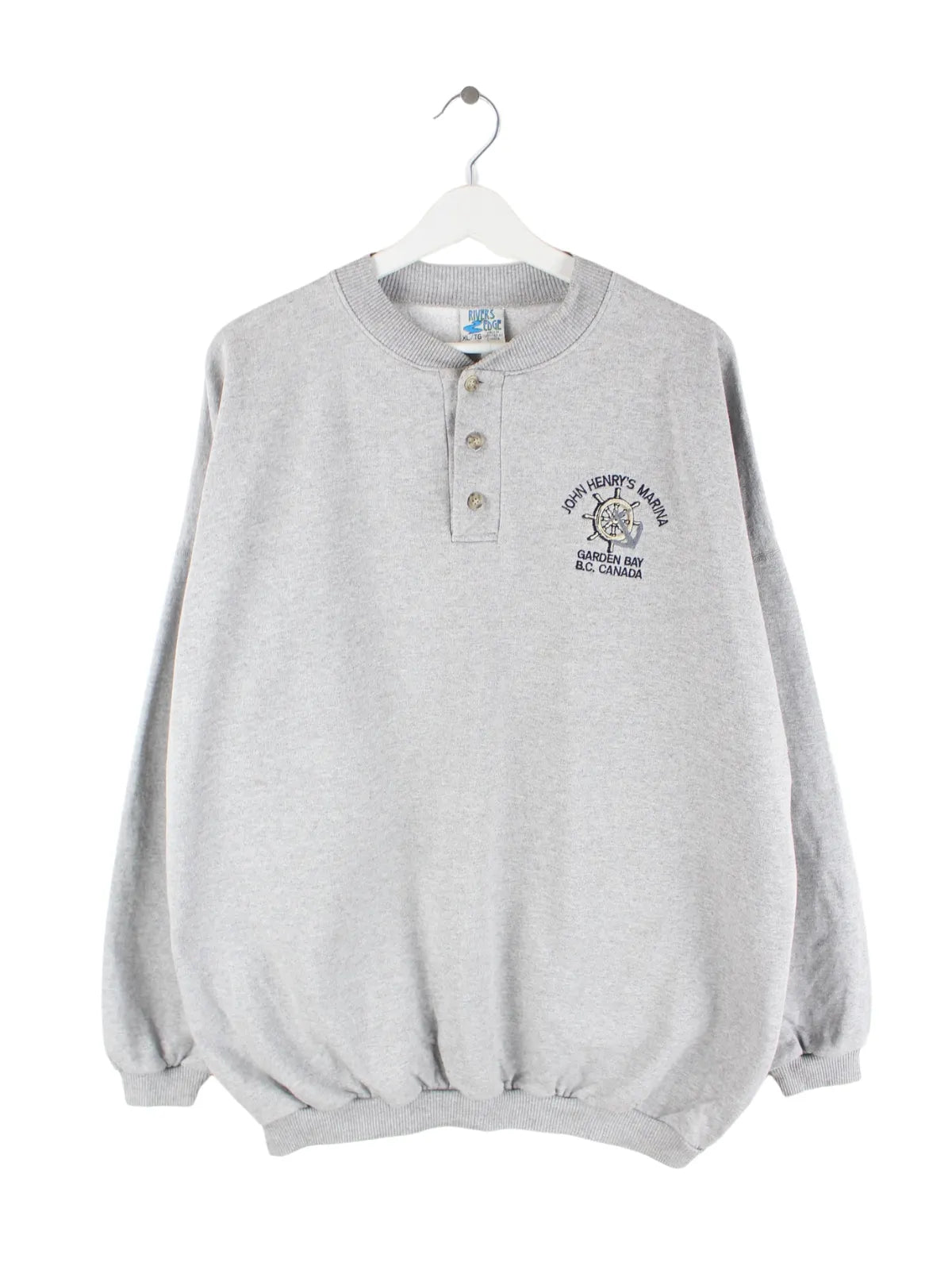 Vintage 90s Embroidered Half Button Sweater Grau XL