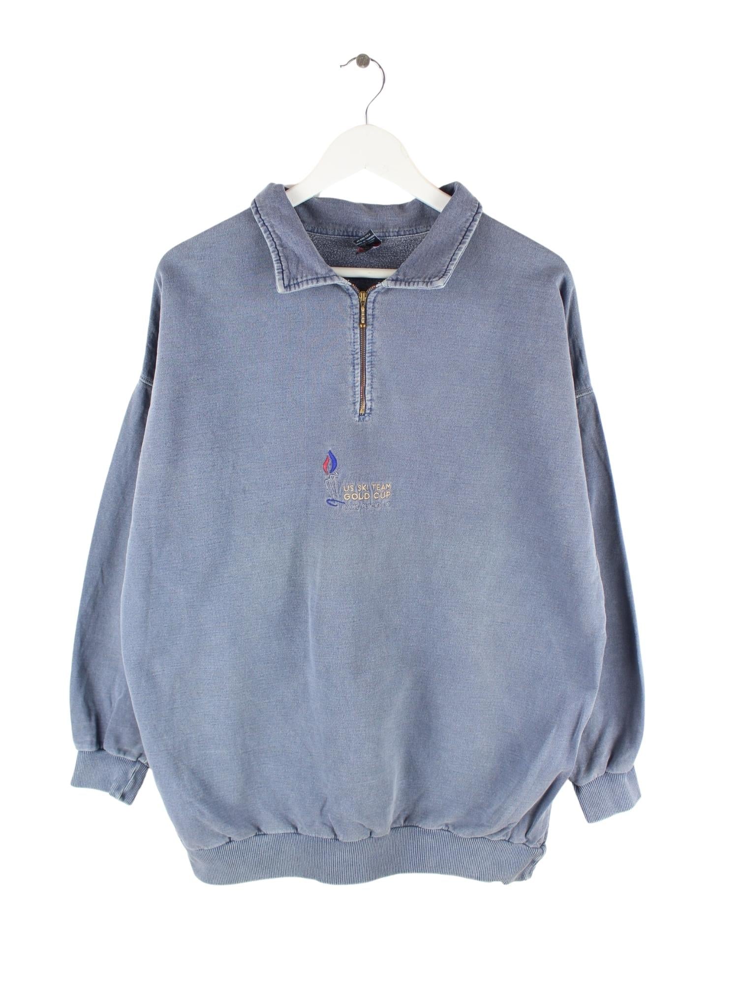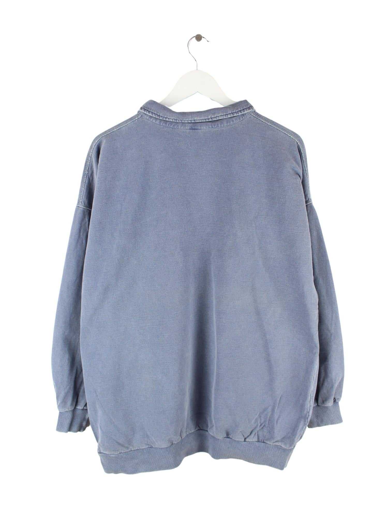 Vintage 90s Embroidered Half Zip Sweater Blau XL