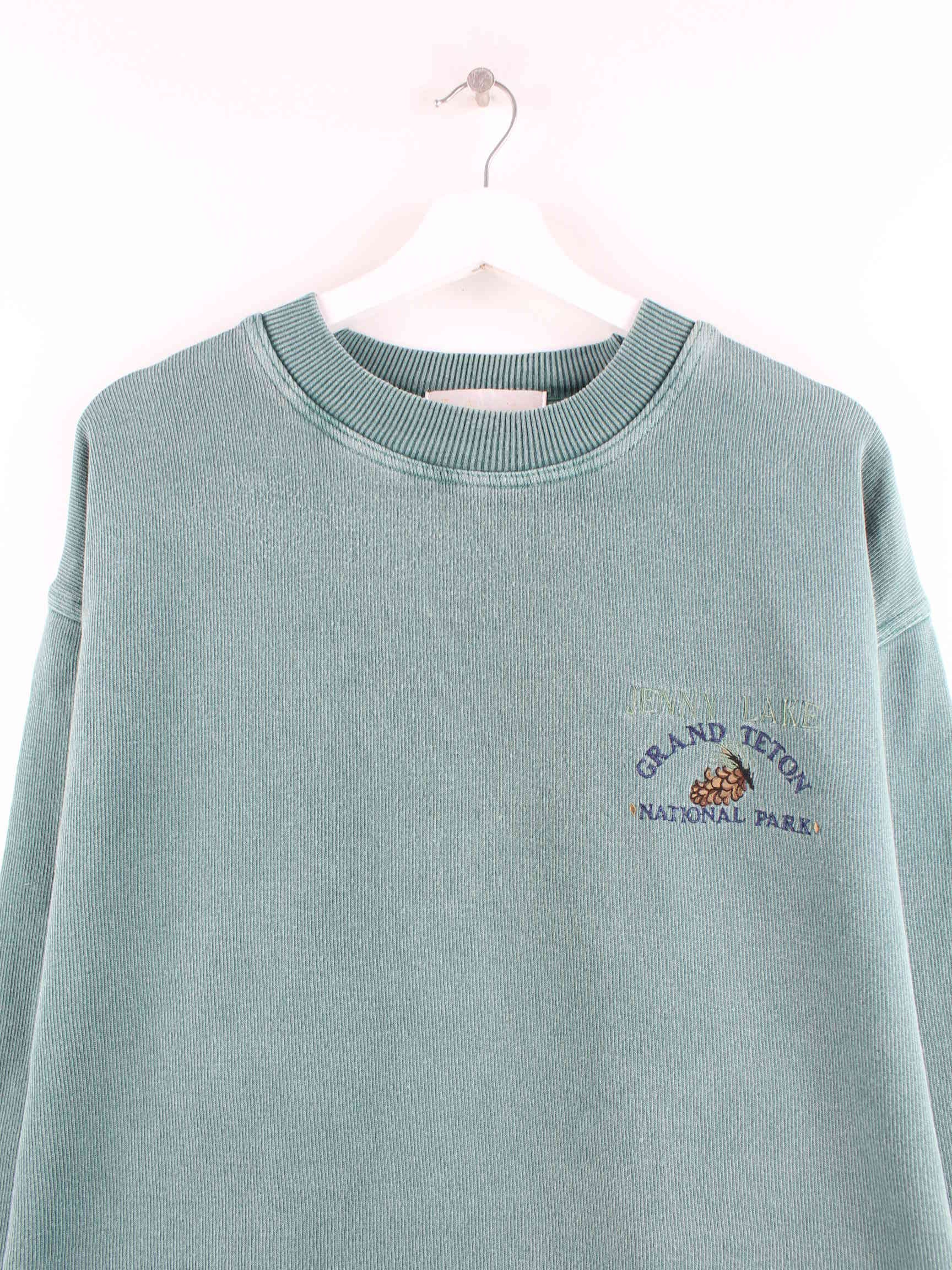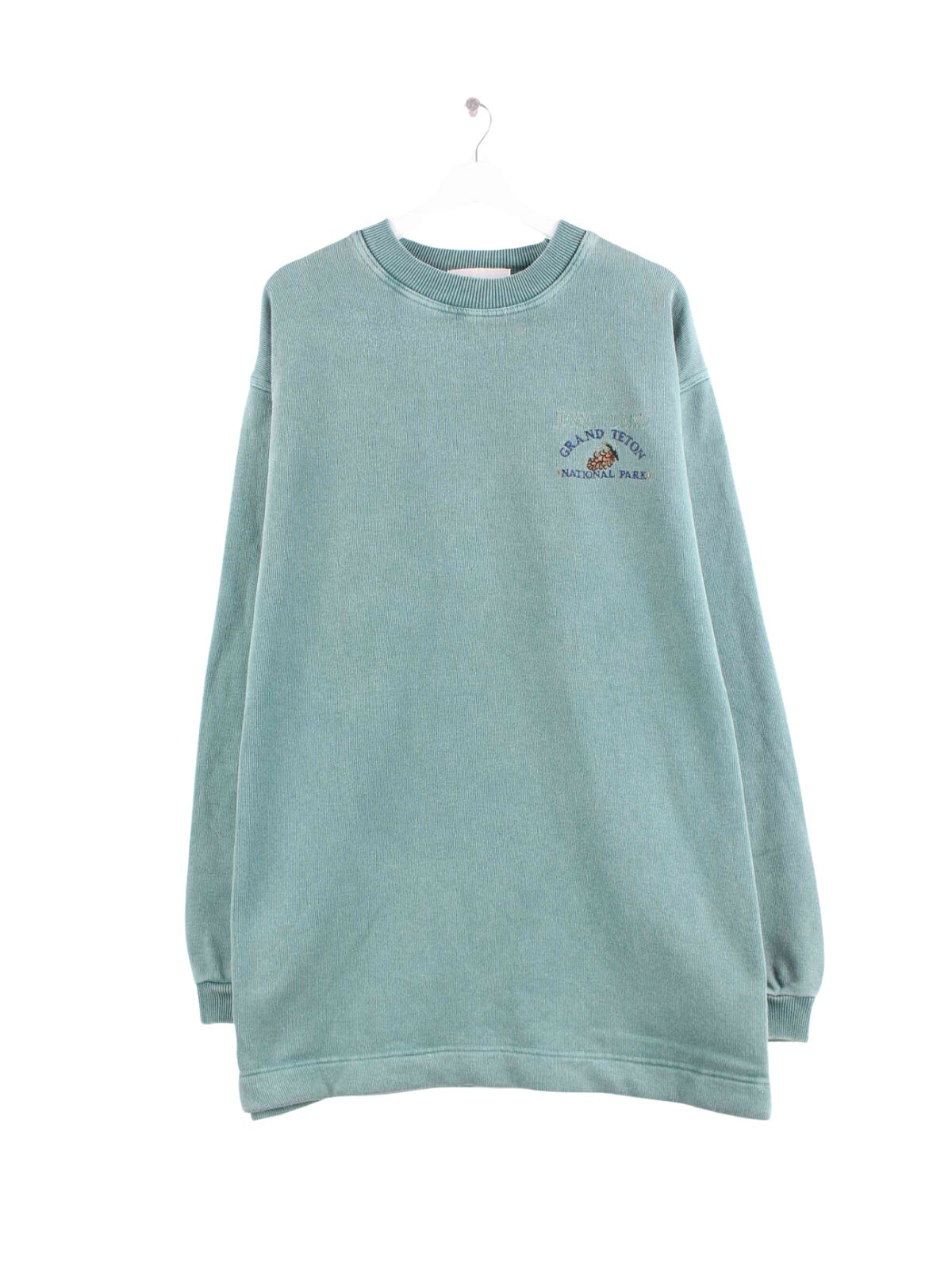 Vintage Sweater mit Stick in Größe XL aus den 90'ern. Er ist aus einer Baumwollmischung produziert und in Grün zu haben.
