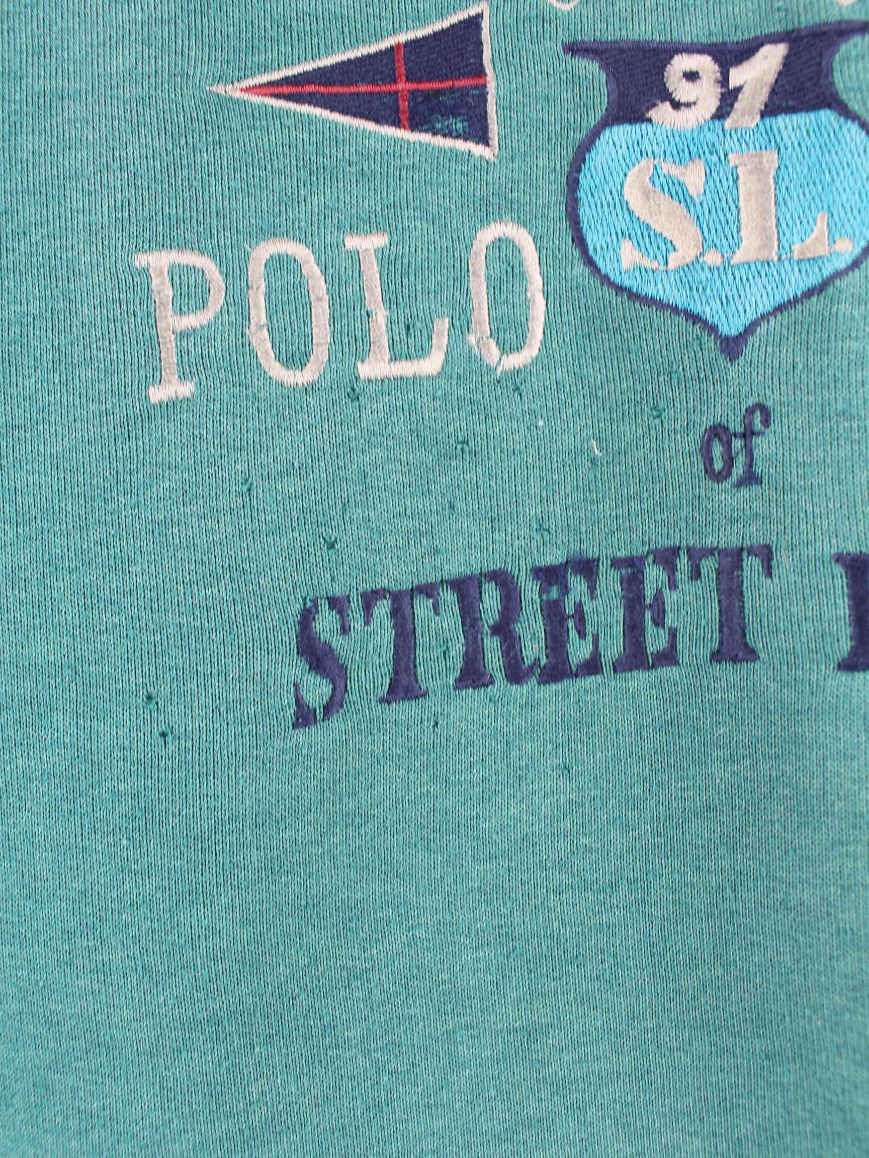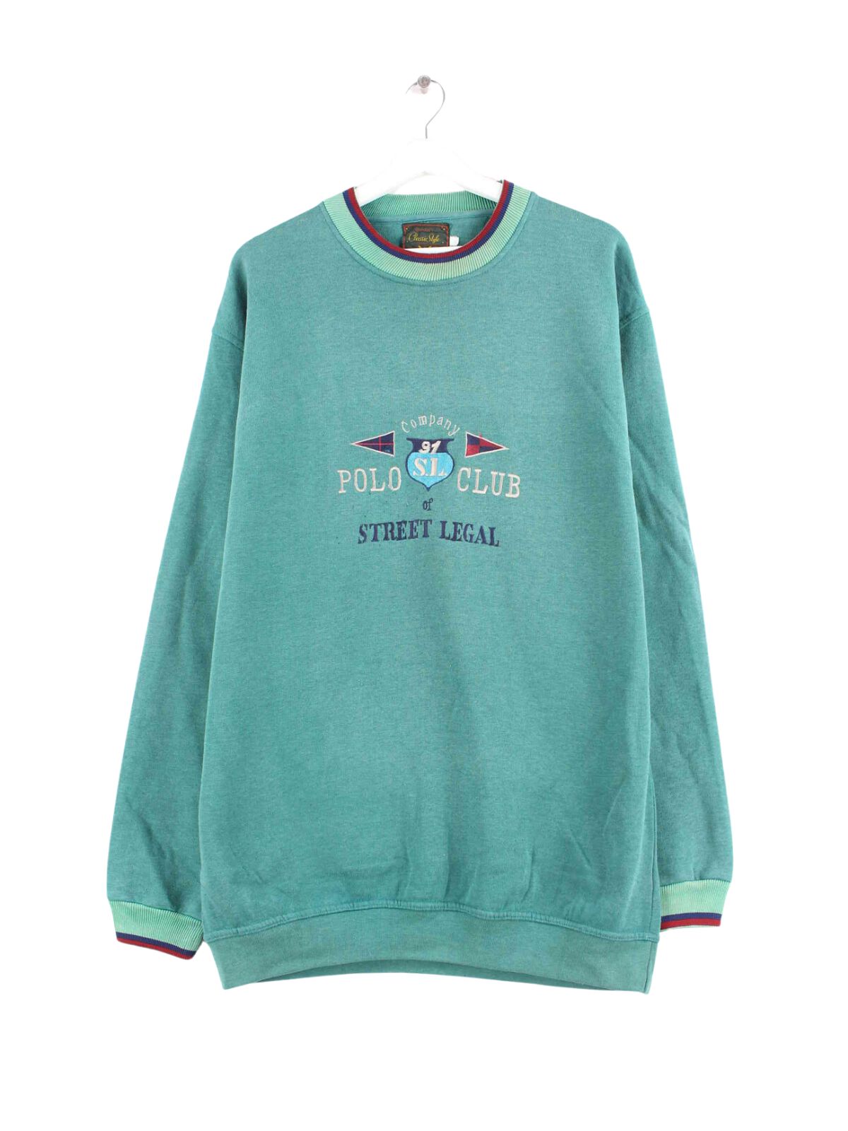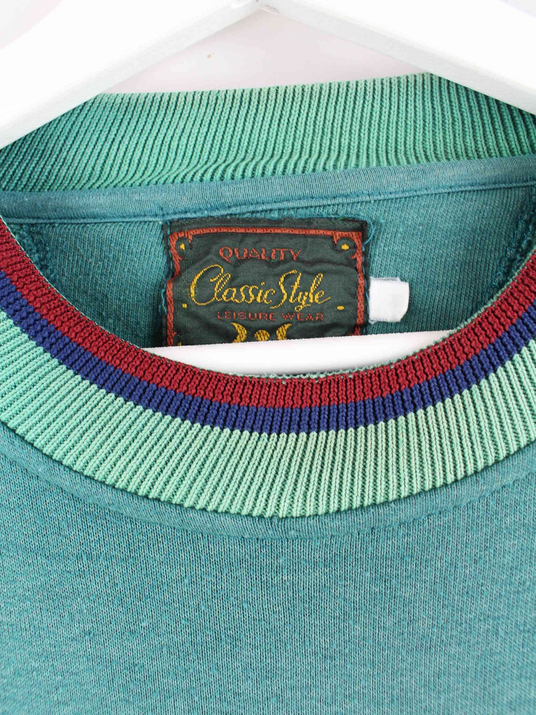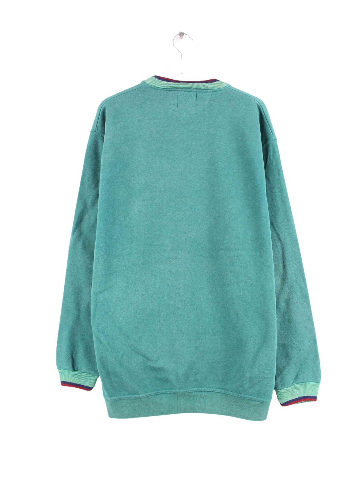 Vintage Sweater mit gestickten Motiven in Größe XXL aus den 90'ern. Er ist aus einer Baumwollmischung produziert und in Grün auf Lager.