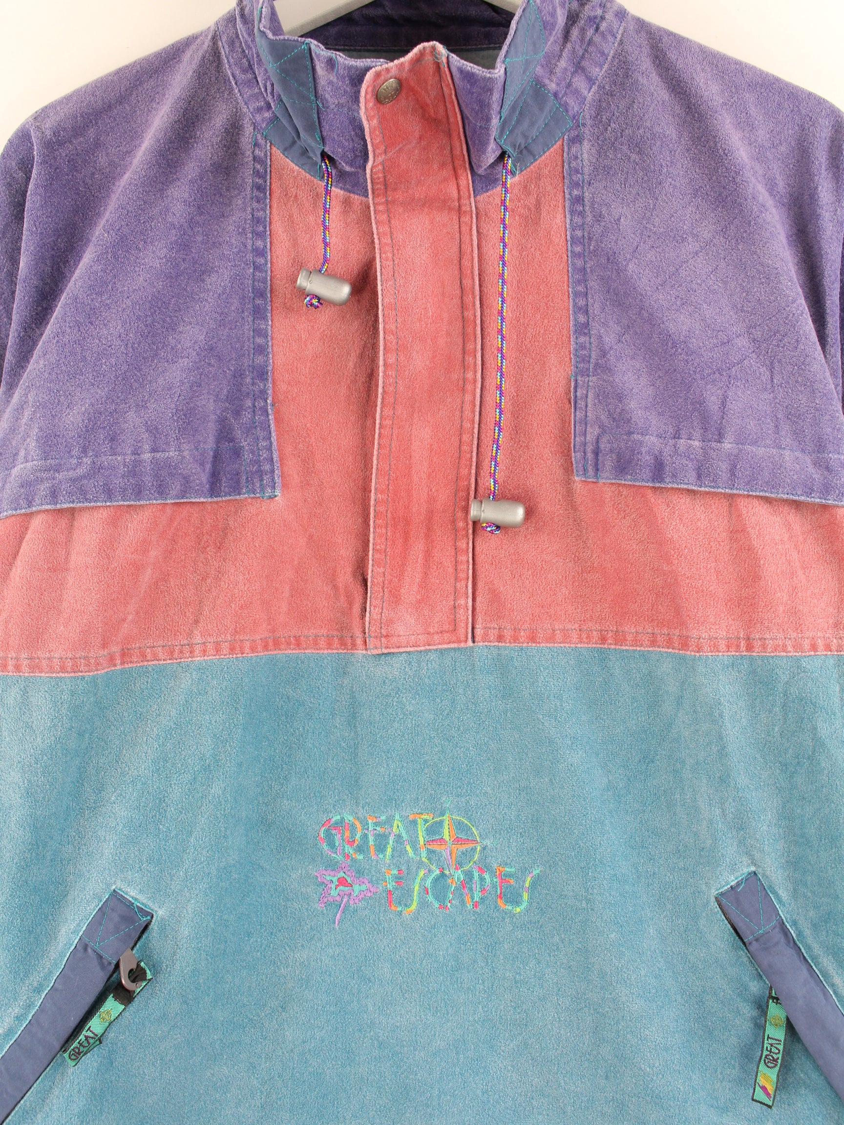 Vintage 90s Embroidered Velours Half Zip Trainingsjacke Mehrfarbig L