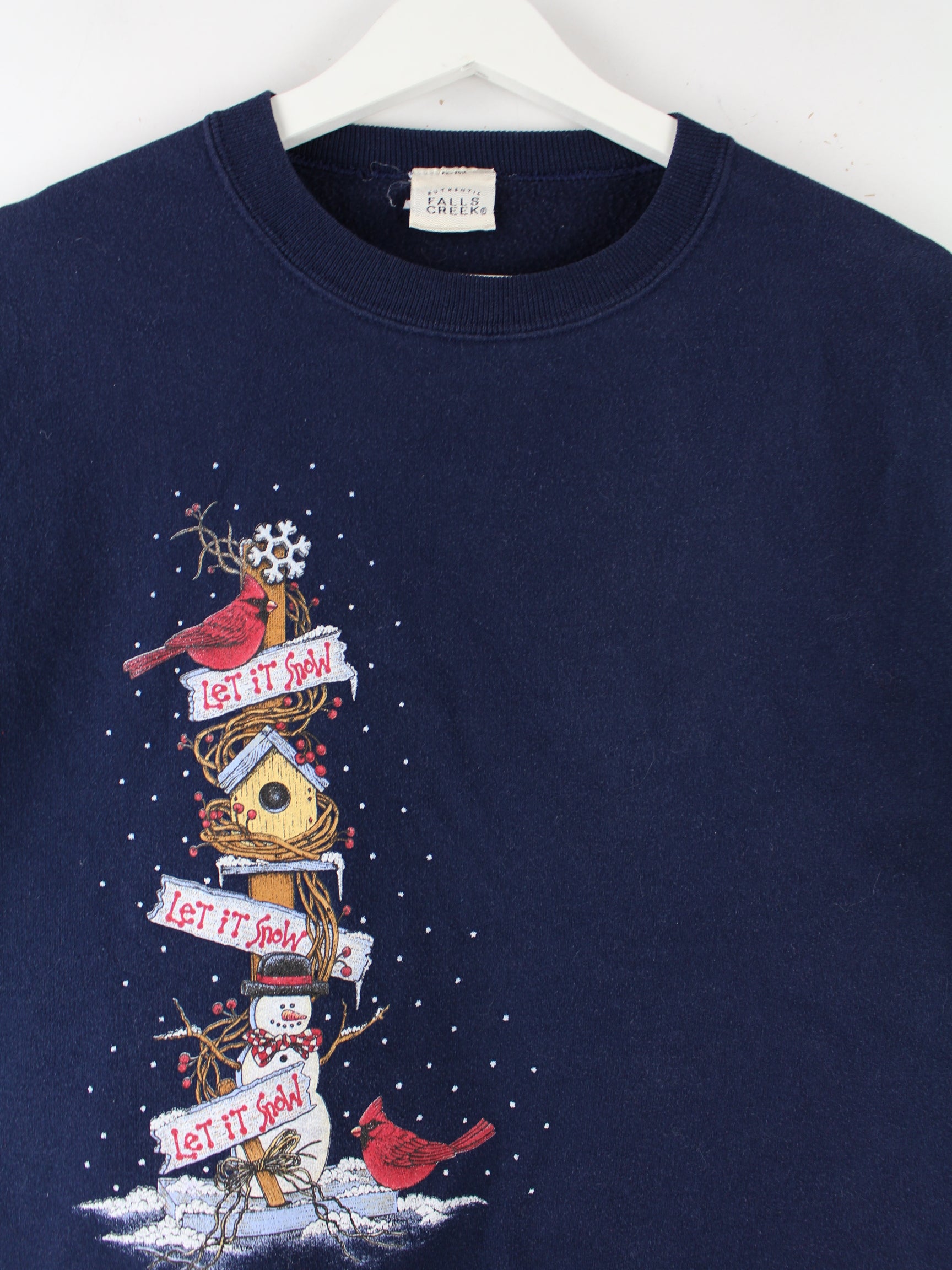 Vintage 90s Falls Creek Christmas Print Sweater Blau L