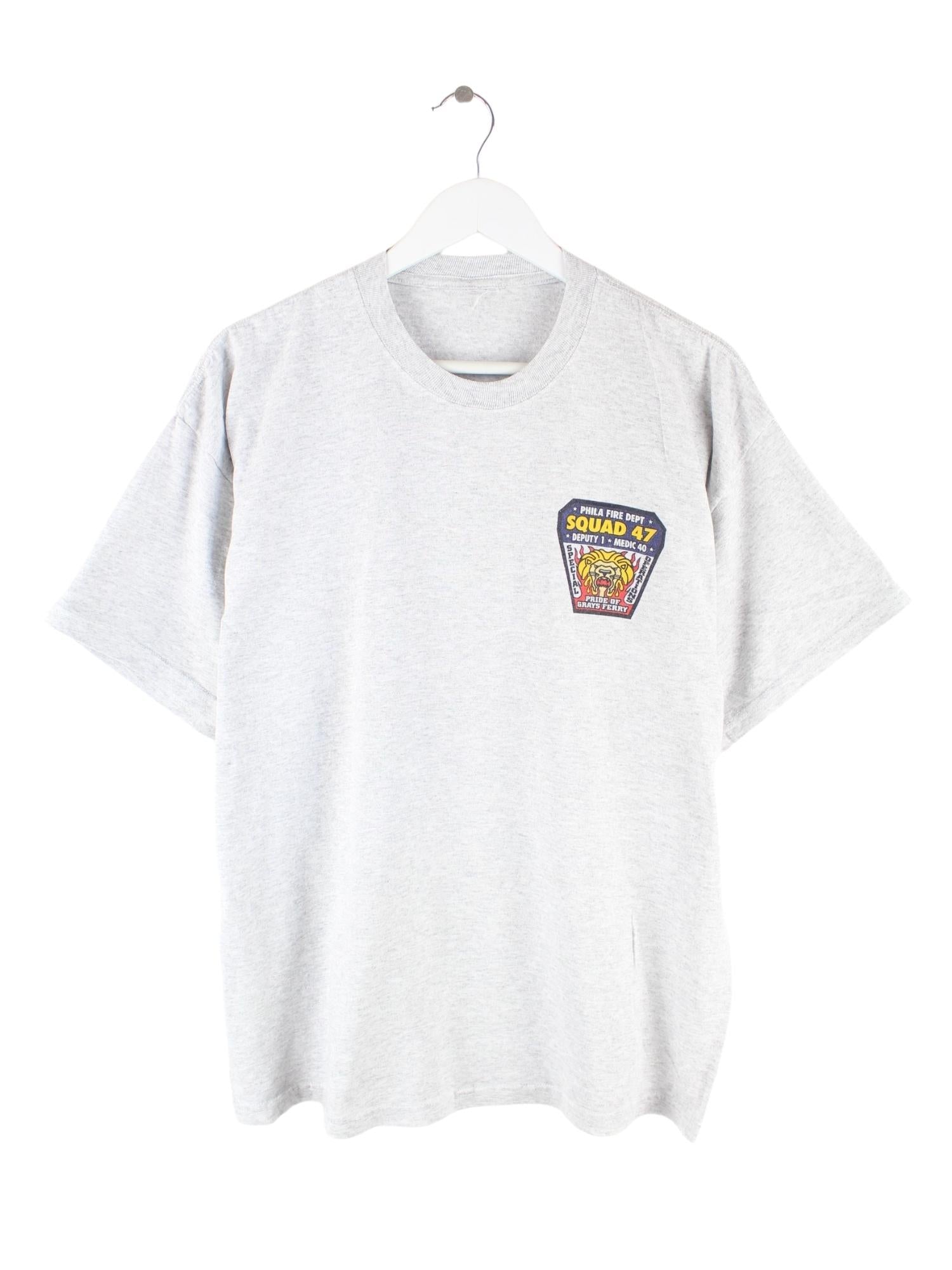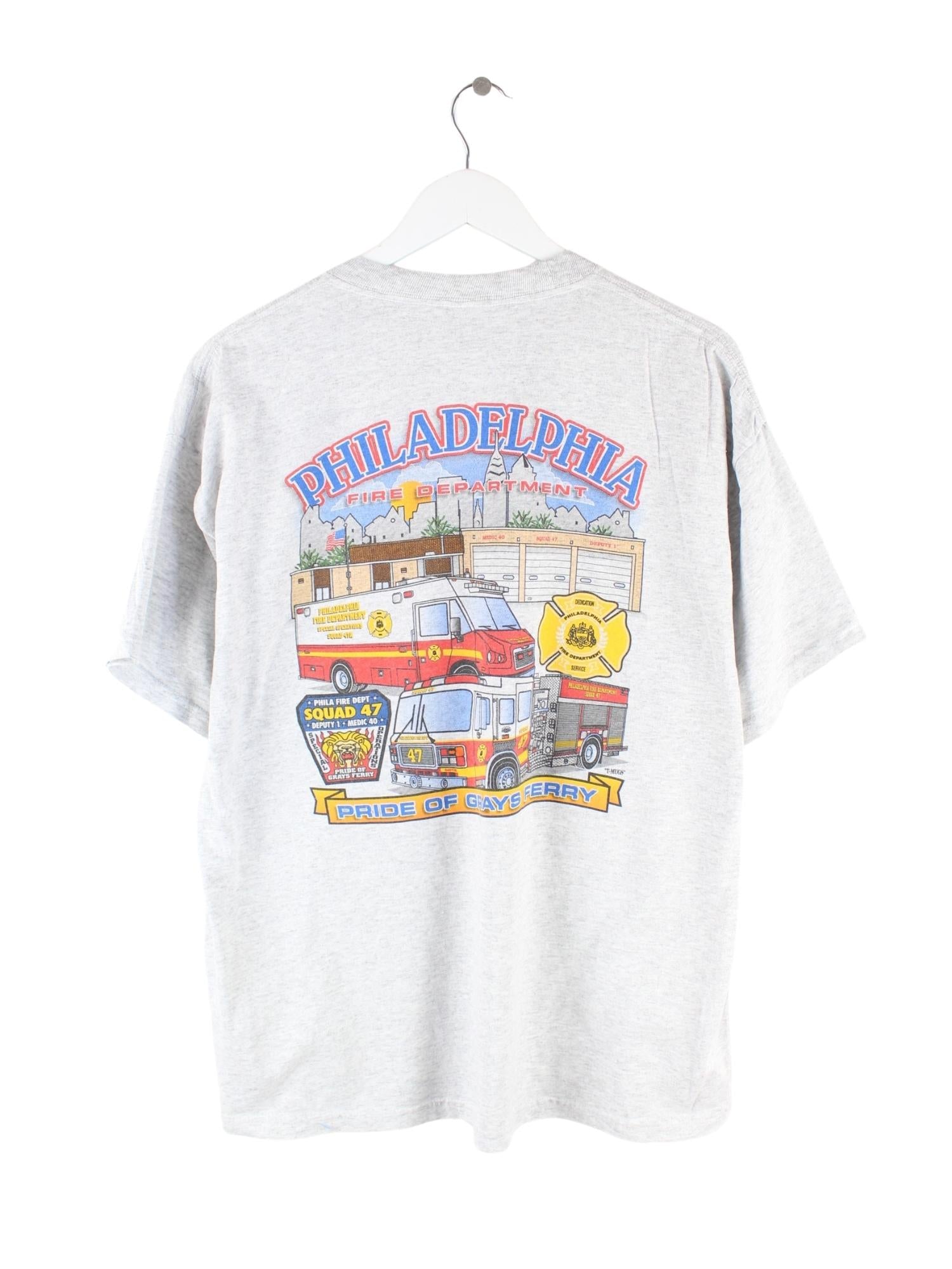 Vintage 90s Fire Department Print T-Shirt Grau M