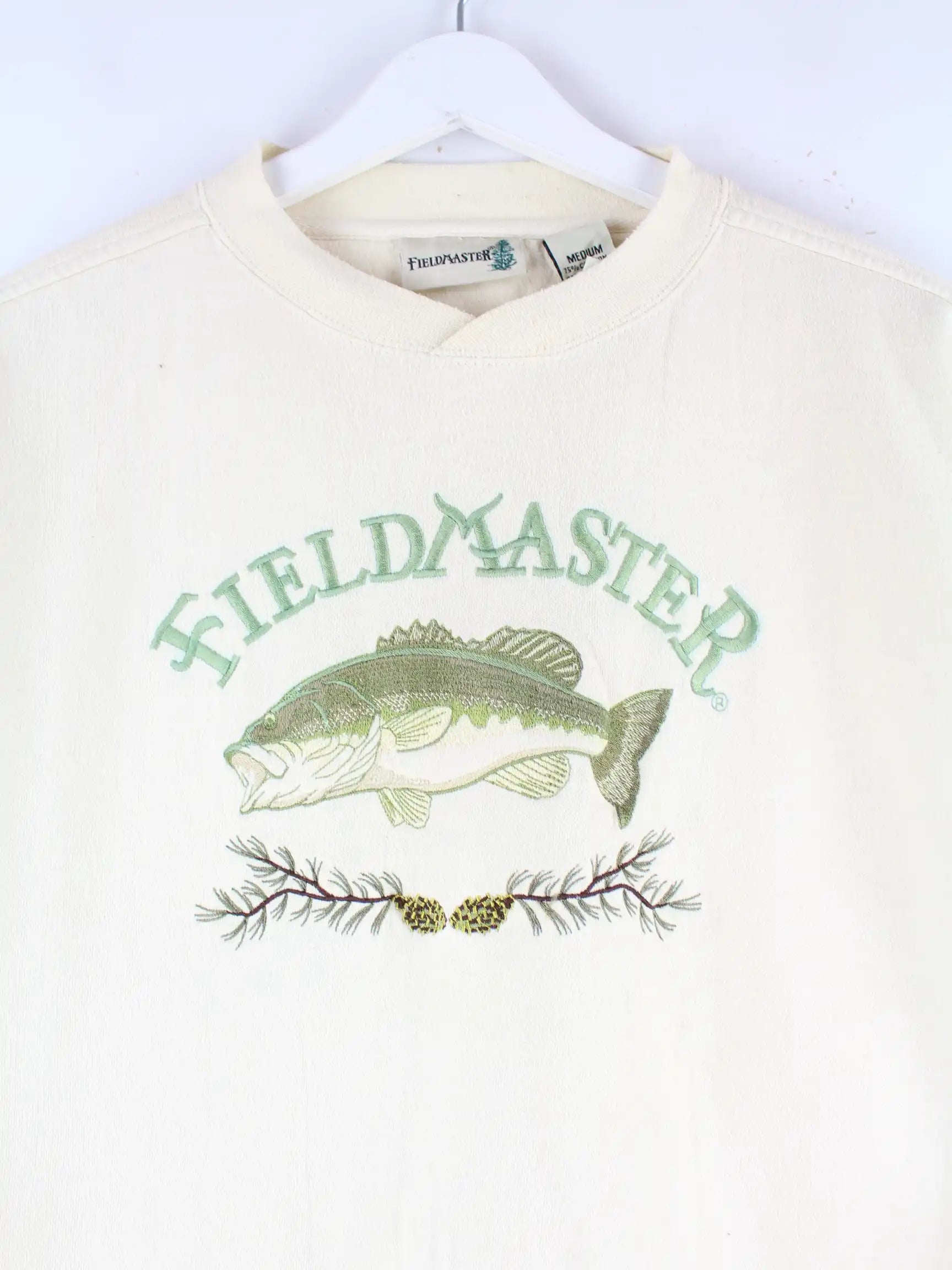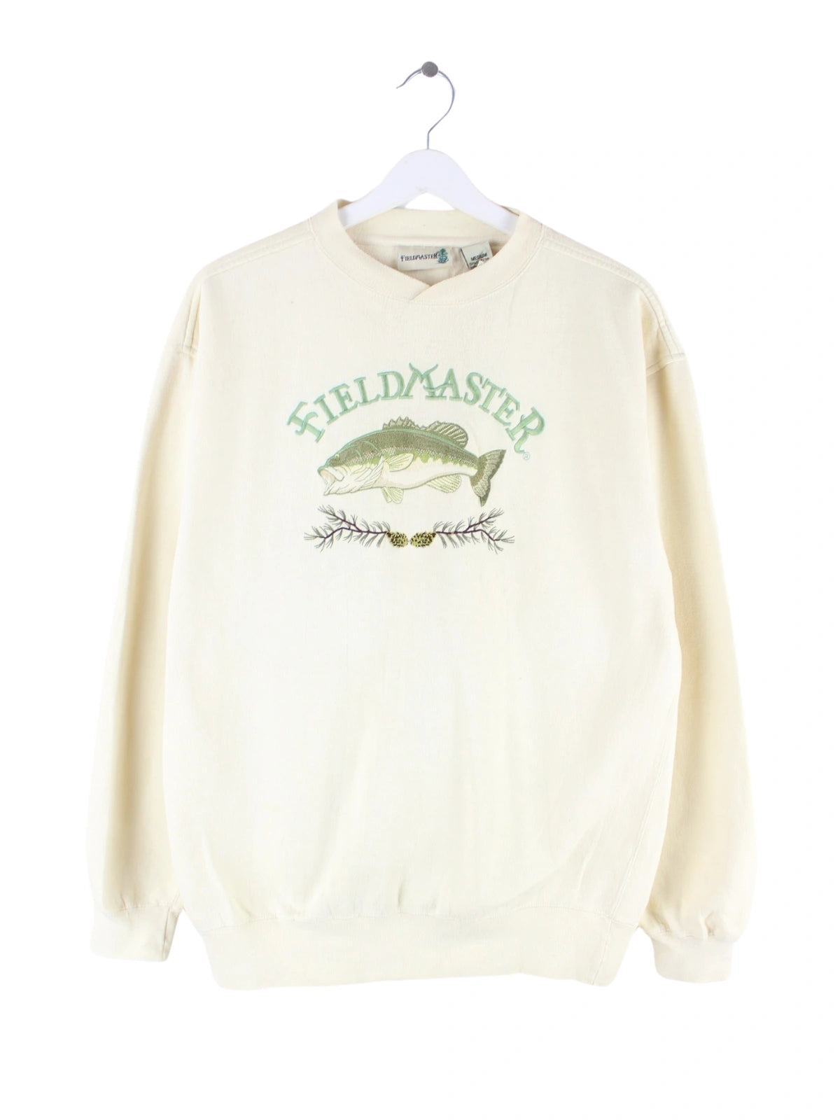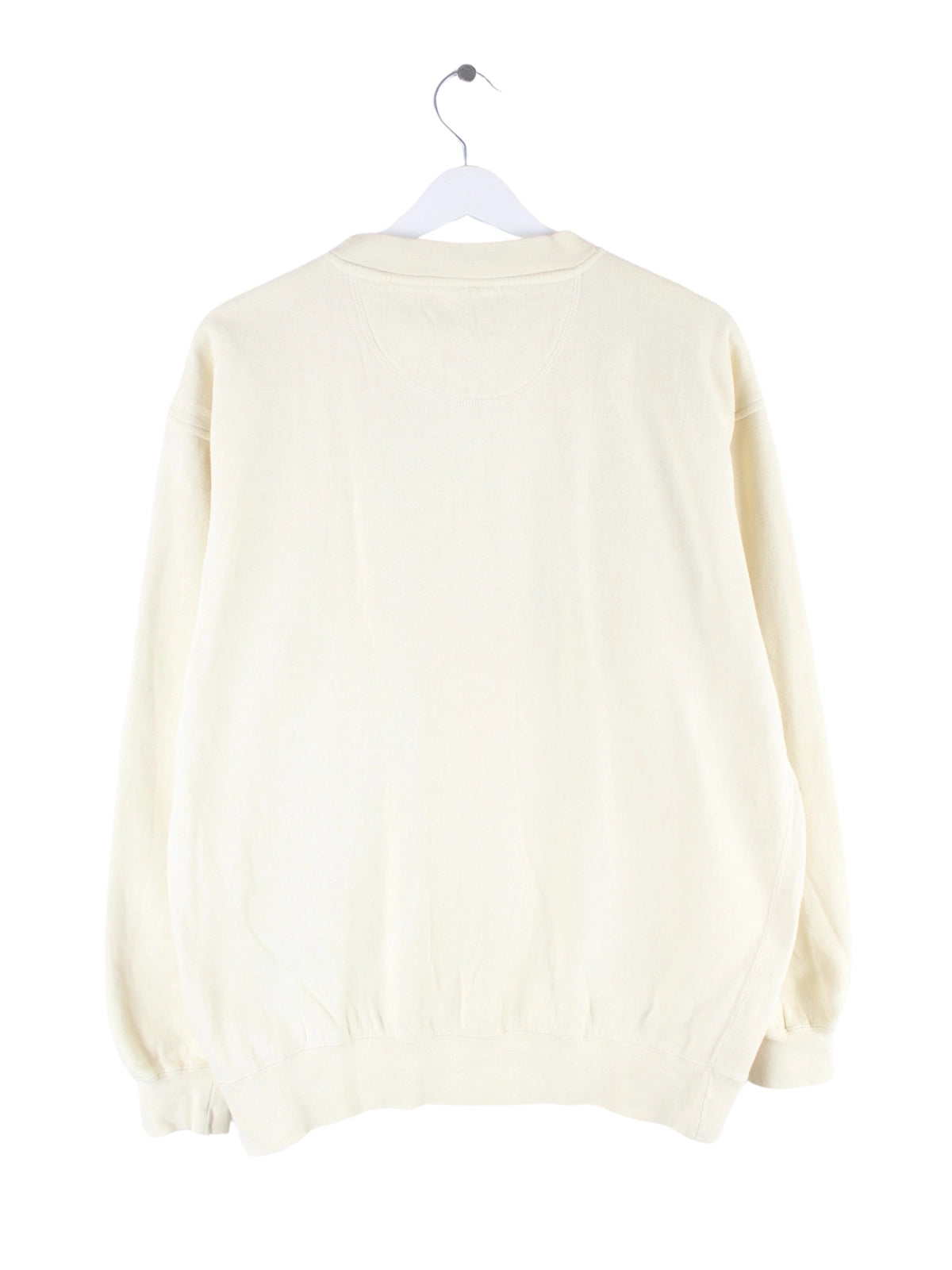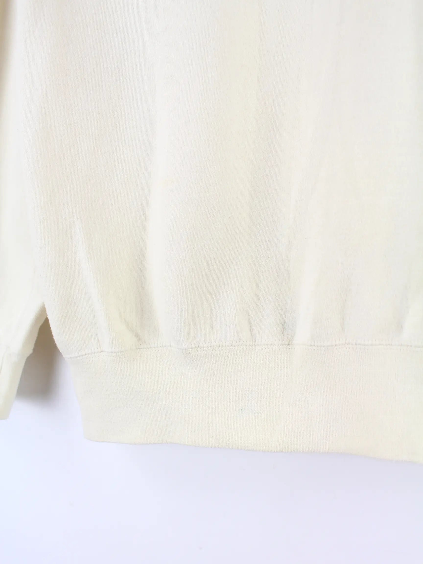 Beigefarbener Vintage Sweater mit gesticktem Logo aus den 90'ern in Größe M. Er ist aus einer Baumwollmischung hergestellt und in gutem Zustand zu bekommen.
