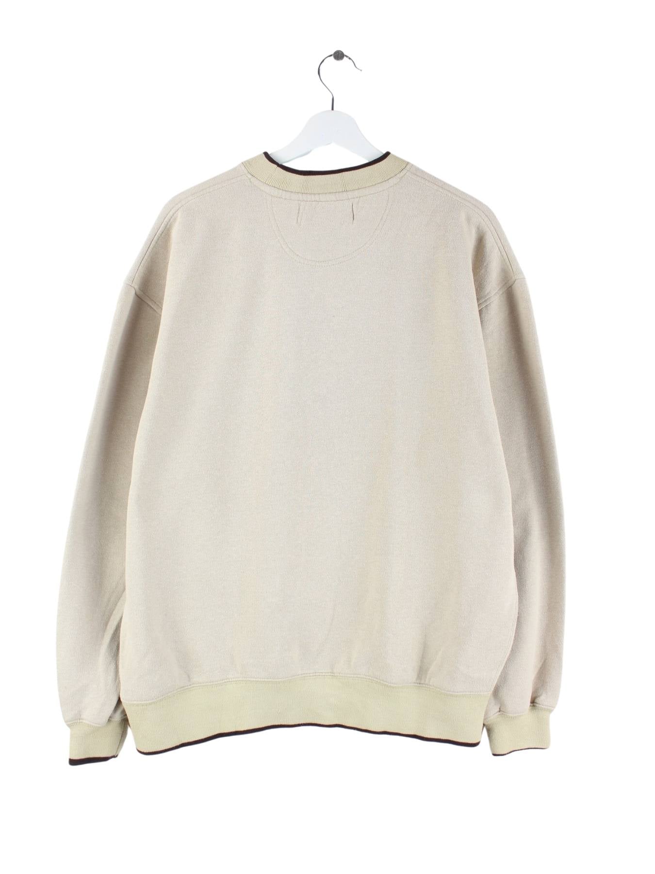 Beigefarbener Vintage Sweater mit gesticktem Logo aus den 90'ern in Größe L. Er ist aus einer Baumwollmischung produziert und in sehr gutem Zustand zu haben.