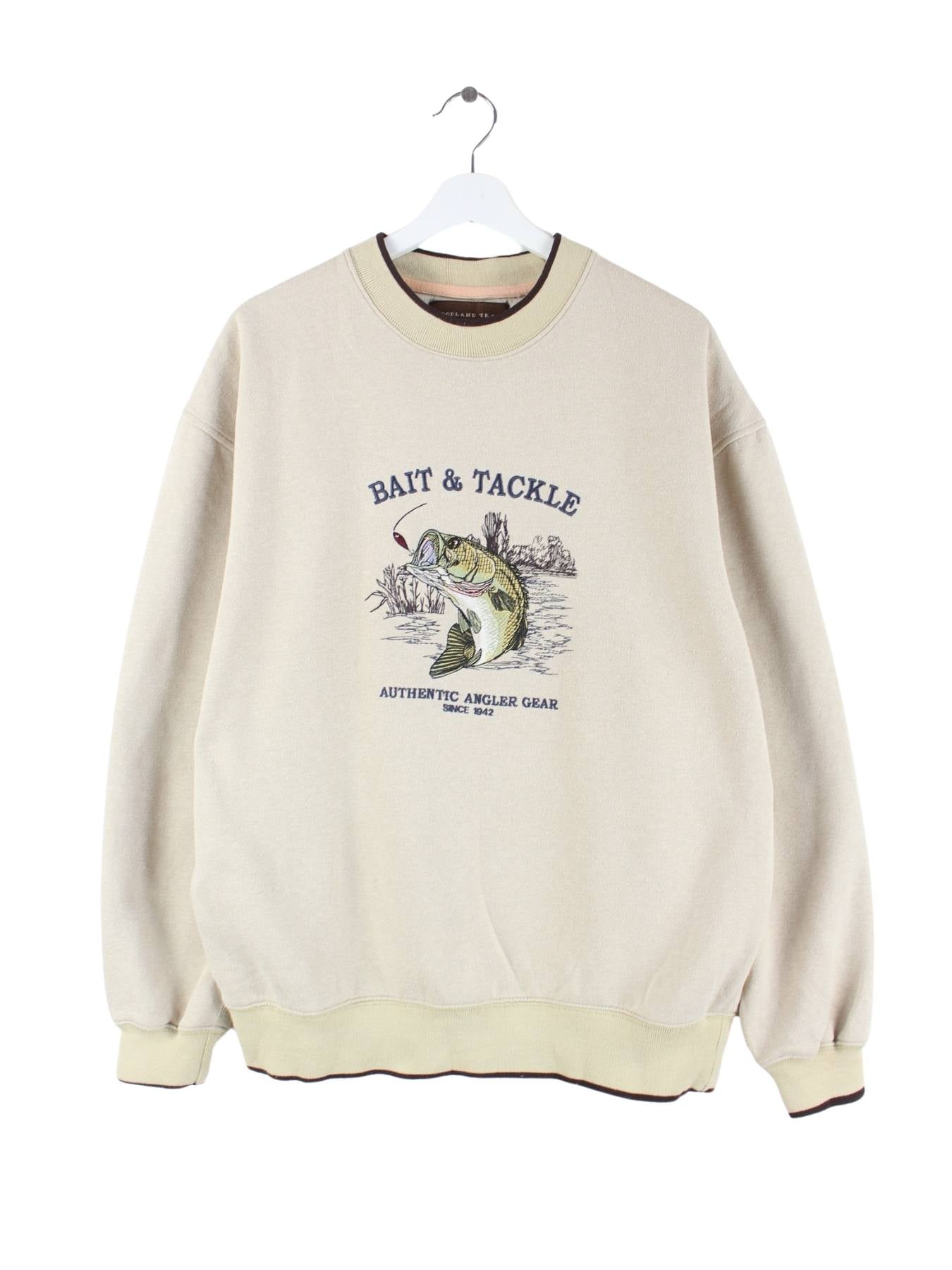 Vintage 90s Fishing Embroidered Sweater Beige L