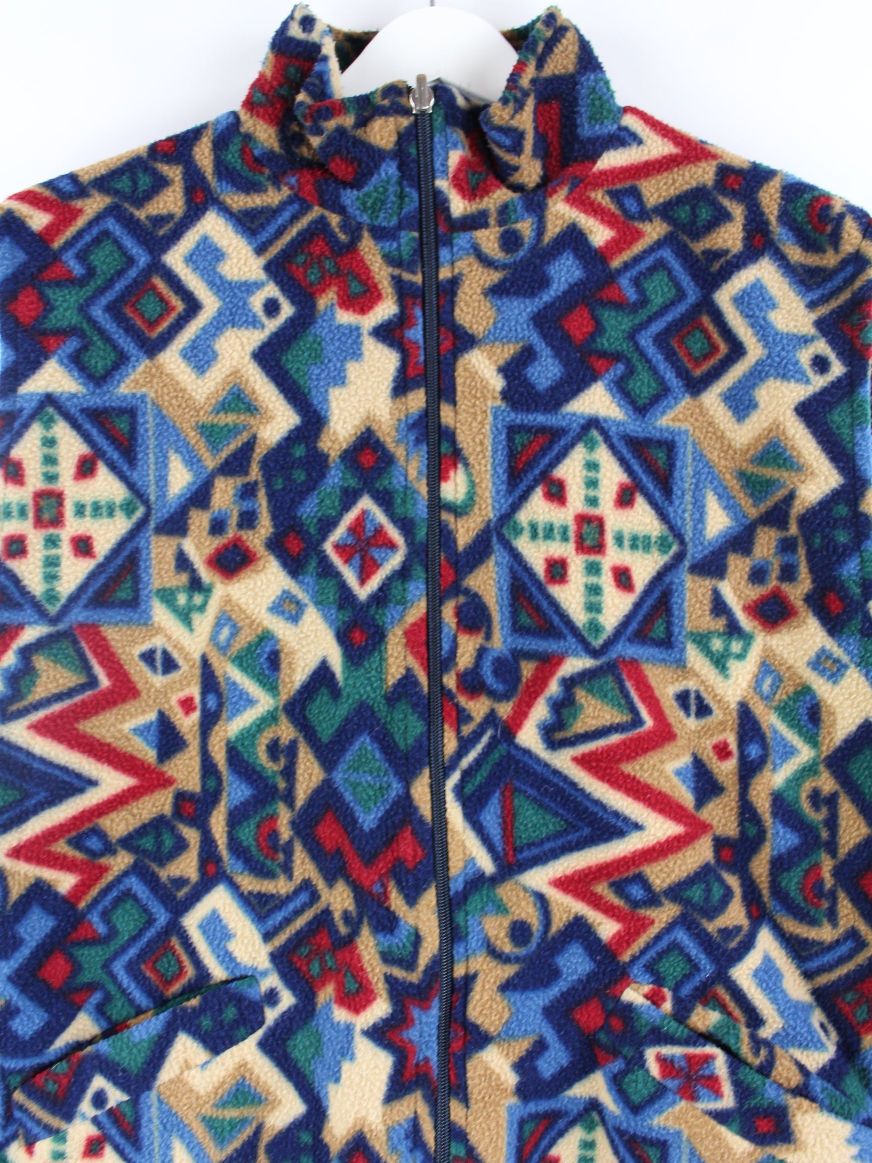 Mehrfarbige Vintage Weste aus den 90'ern in Größe M. Sie ist aus angenehmem Fleece angefertigt und in sehr gutem Zustand in Stock.