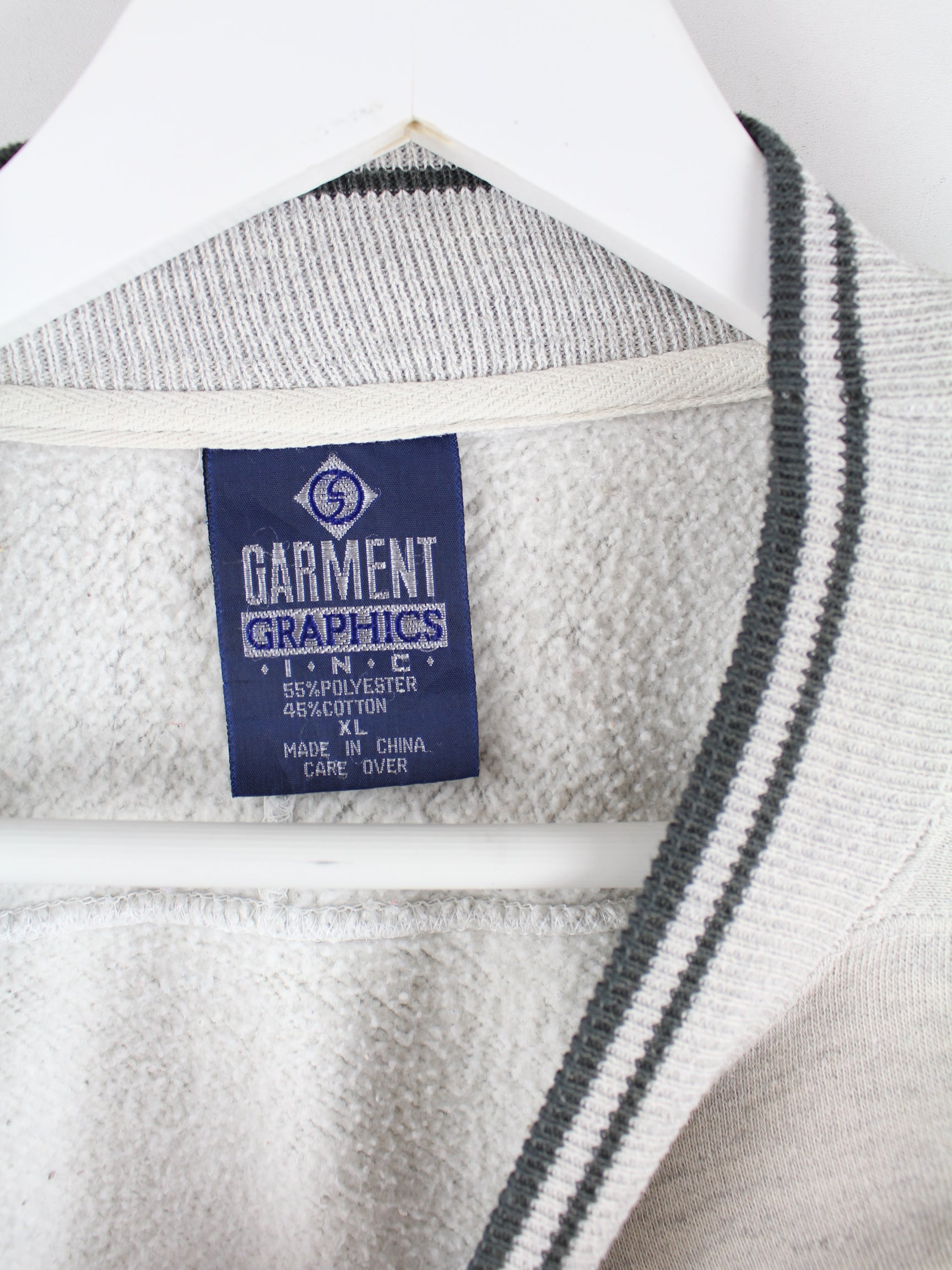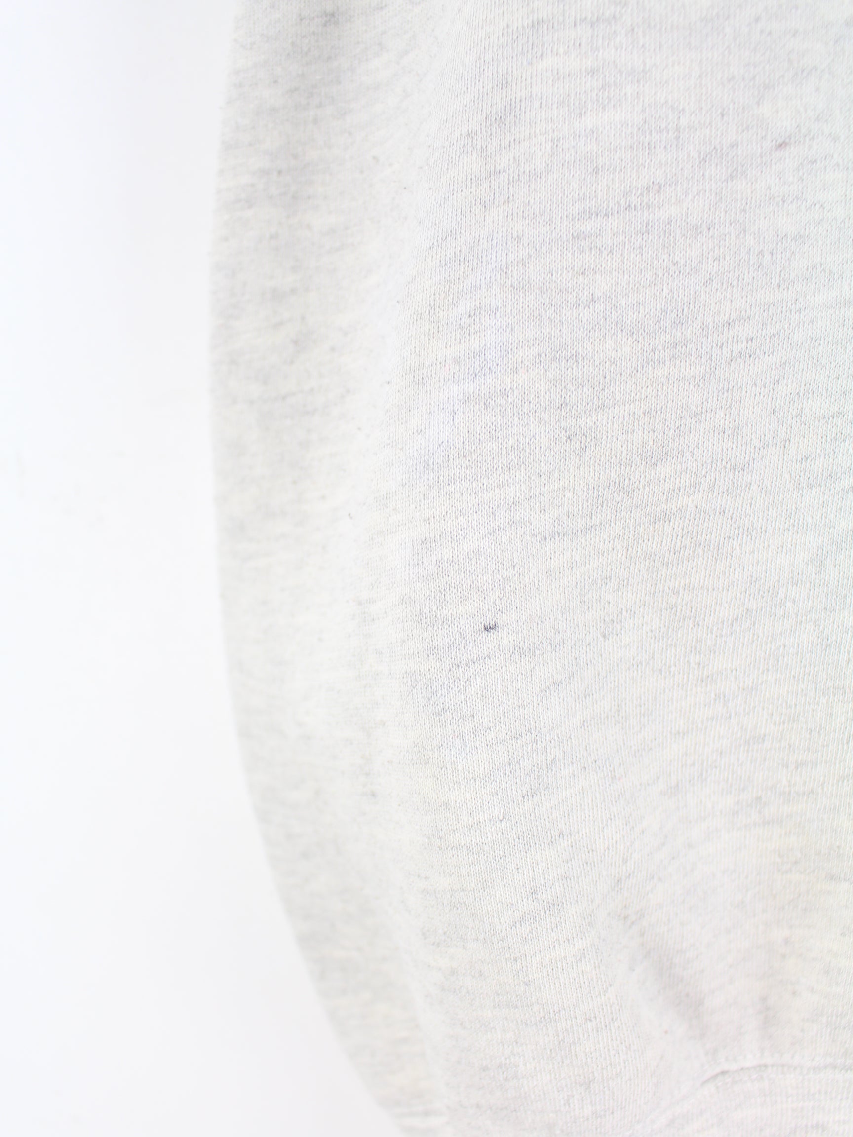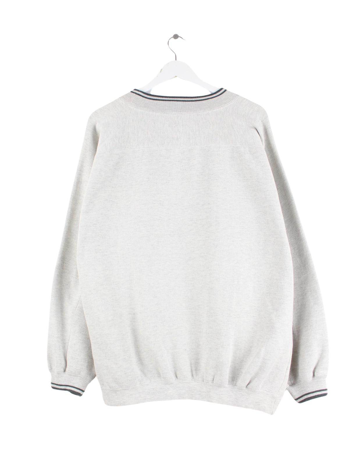 Grauer Vintage Sweater mit Stick aus den 90'ern in Größe XXL. Er ist aus einer Baumwollmischung gefertigt und in gutem Zustand auf Lager.