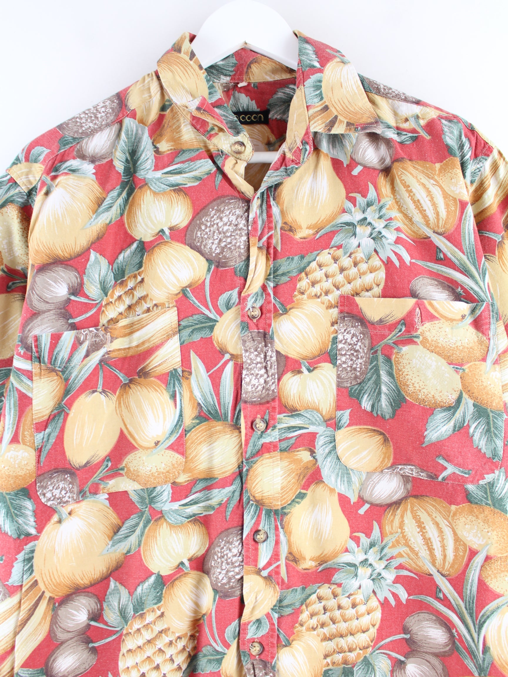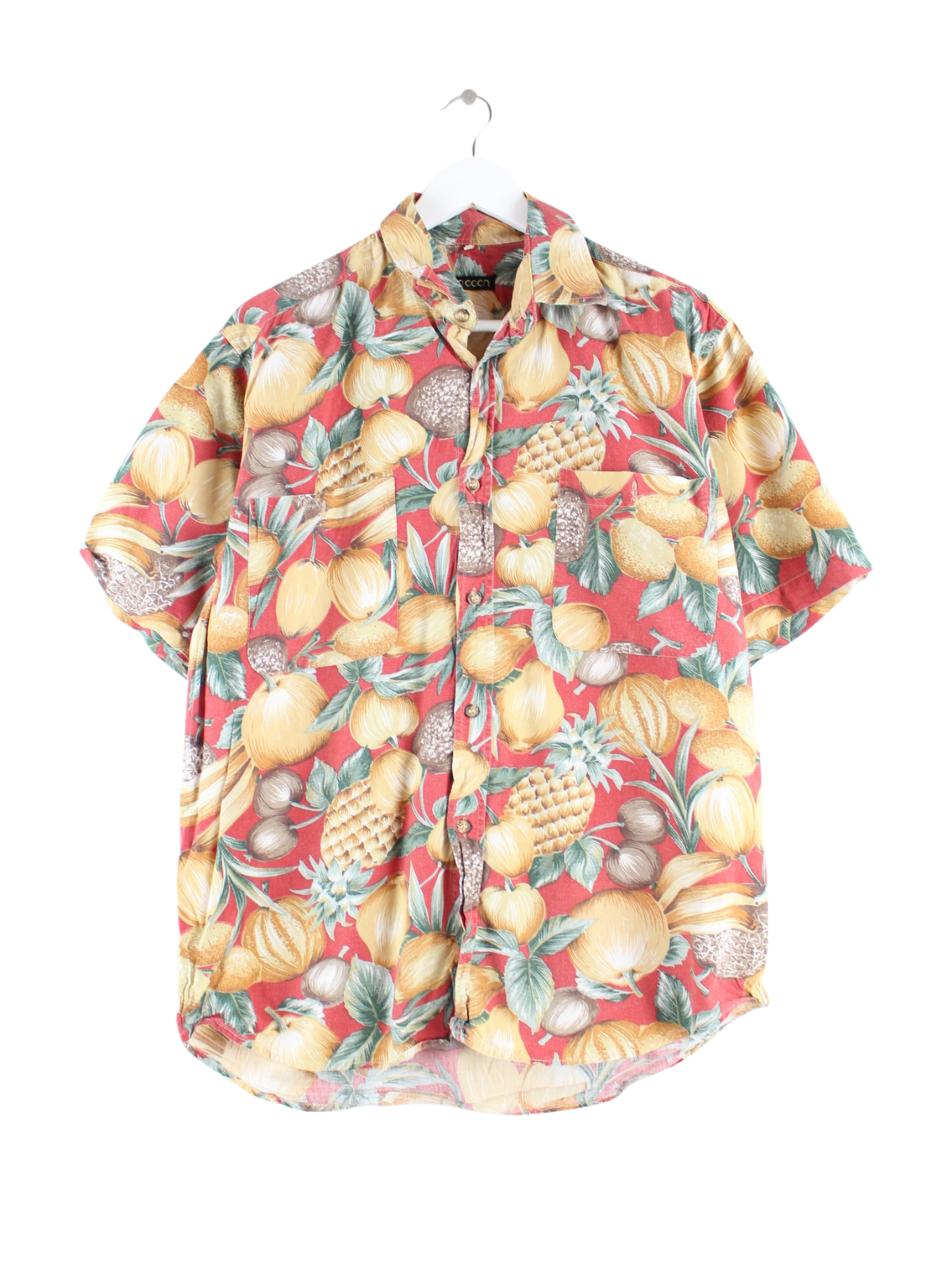 Vintage 90s Fruit Pattern Hawaii Hemd Rot L