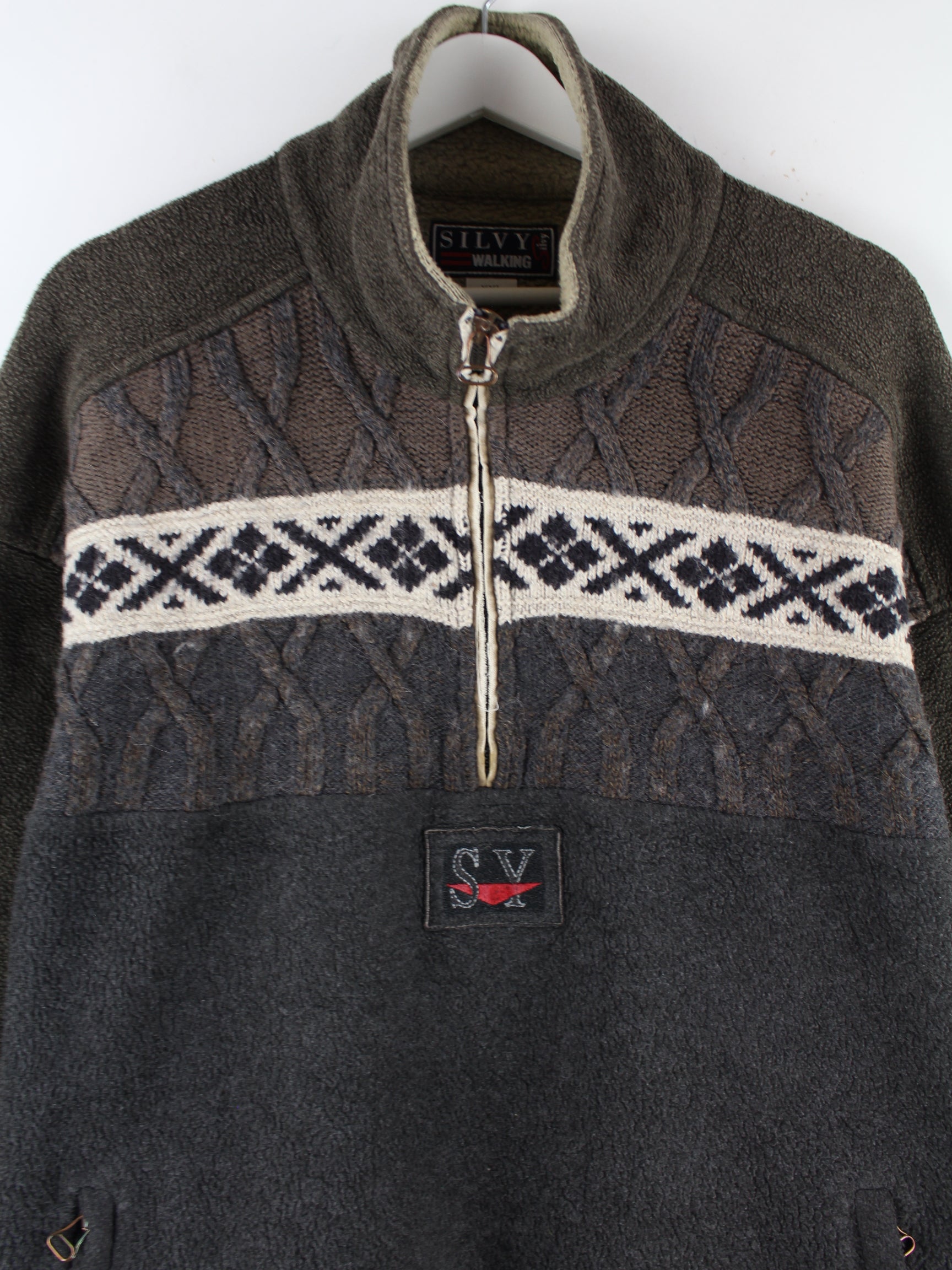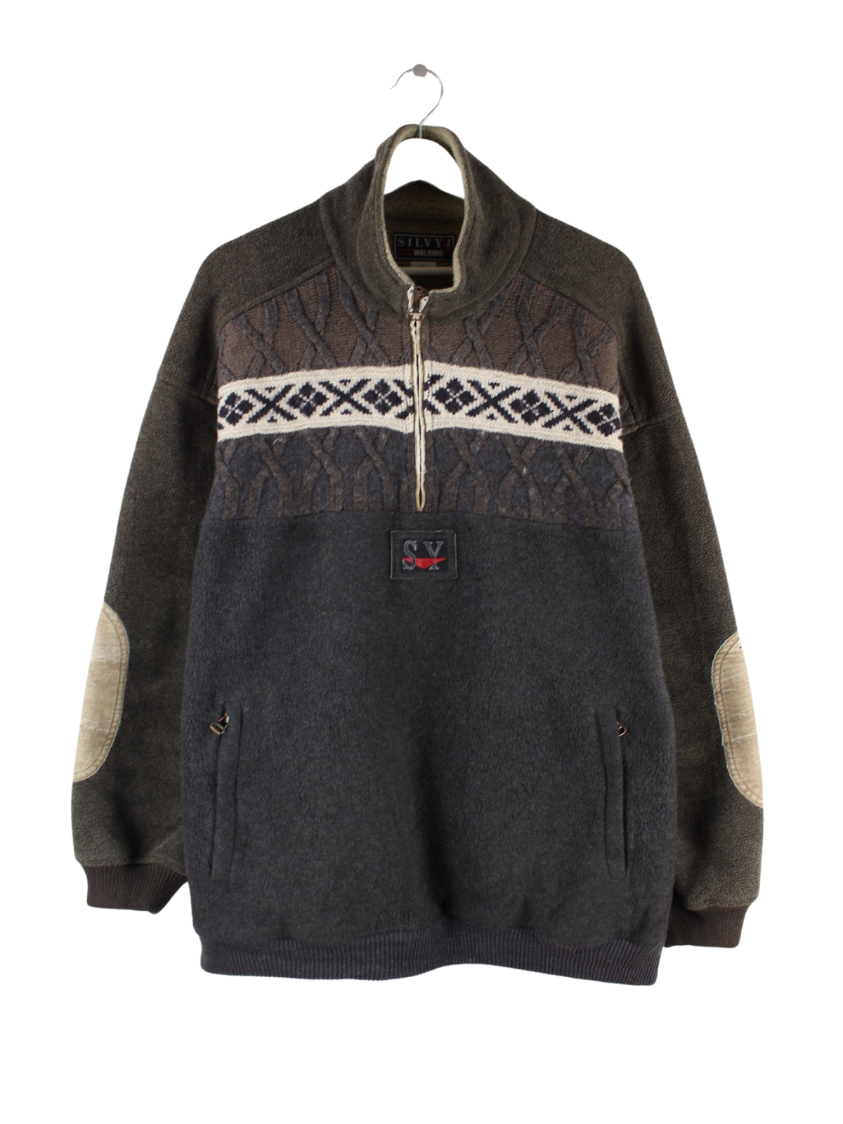Vintage 90s Gefütterter Half Zip Fleece Jacke Braun XXL