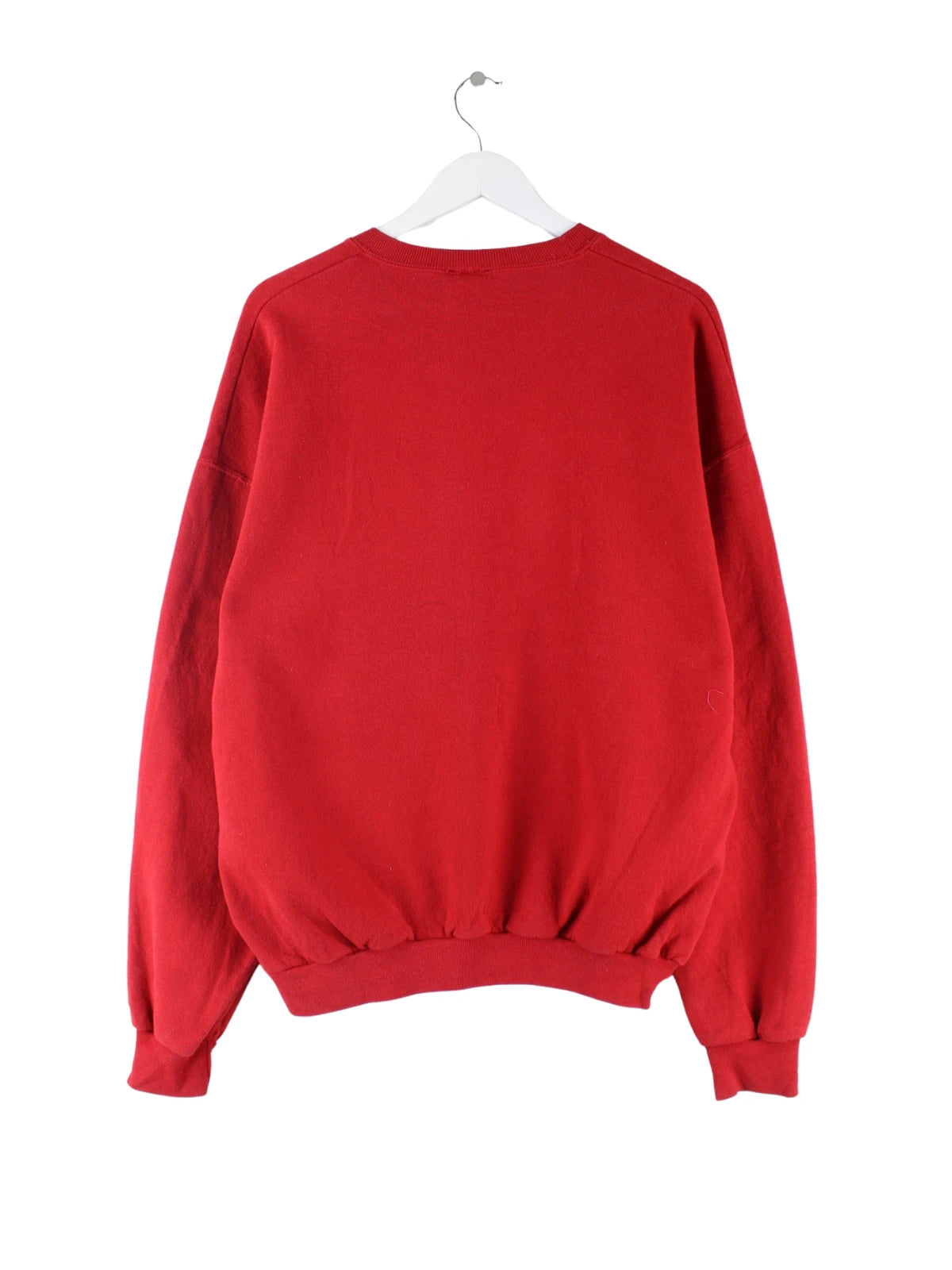 Vintage Sweater in Größe XL aus den 90'ern. Er ist aus einer Baumwollmischung gemacht und in Rot bei uns zu bekommen. Mit chiquem Bulldogs Print.