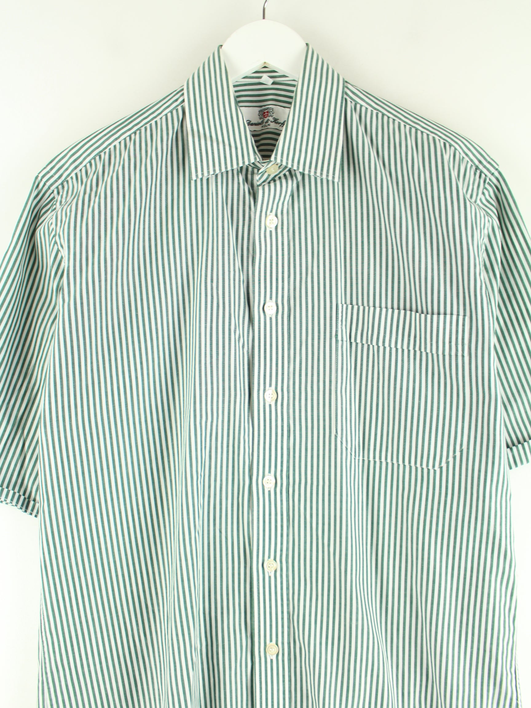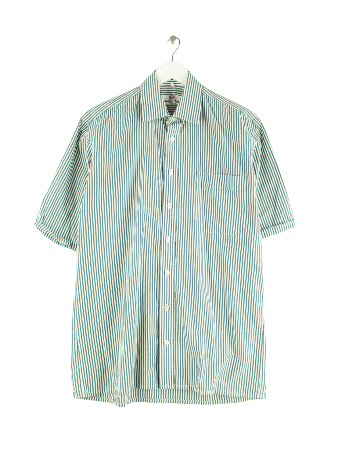 Vintage 90s Gestreiftes Kurzarm Hemd Grün L