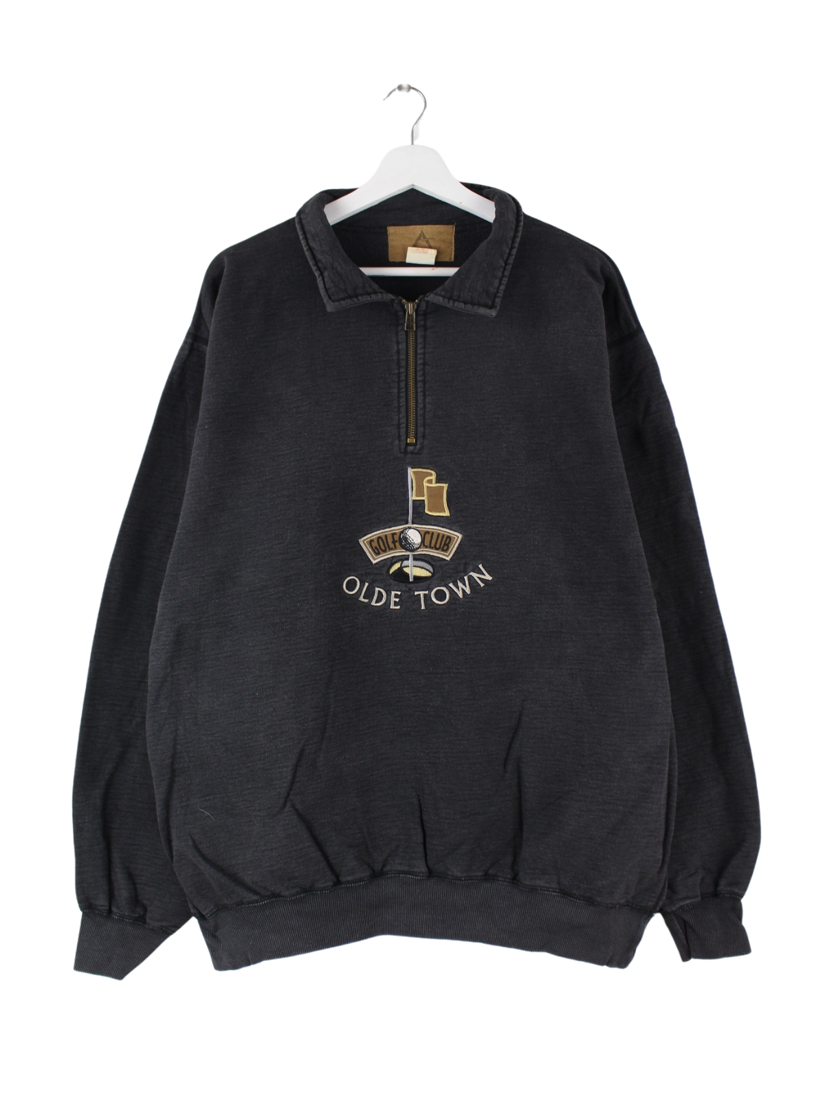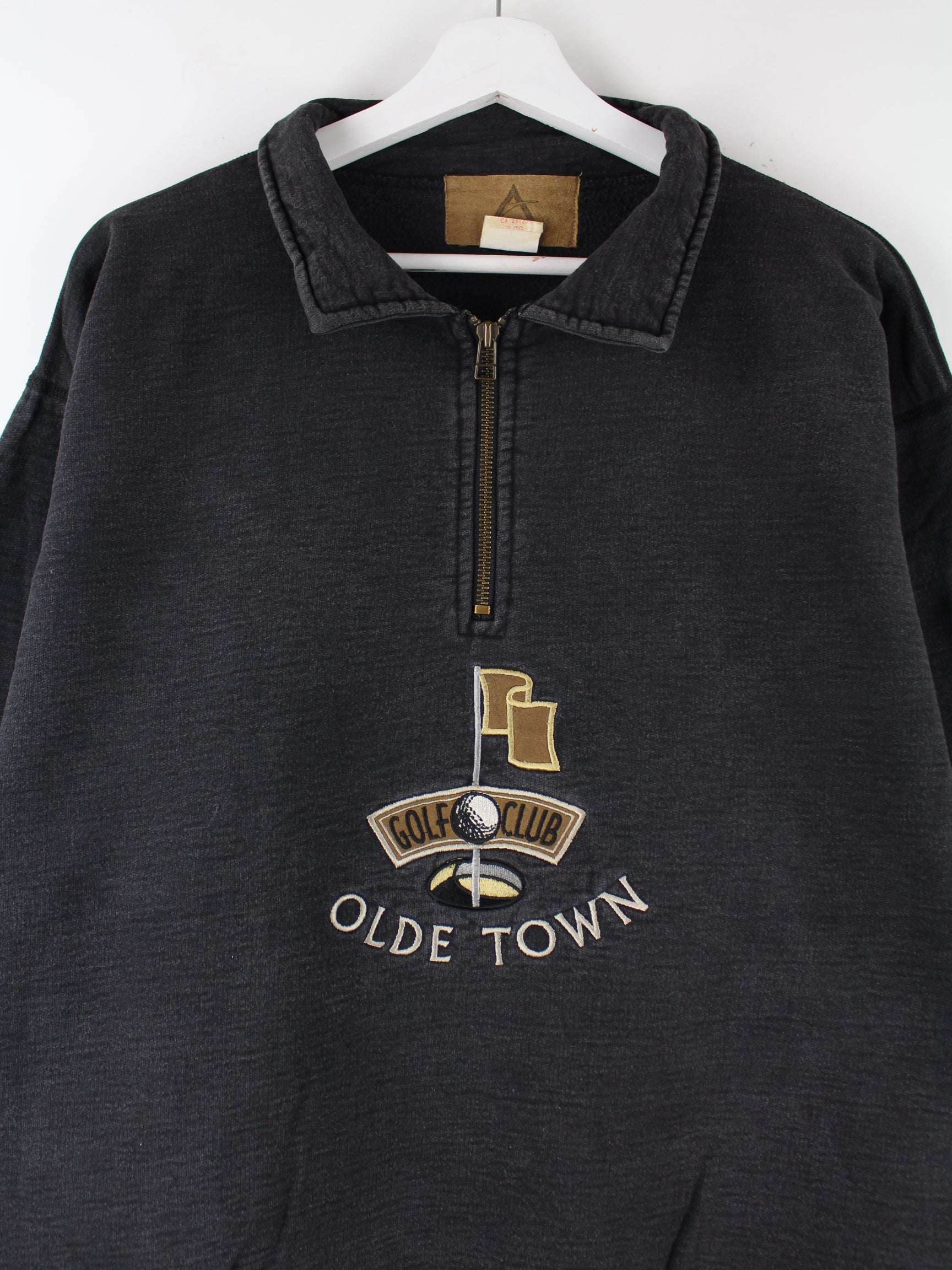 Vintage 90s Golf Embroidered Half Zip Heavy Sweater Grau XL
