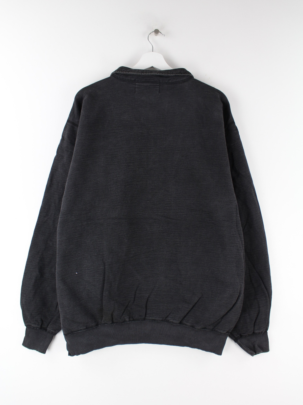 Grauer Vintage Sweater mit gesticktem Logo und half Zip aus den 90'ern in Größe XL. Er ist aus einer Baumwollmischung und in sehr gutem Zustand im Angebot.