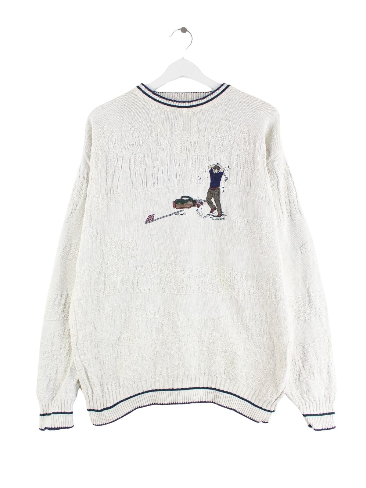 Vintage 90s Golf Embroidered Pullover Weiß M