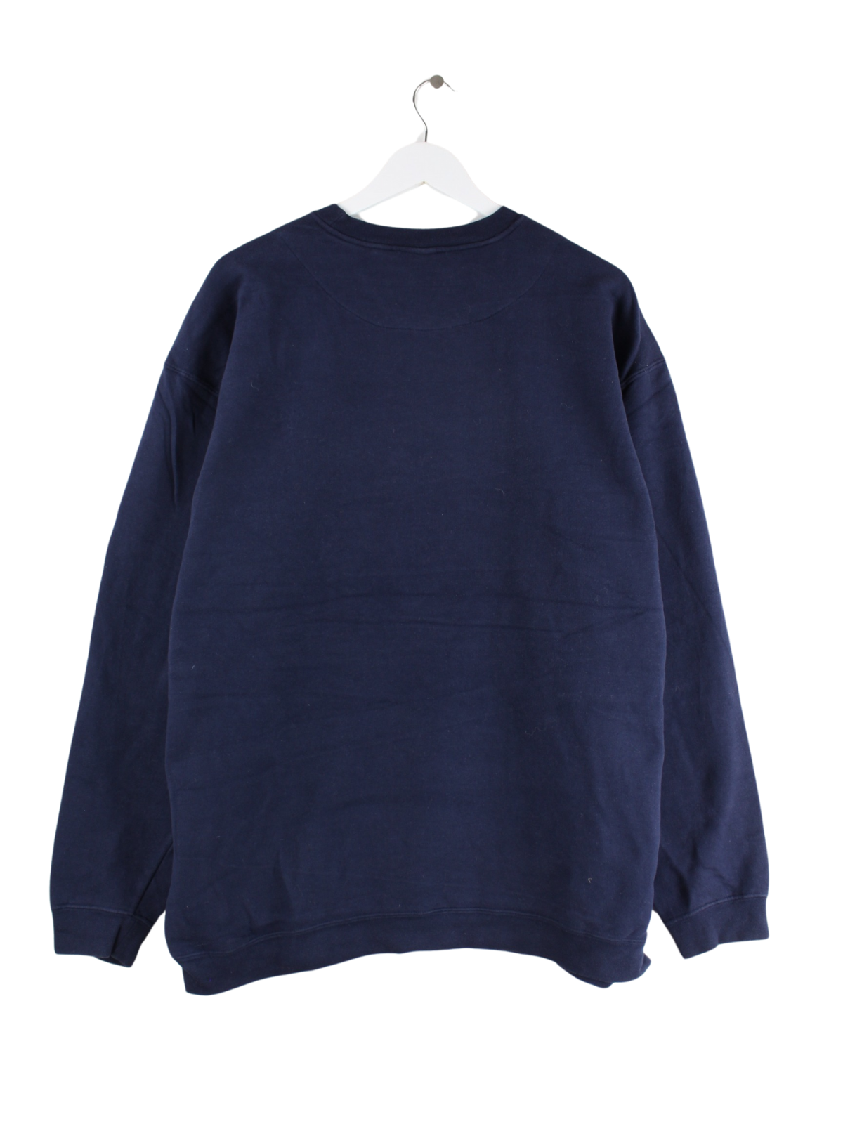 Blauer Vintage Sweater mit Stick aus den 90'ern in Größe XL. Er ist aus einer Baumwollmischung gemacht und in sehr gutem Zustand im Bestand.