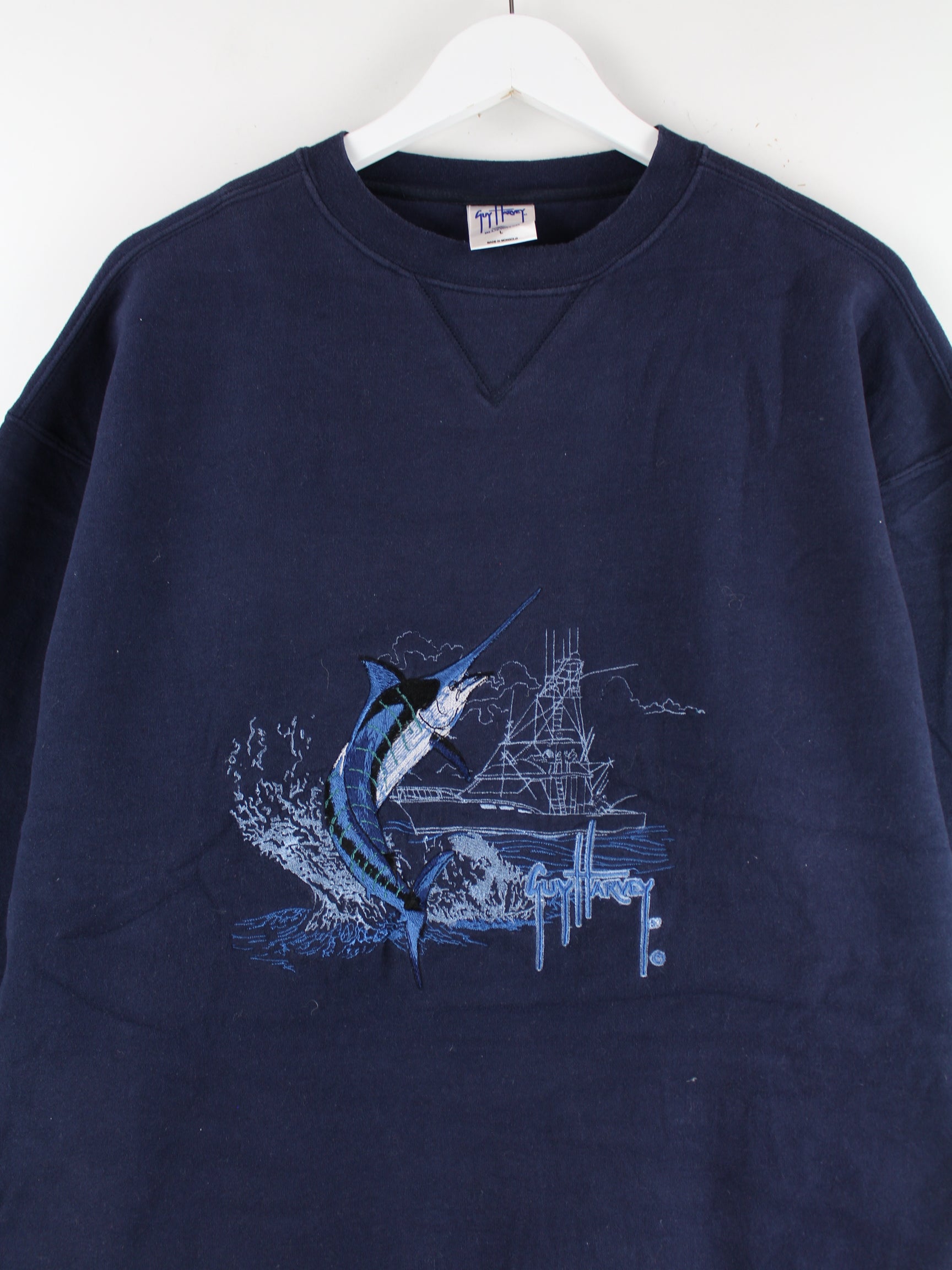 Vintage 90s Guy Harvey Embroidered Sweater Blau XL