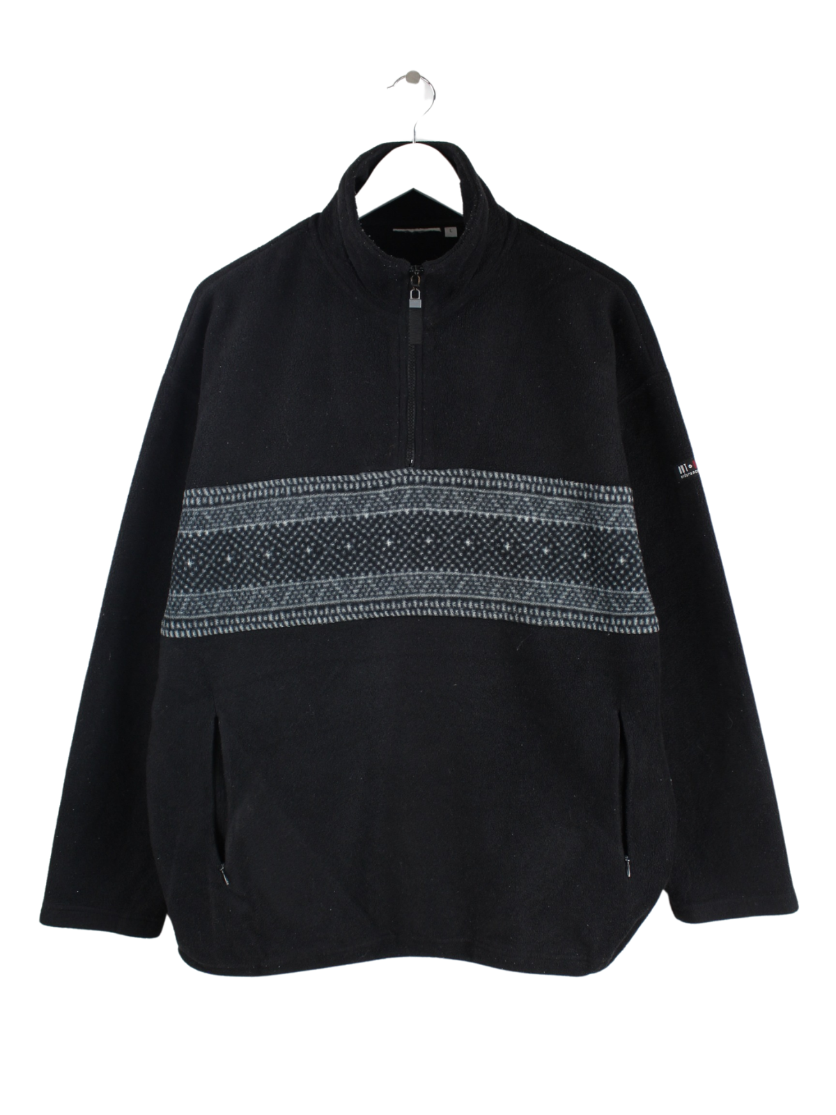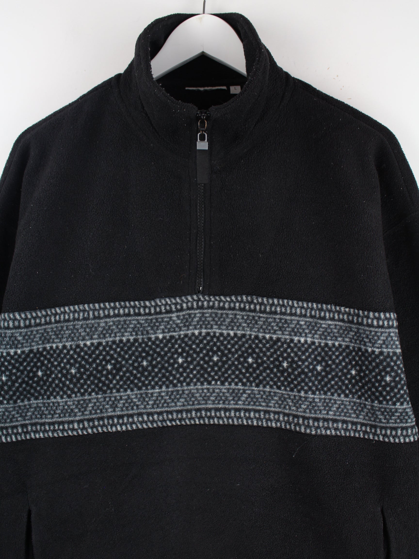 Vintage 90s Half Zip Fleece Sweater Schwarz L