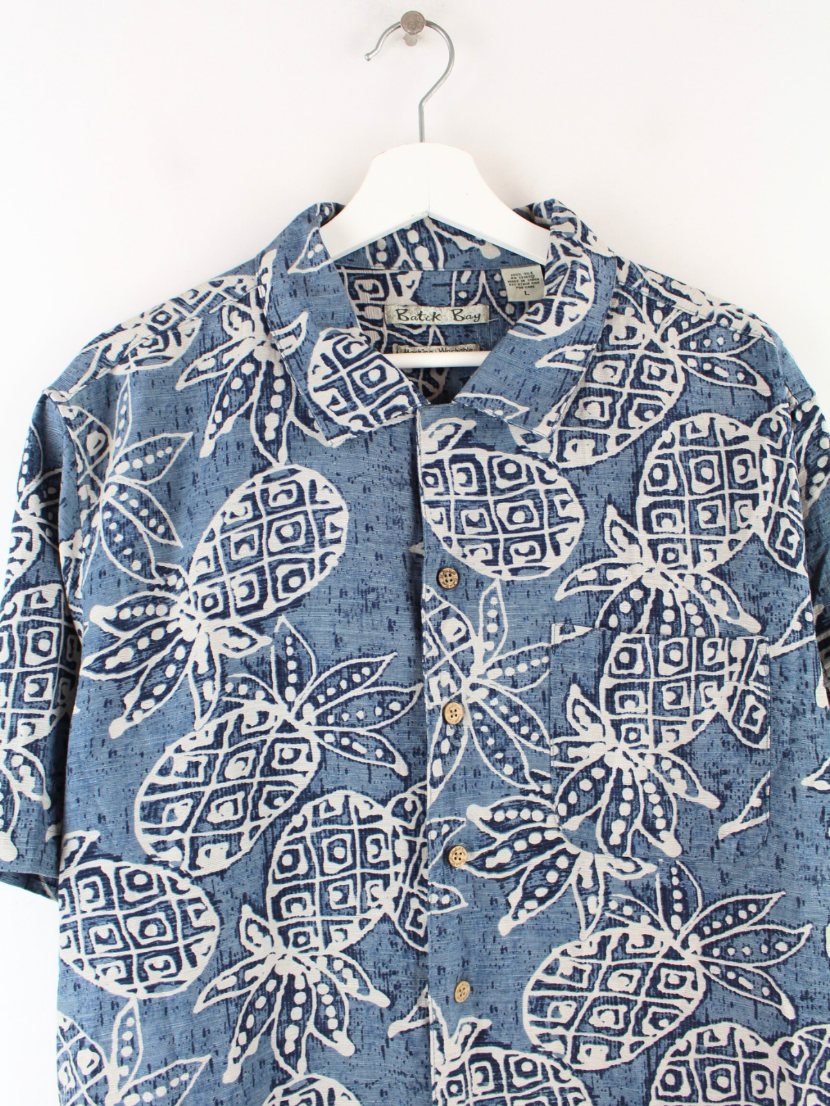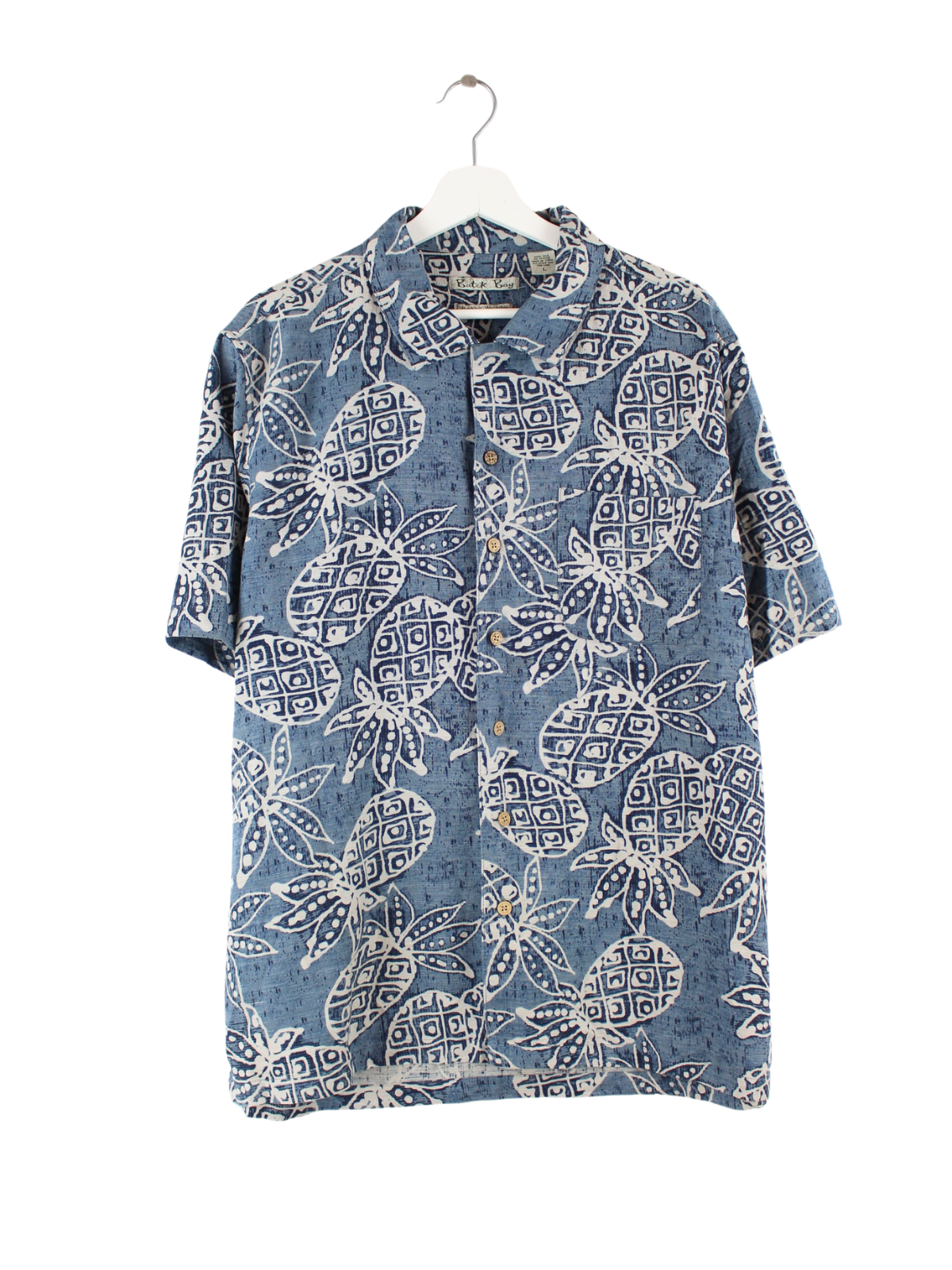 Vintage 90s Hawaii 100% Seide Hemd Blau L