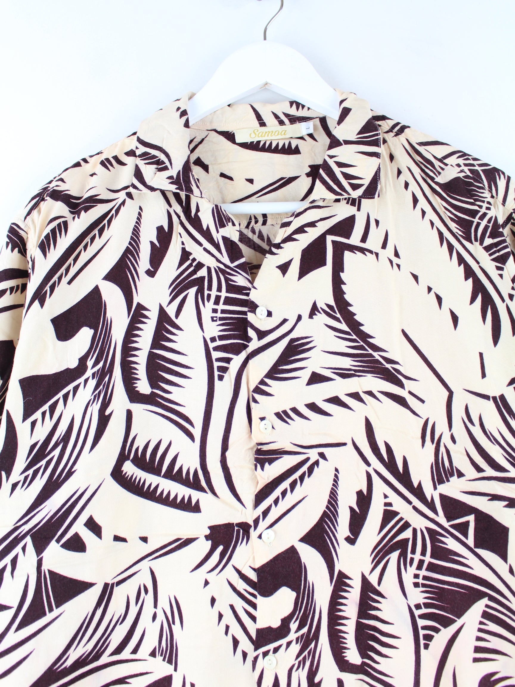 Beigefarbenes Vintage Freizeit Hemd aus den 90'ern in Größe L. Es ist aus einer Baumwollmischung gemacht und in sehr gutem Zustand bei uns vorrätig.