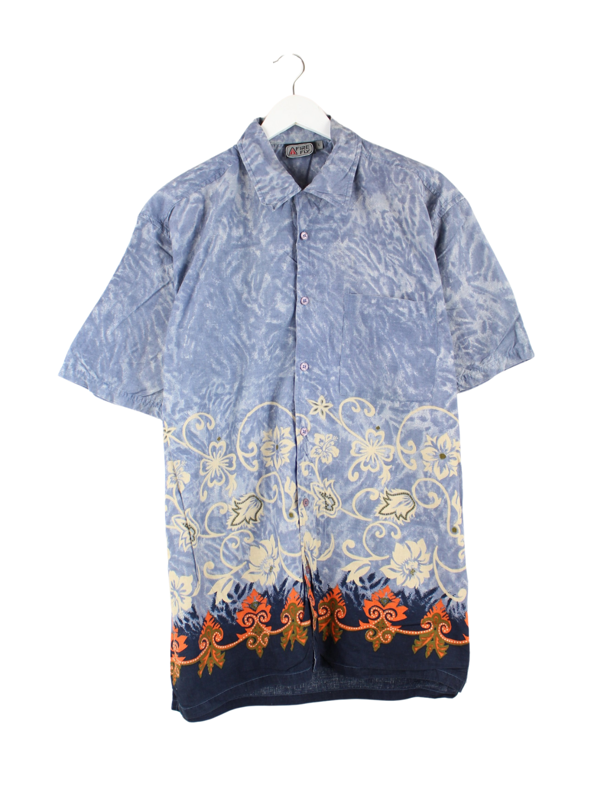 Blaues Vintage Freizeit Hemd aus den 90'ern in Größe L. Es ist aus Baumwolle gemacht und in sehr gutem Zustand auf Lager.