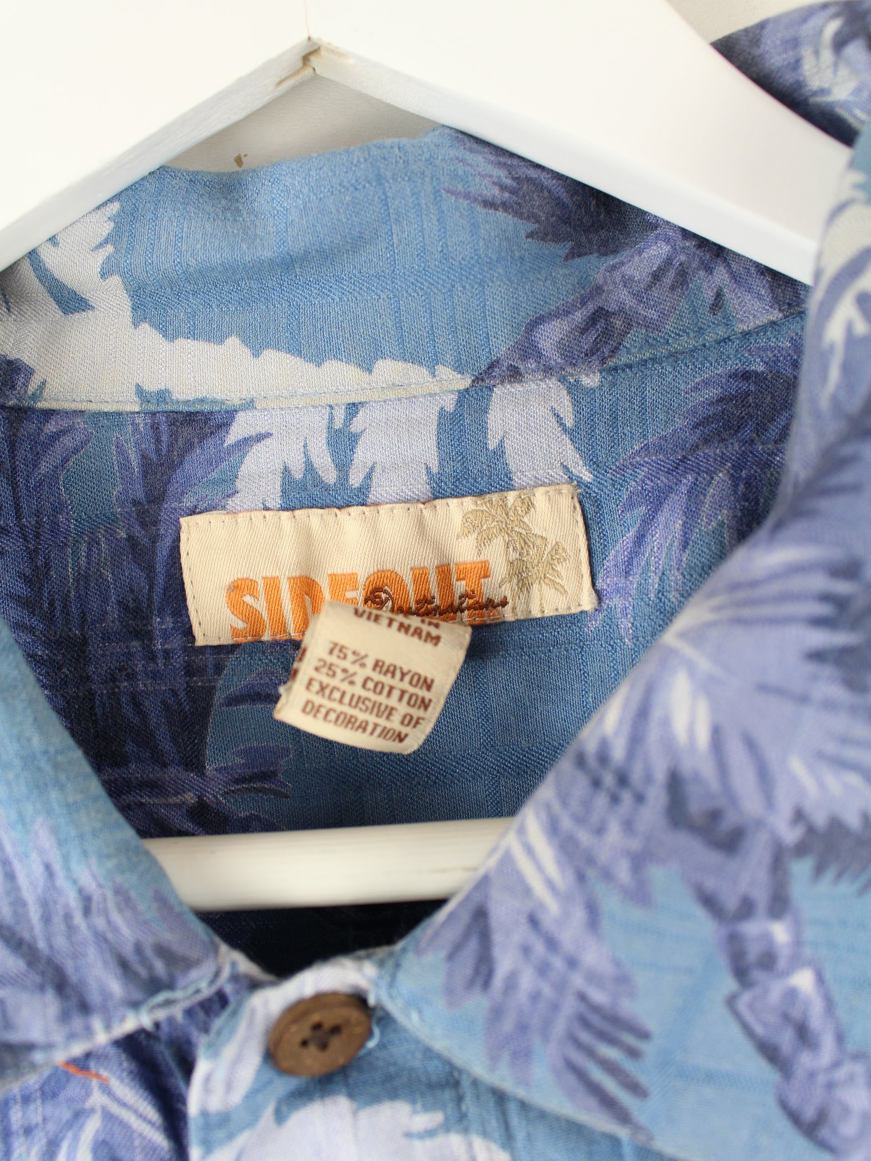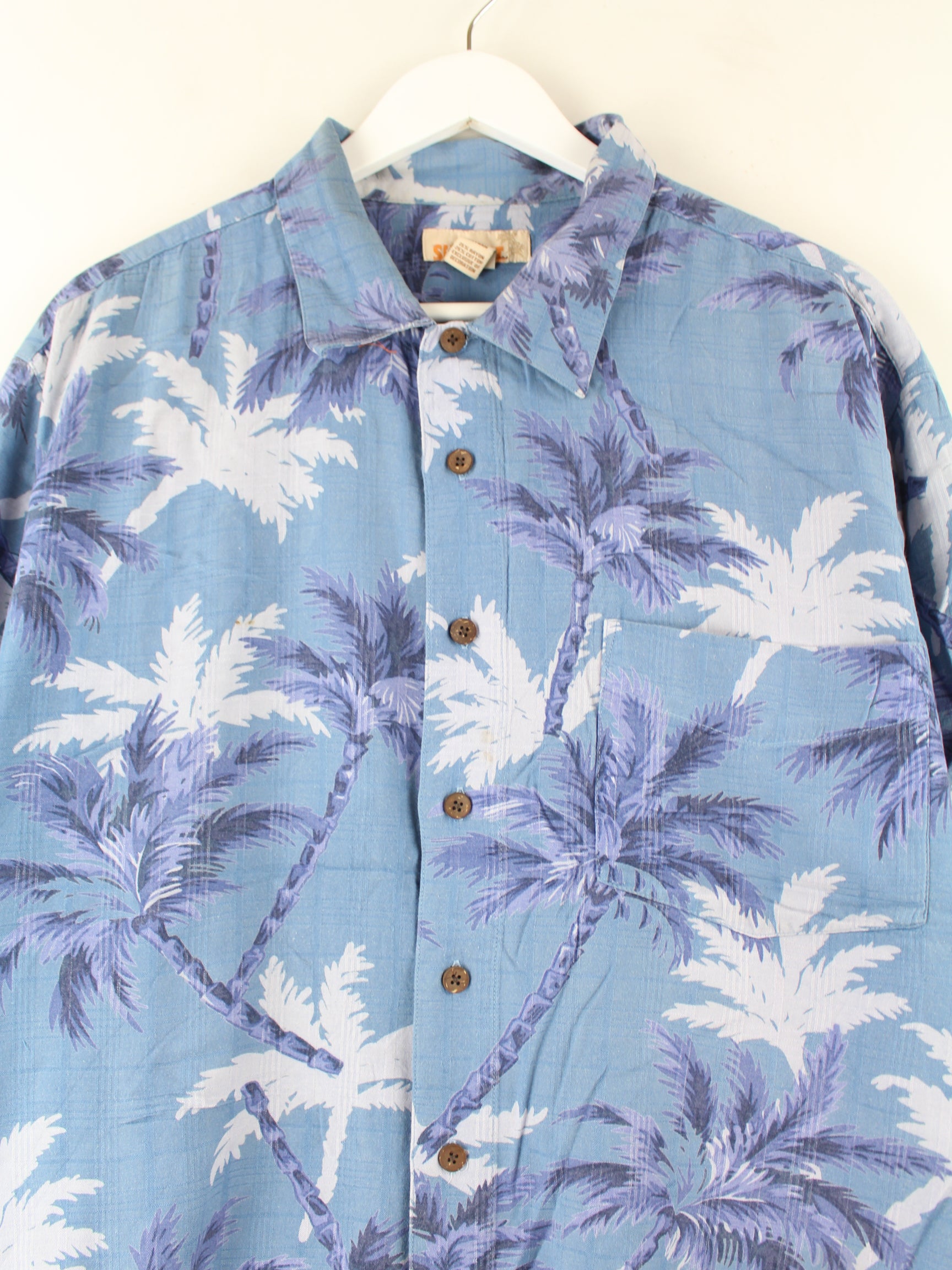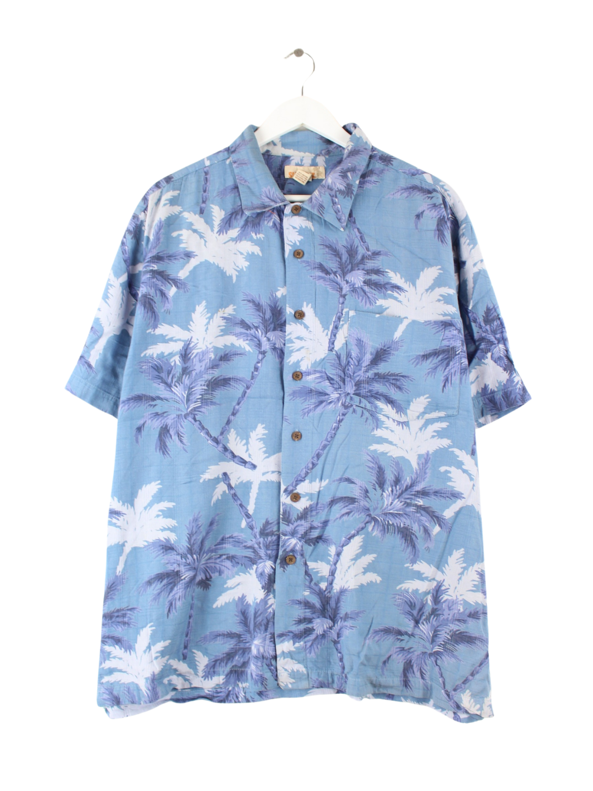 Vintage Freizeit Hemd in Größe XL aus den 90'ern. Es ist aus einer Baumwollmischung und in Blau auf Lager.