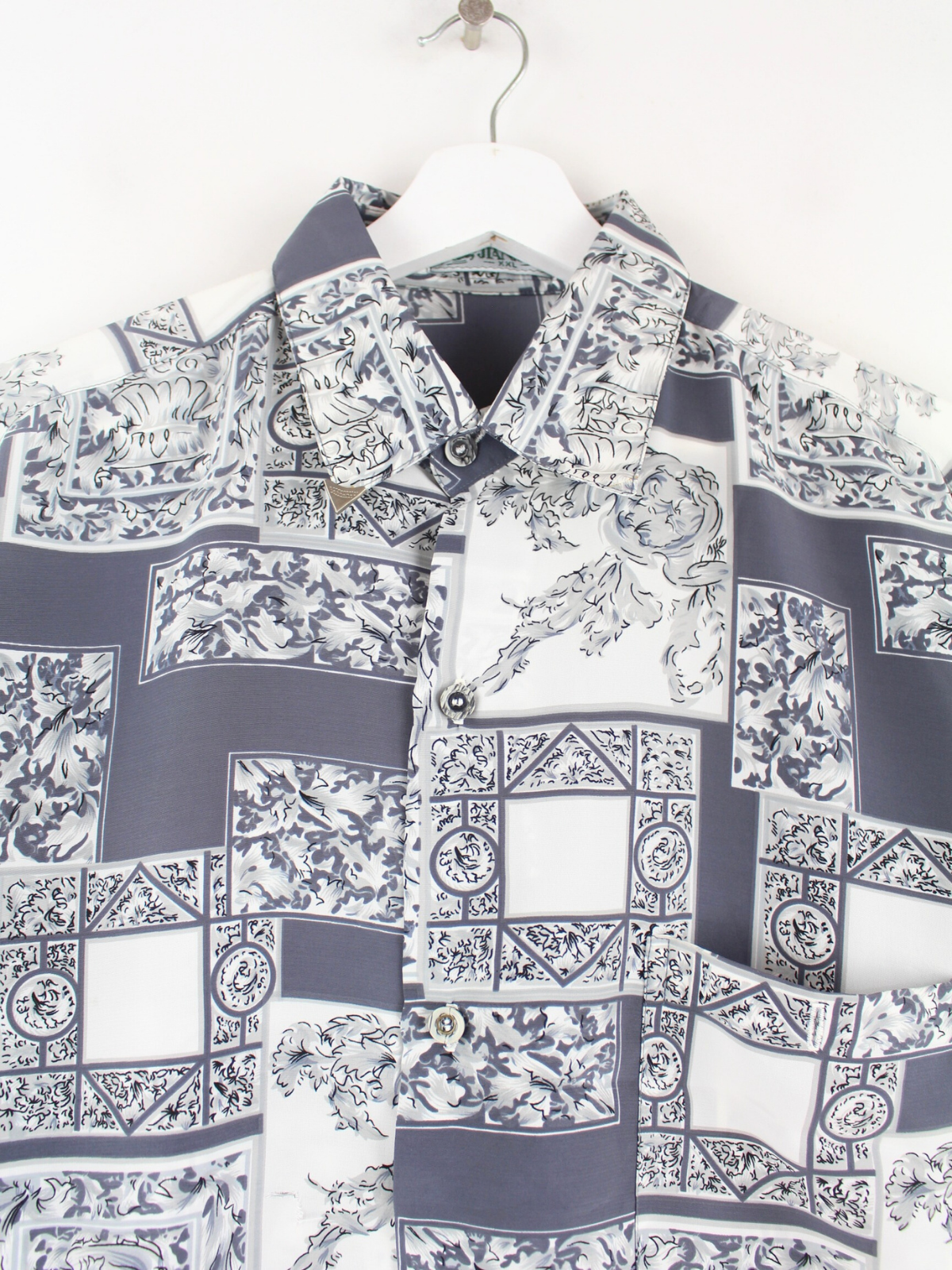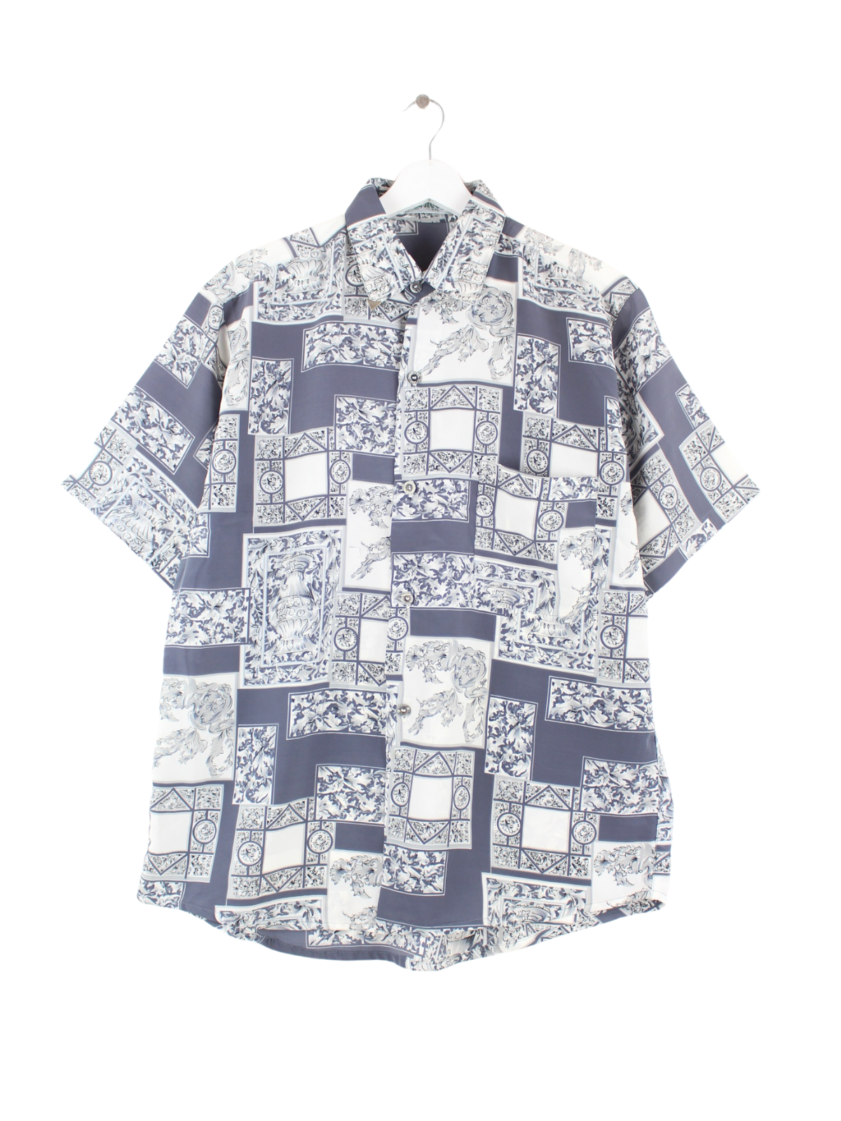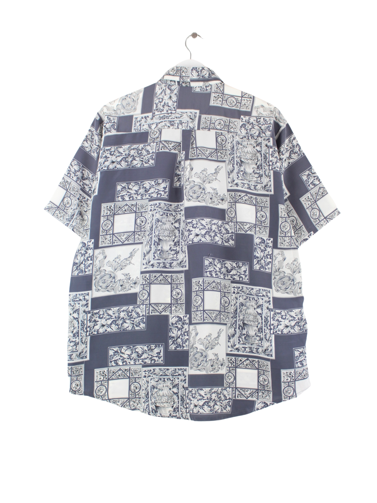 Graues Vintage Freizeit Hemd aus den 90'ern in Größe XXL. Es ist aus Synthetik produziert. Den Zustand würden wir als 'In Ordnung' bezeichnen (vergl. Bilder).