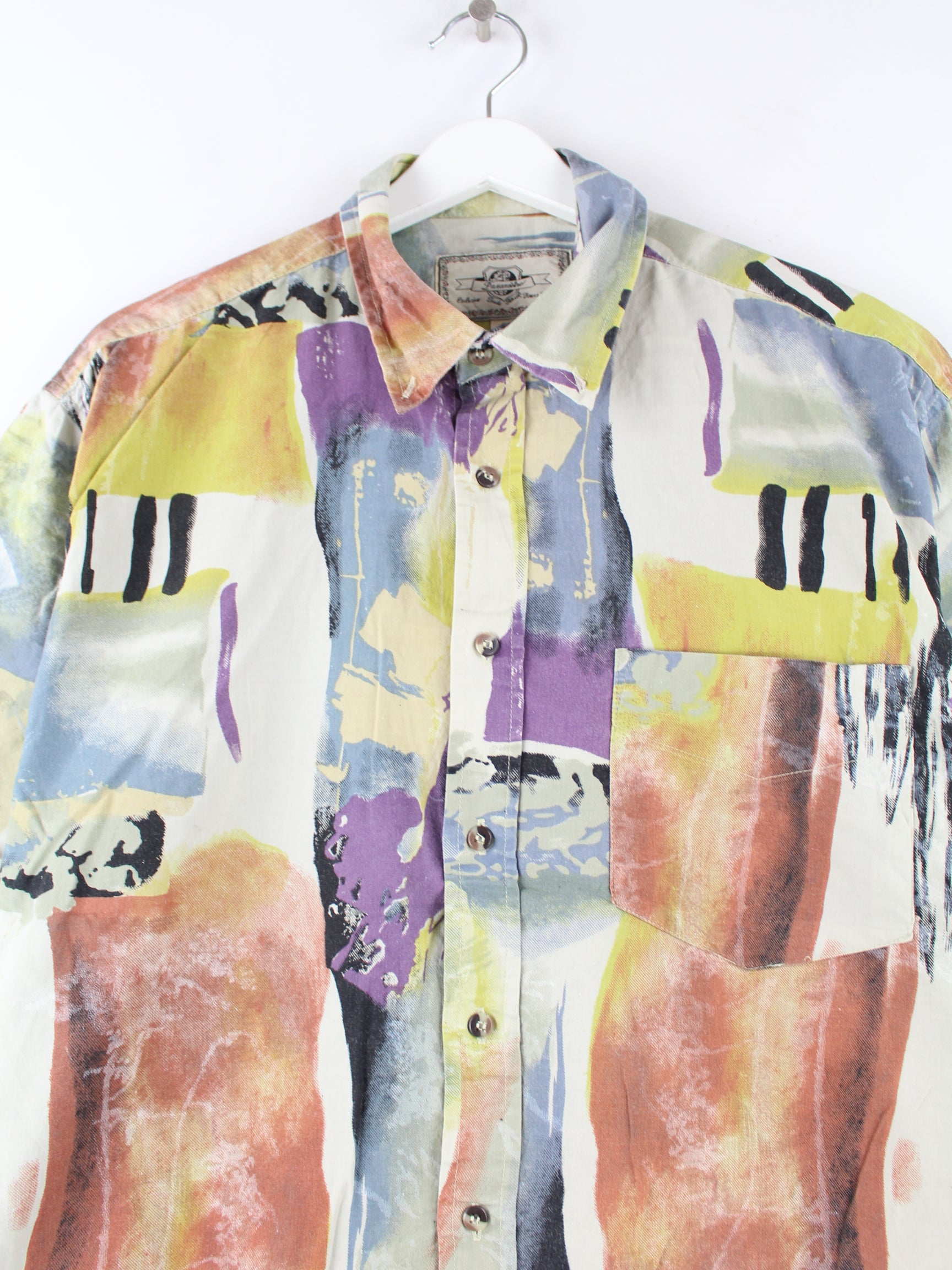 Mehrfarbiges Vintage Freizeit Hemd aus den 90'ern in Größe L. Es ist aus einer Baumwollmischung hergestellt und in sehr gutem Zustand im Angebot.