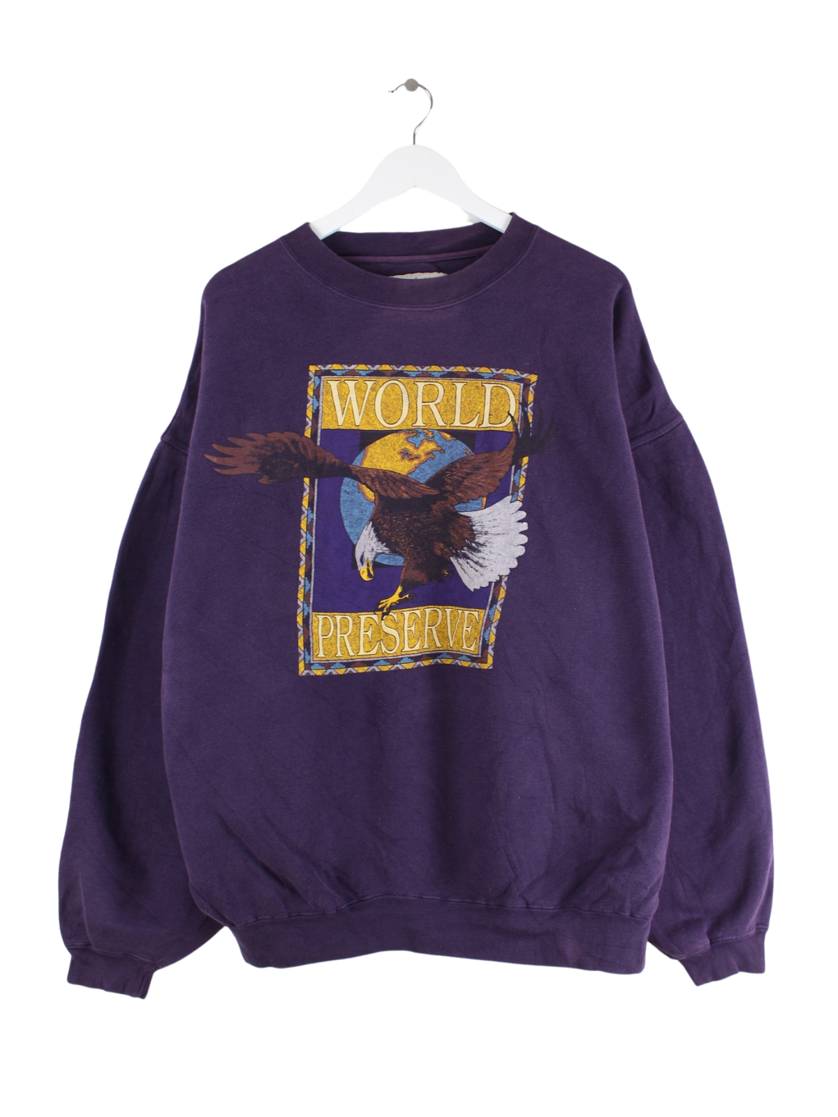 Lilafarbener Vintage Sweater aus den 90'ern in Größe XXL. Er ist aus einer Baumwollmischung produziert und in gutem Zustand in Stock. Mit seltenem Seal Print.