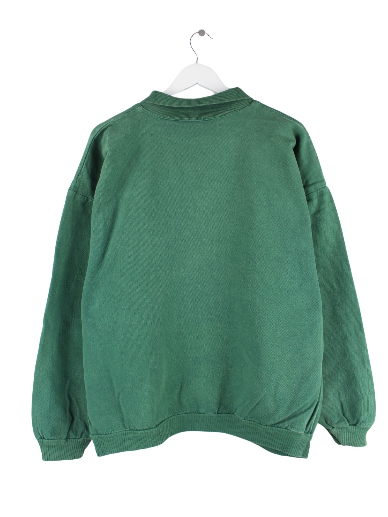 Vintage Sweater mit Stickereien in Größe XL aus den 90'ern. Er ist aus einer Baumwollmischung gemacht und in Grün bei uns zu bekommen.