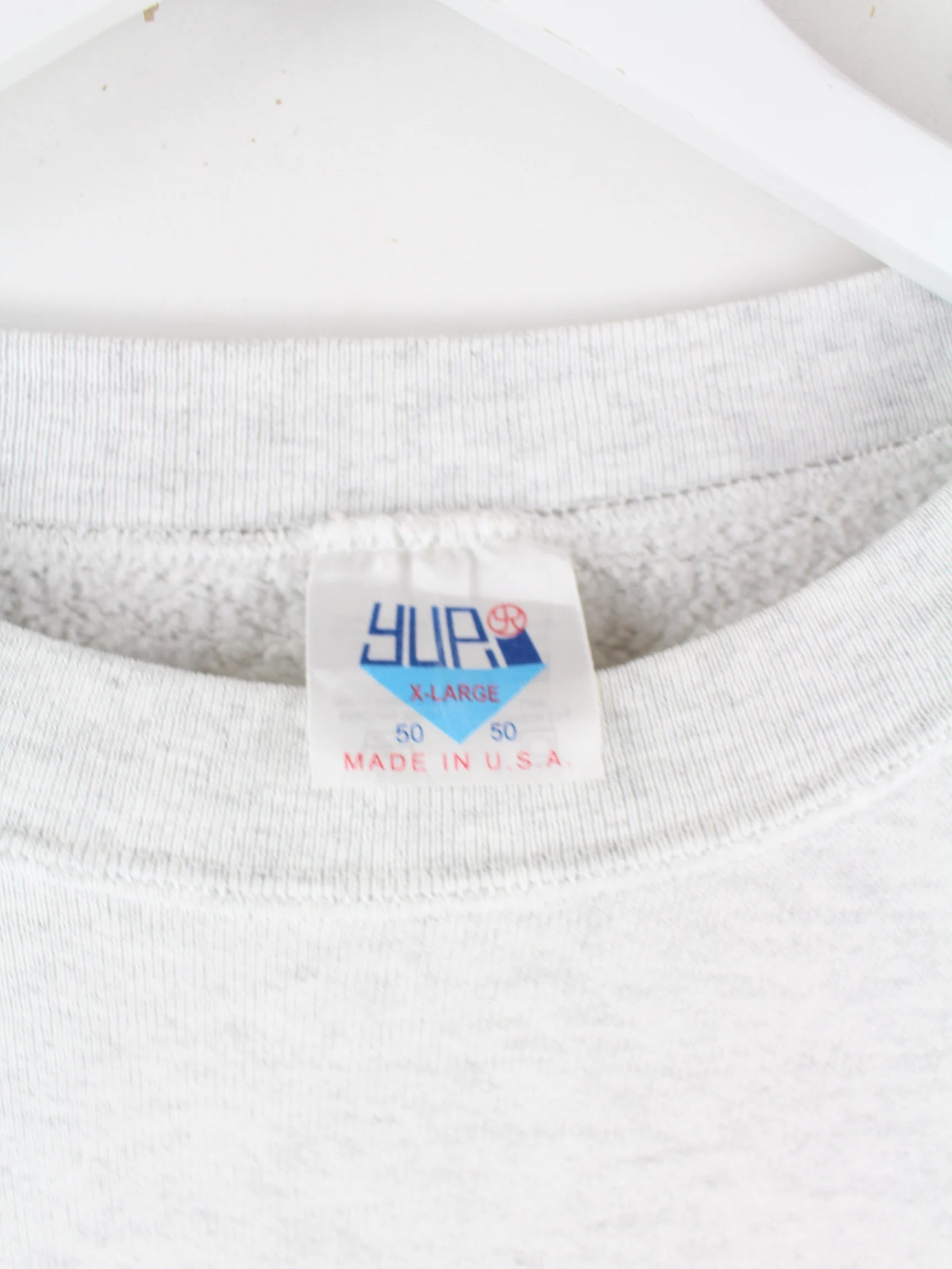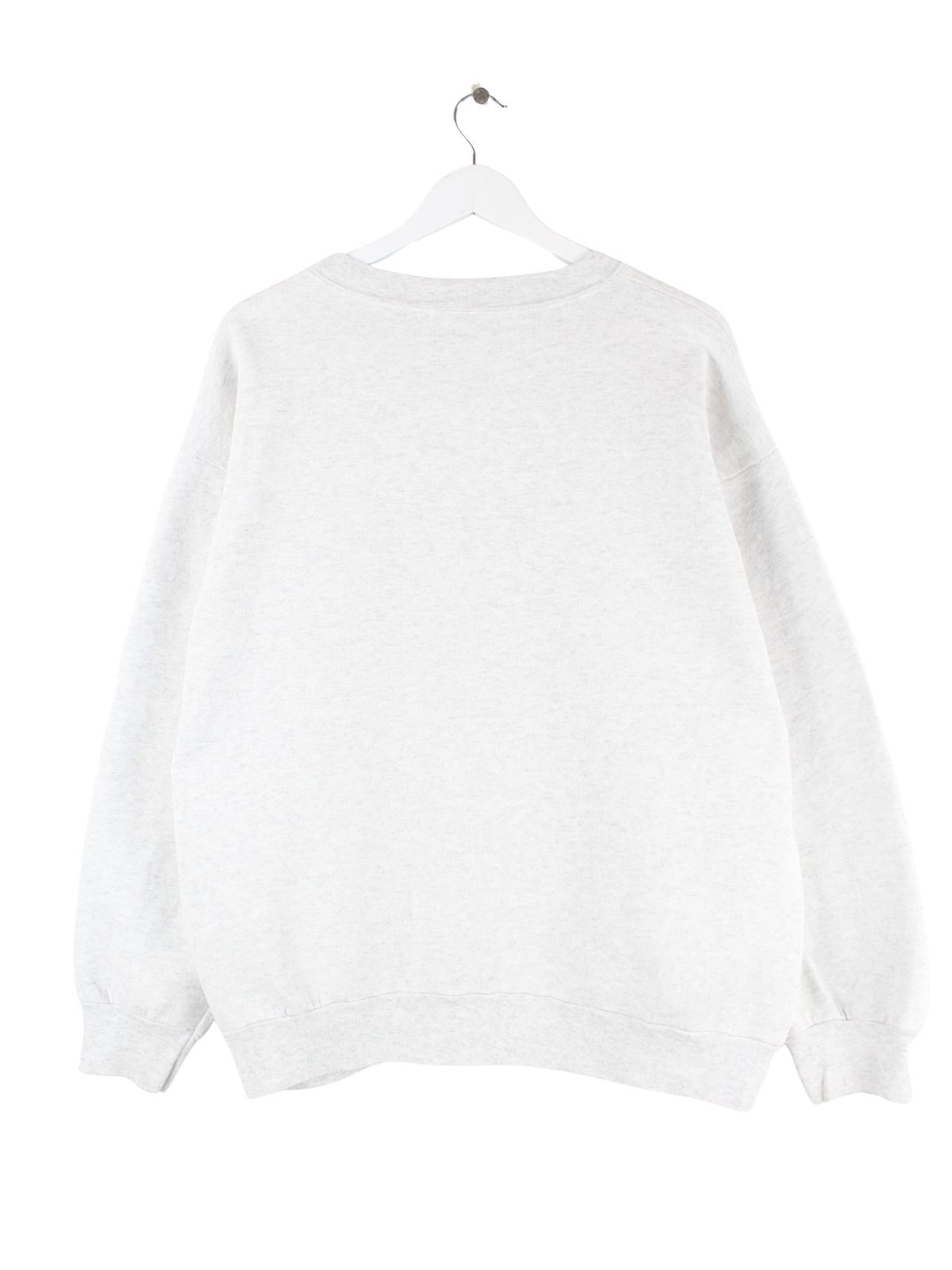 Grauer Vintage Sweater mit Stick aus den 90'ern in Größe XL. Er ist aus einer Baumwollmischung gefertigt und in sehr gutem Zustand vorrätig.