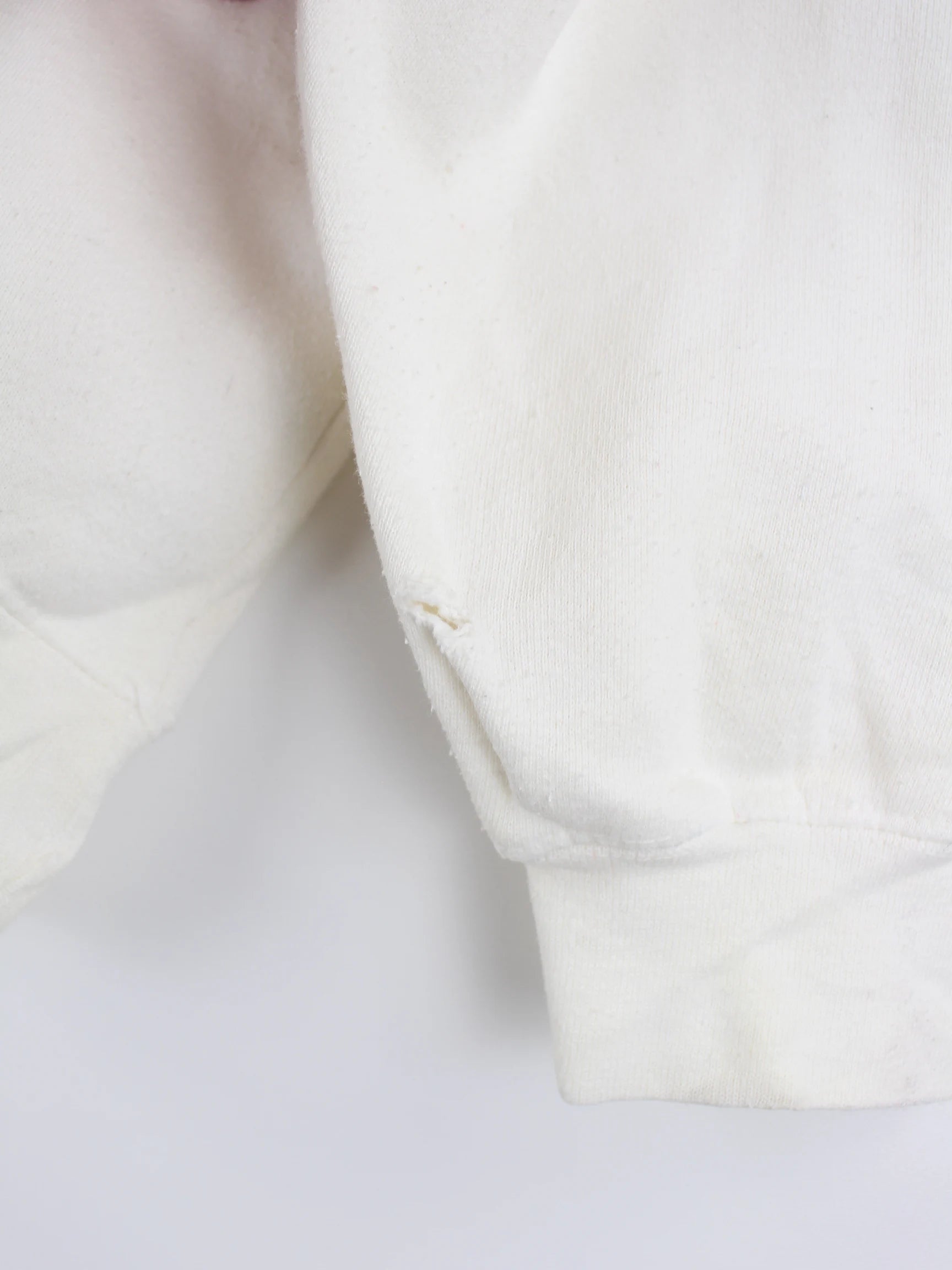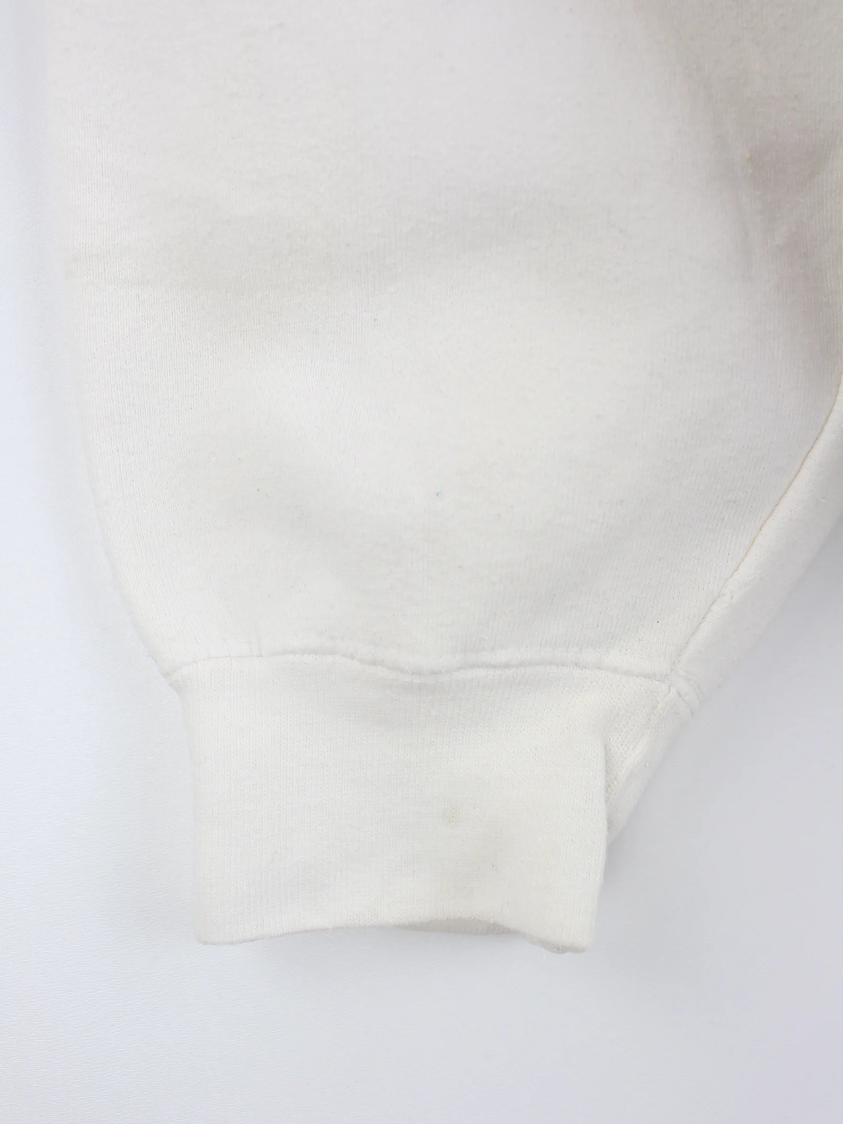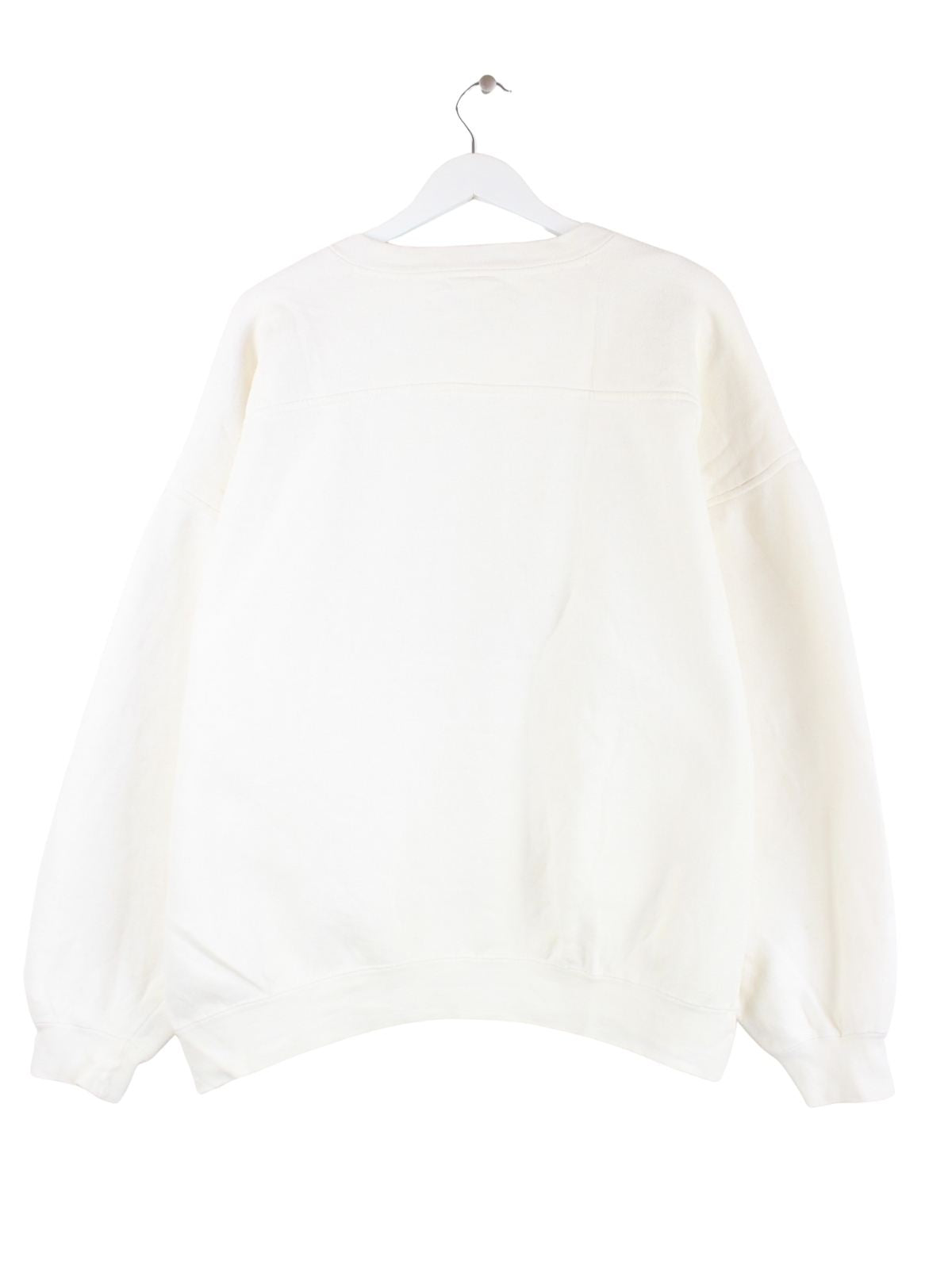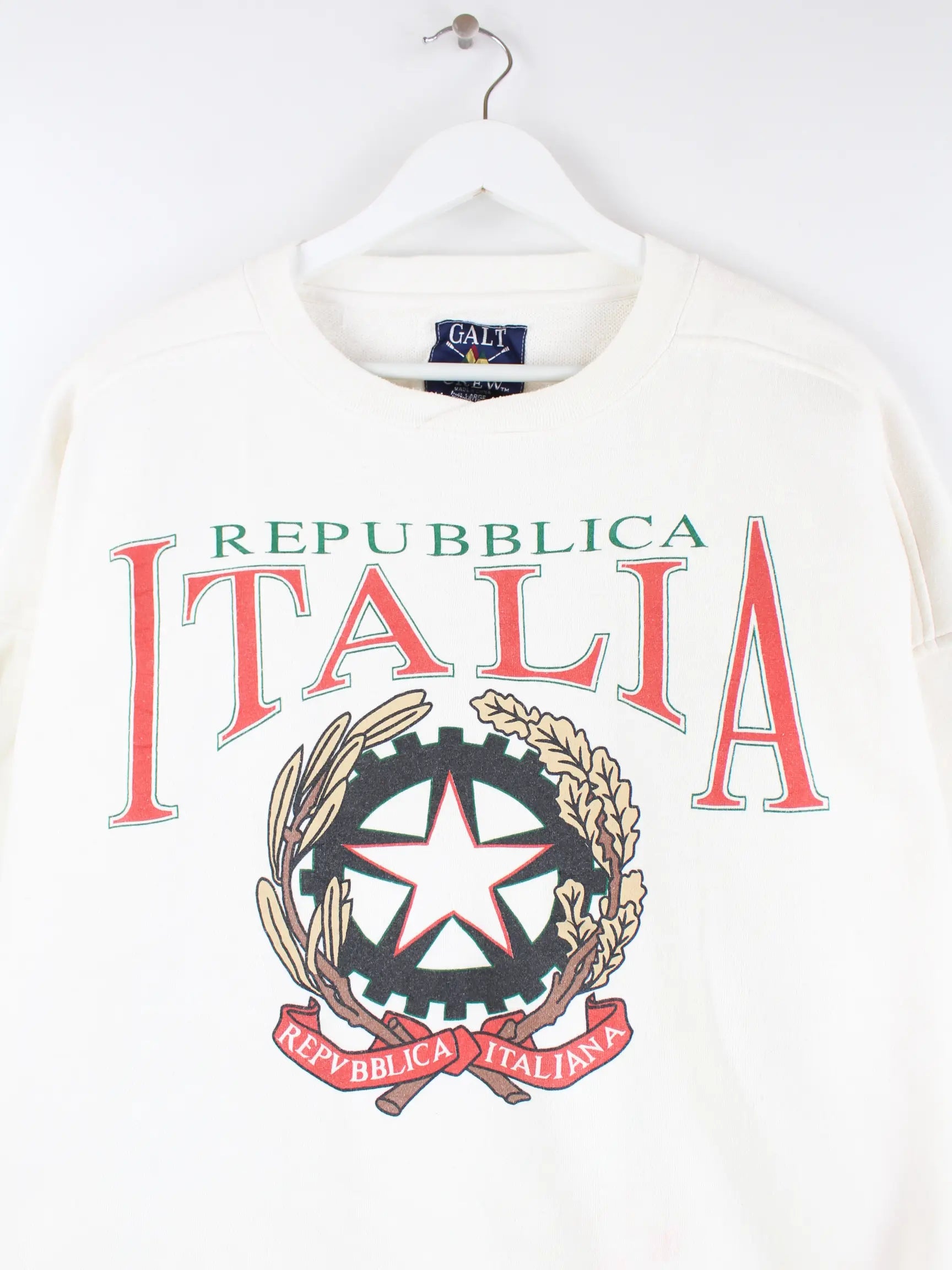 Vintage Sweater in Größe XL aus den 90'ern. Er ist aus einer Baumwollmischung und in Weiß vorrätig. Mit schönem Italia Print.