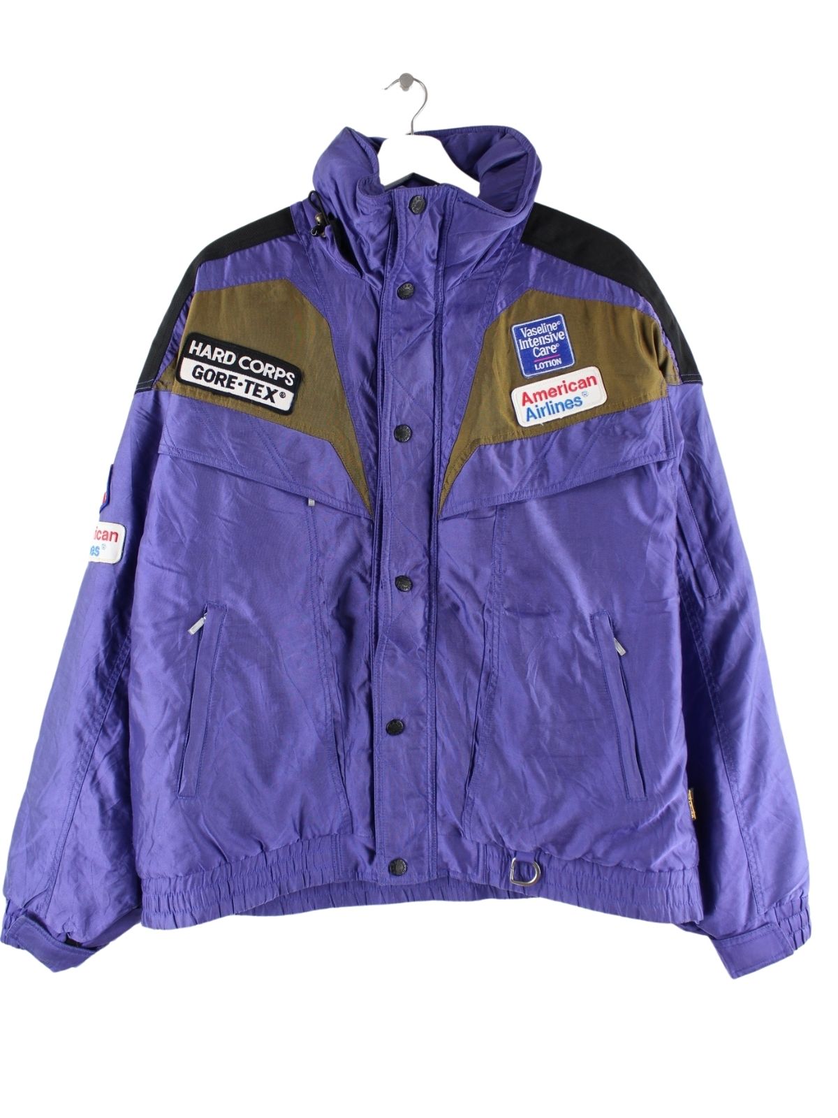 Lilafarbene Vintage Leichte Jacke aus den 90'ern in Größe L. Sie ist aus Synthetik gefertigt und in sehr gutem Zustand auf Lager.