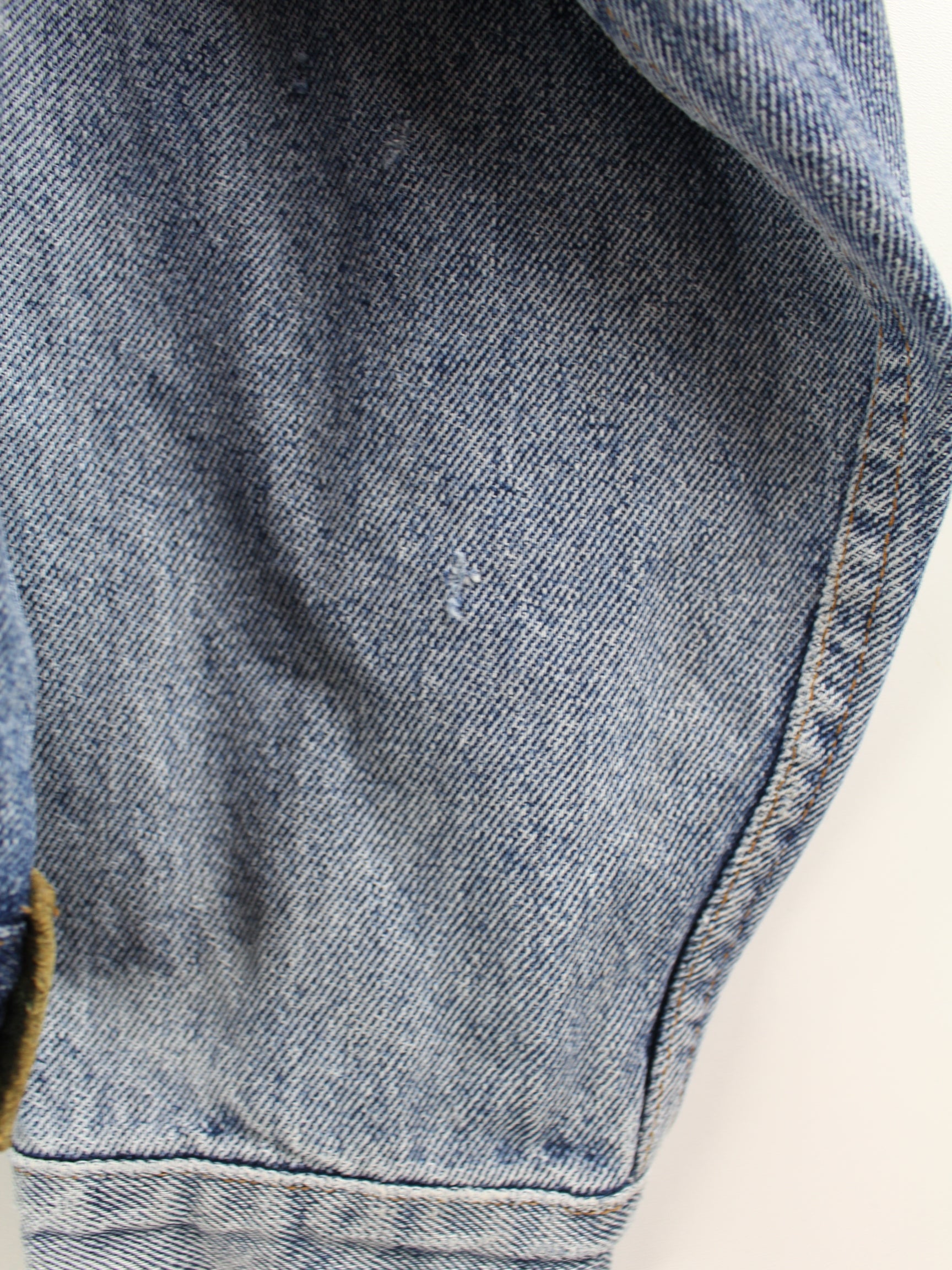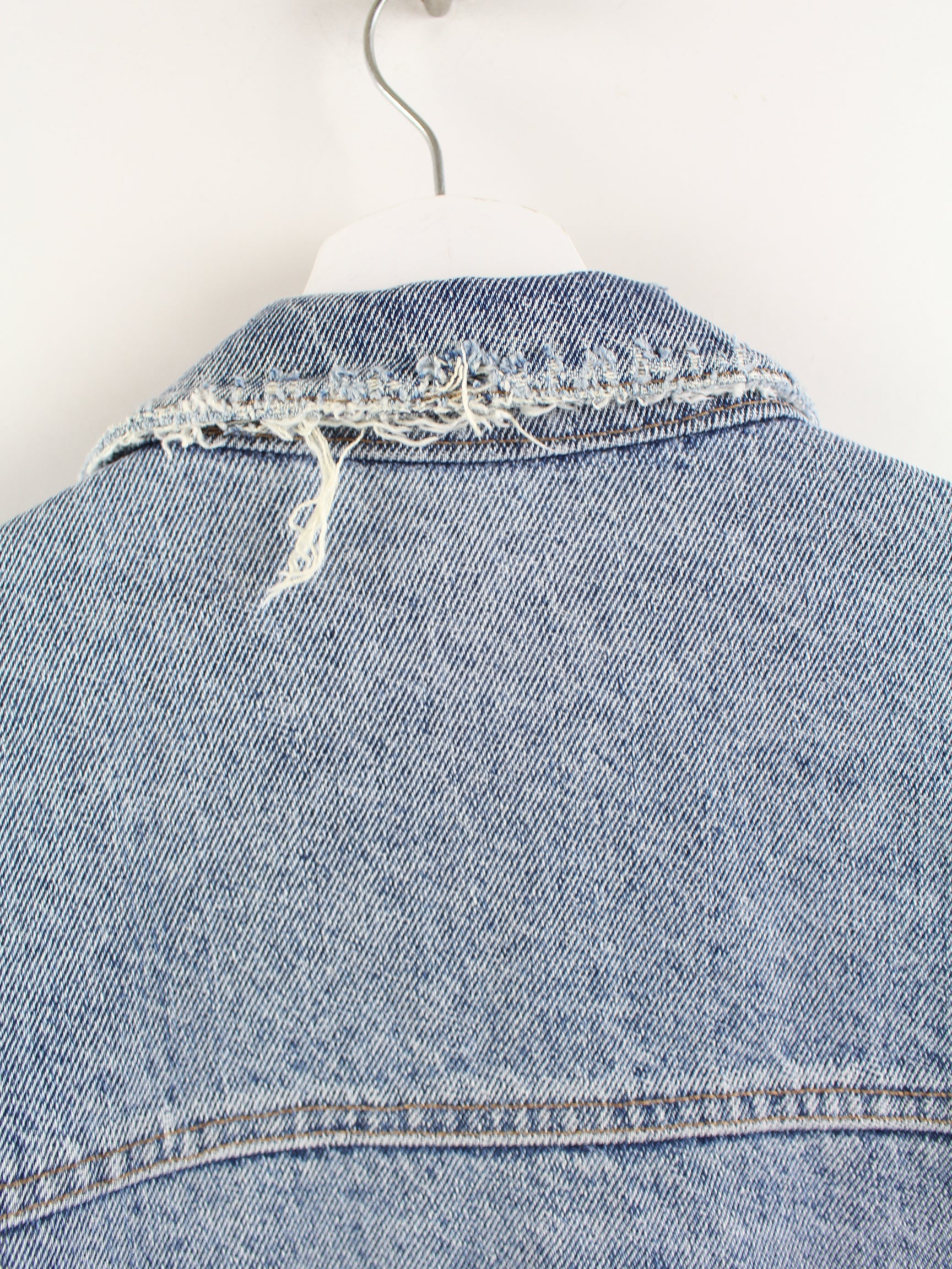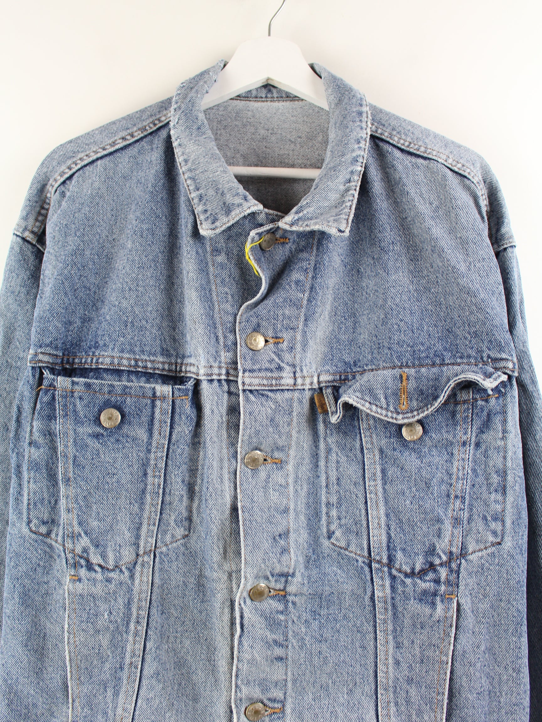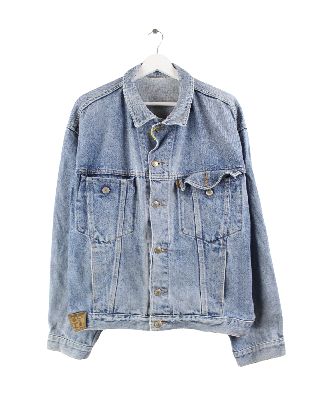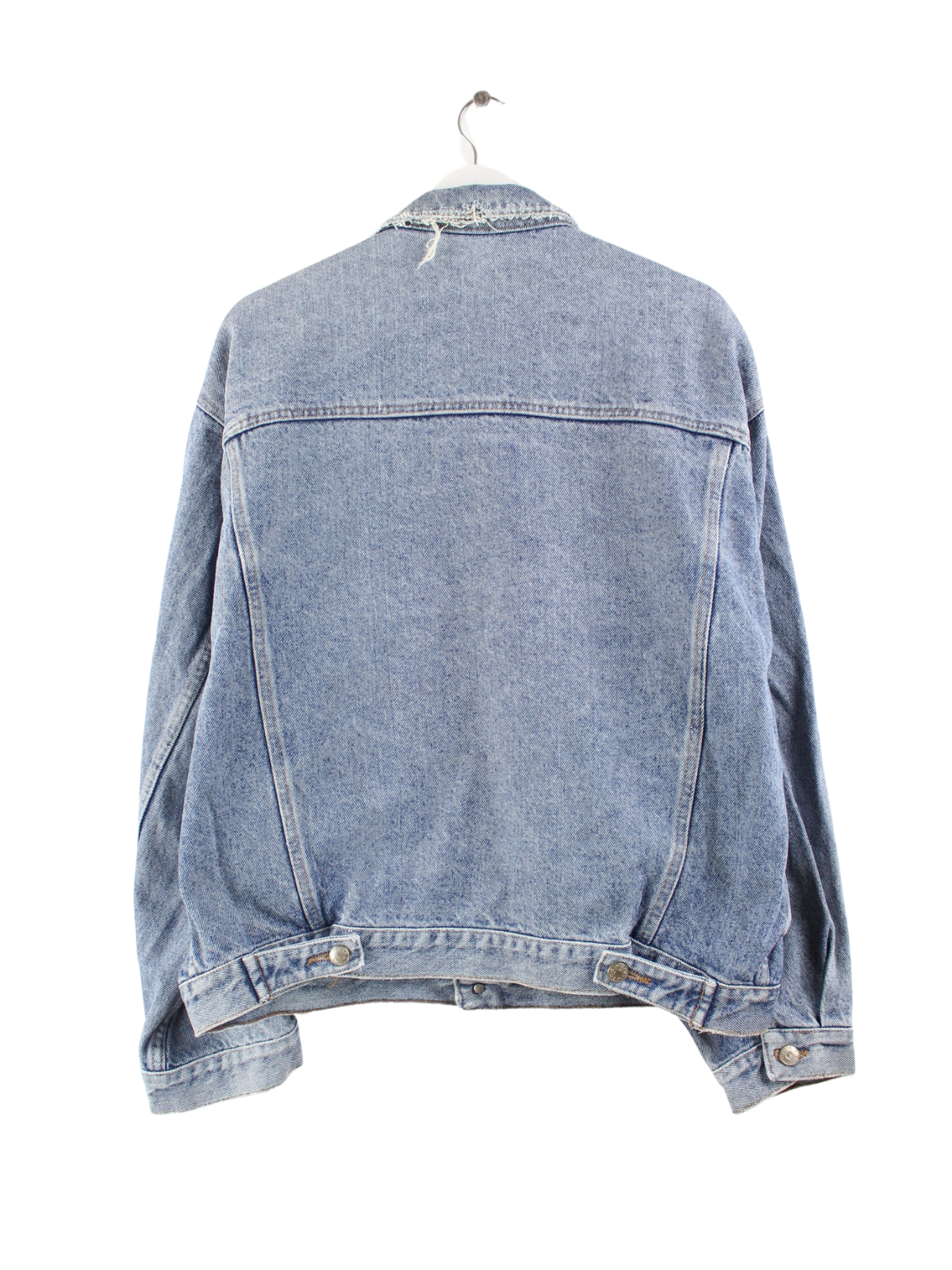 Blaue Vintage Leichte Jacke aus den 90'ern in Größe L. Sie ist aus Baumwolle hergestellt und in gutem Zustand bei uns zu bekommen.