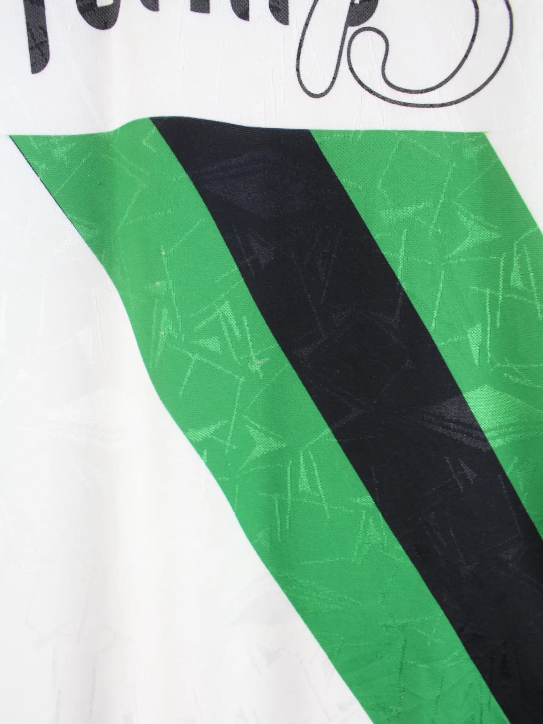 Vintage Jersey in Größe XXL aus den 90'ern. Es ist aus Synthetik gefertigt und in Weiß im Bestand.
