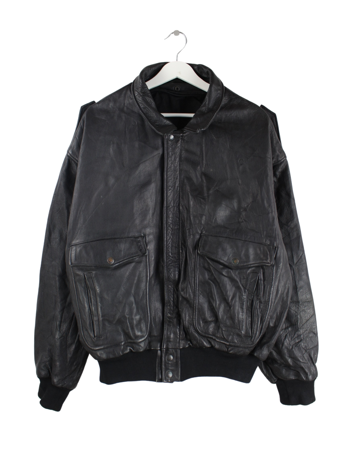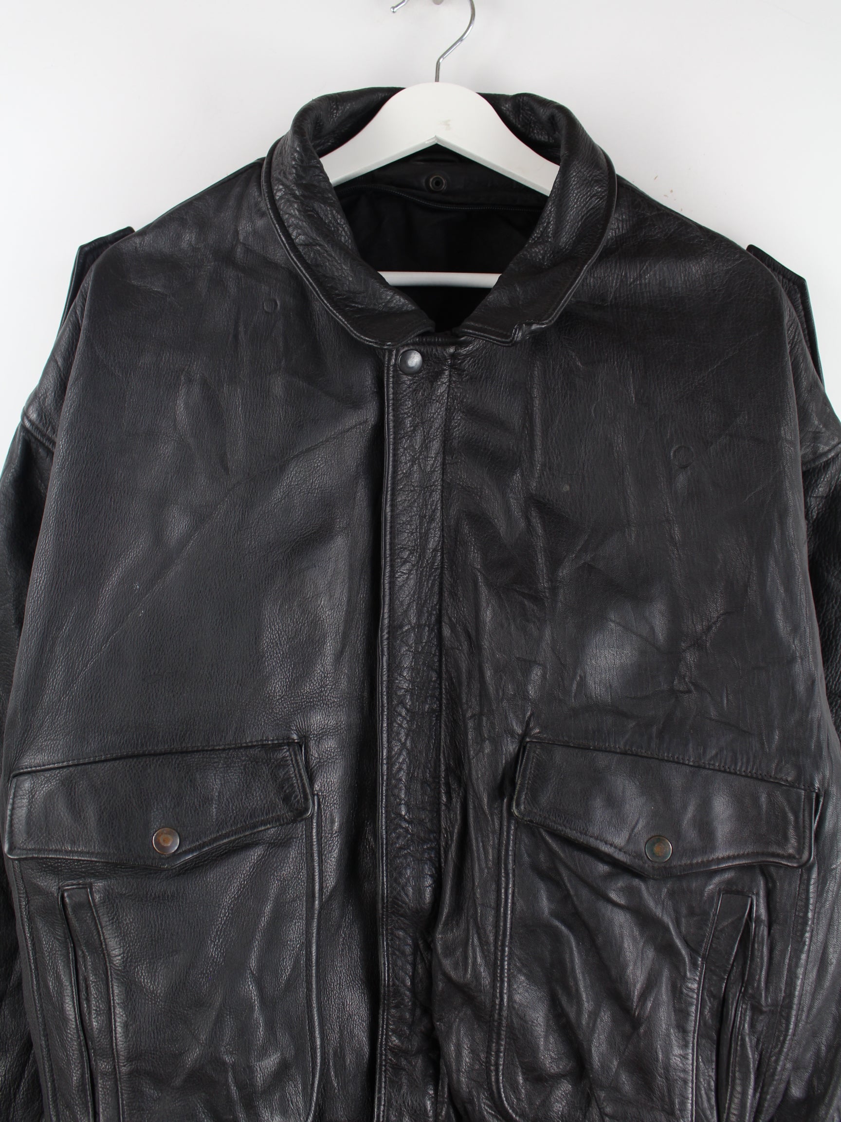 Vintage 90s Leder Bomber Jacke Schwarz L