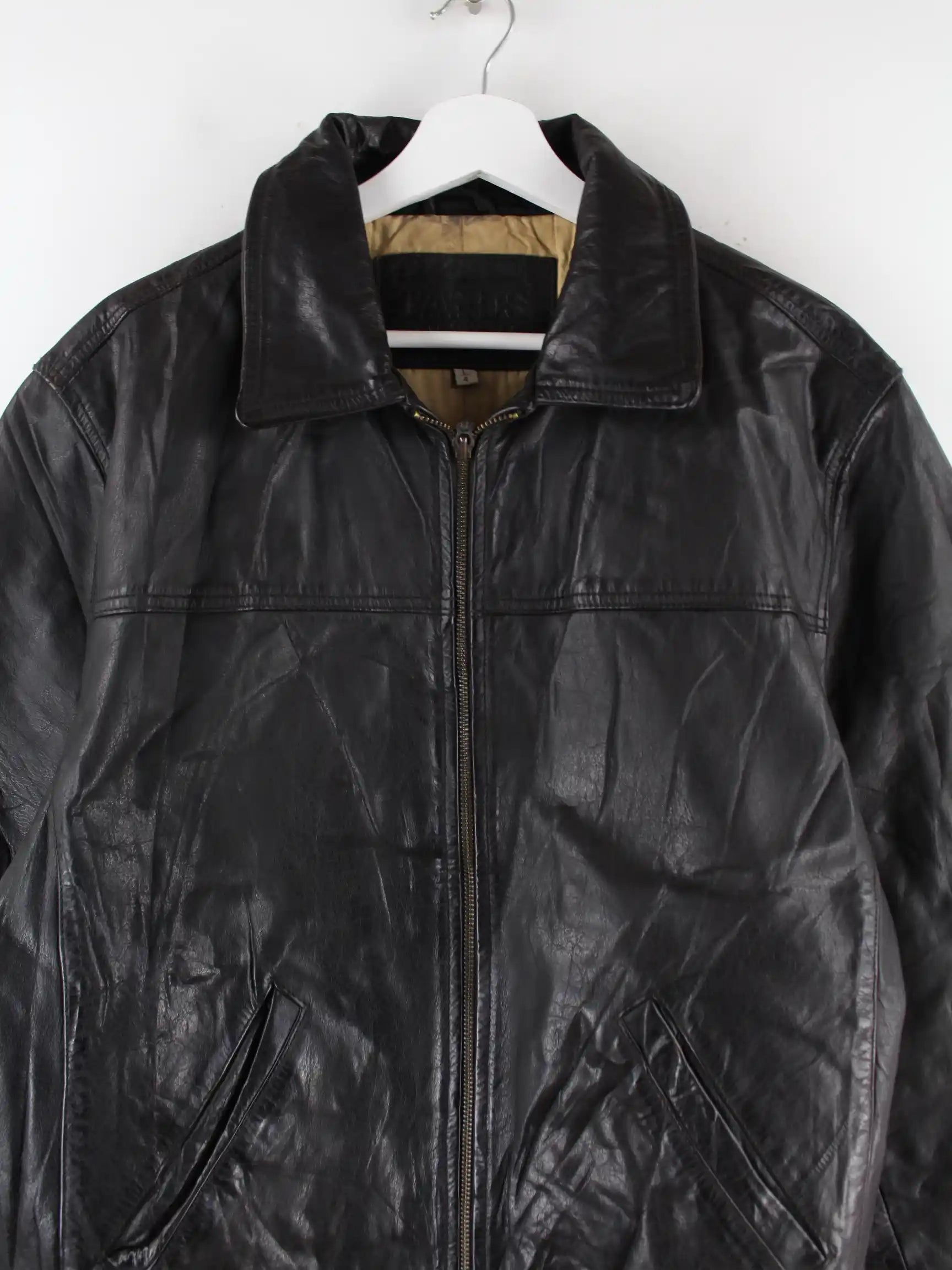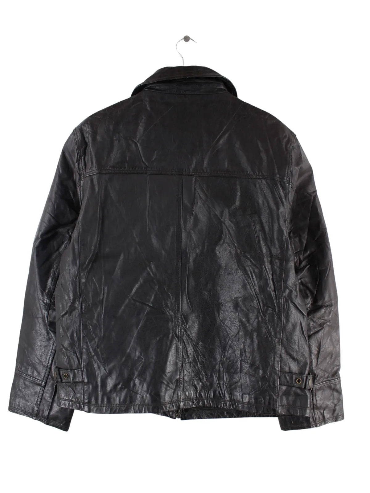 Schwarze Vintage Jacke aus den 90'ern in Größe L. Sie ist aus Leder gemacht und in sehr gutem Zustand zu bekommen.