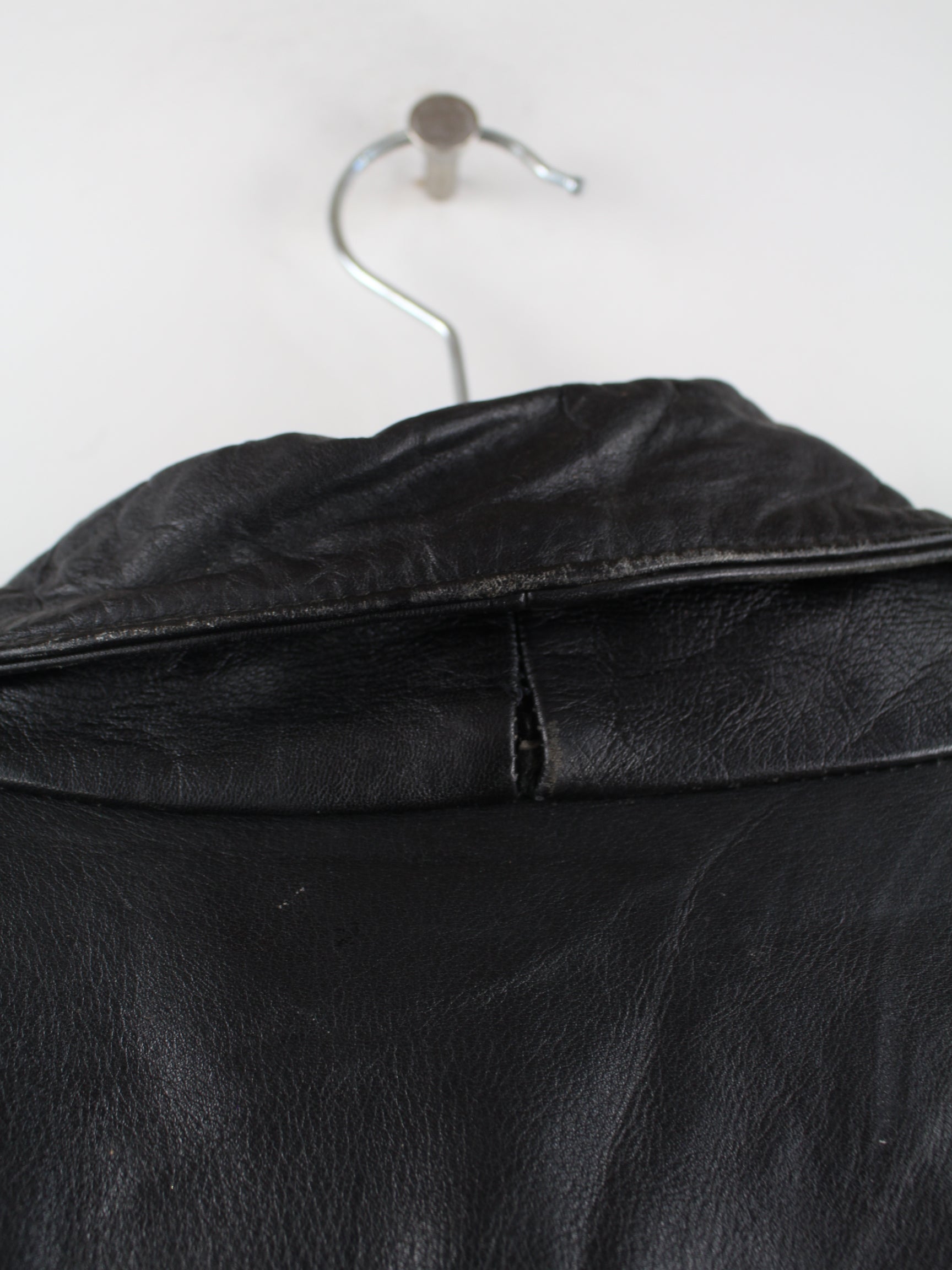 Vintage Jacke in Größe XL aus den 90'ern. Sie ist aus Leder gemacht und in Schwarz auf Lager.