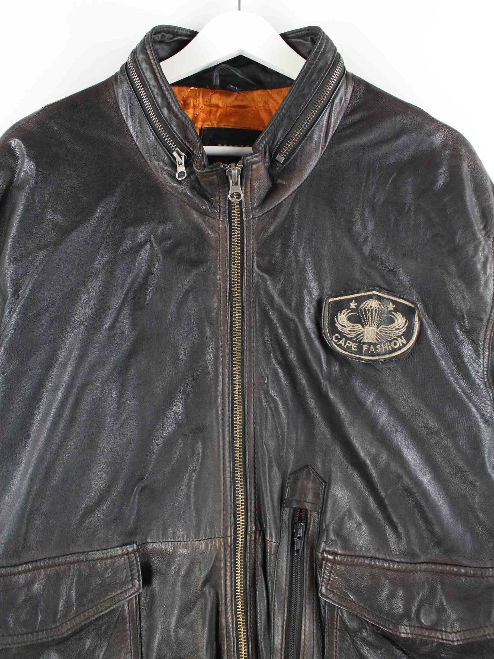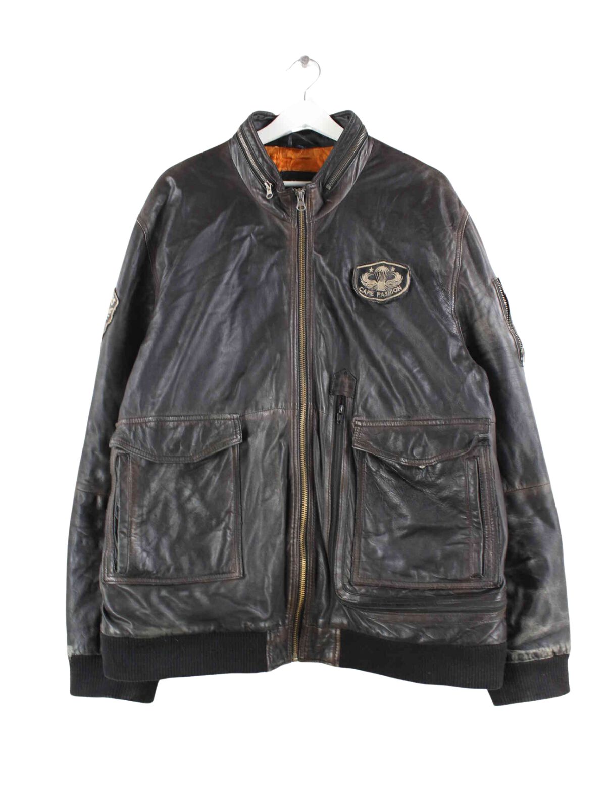 Braune Vintage Jacke aus den 90'ern in Größe 3XL. Sie ist aus Leder hergestellt und in gutem Zustand vorrätig.