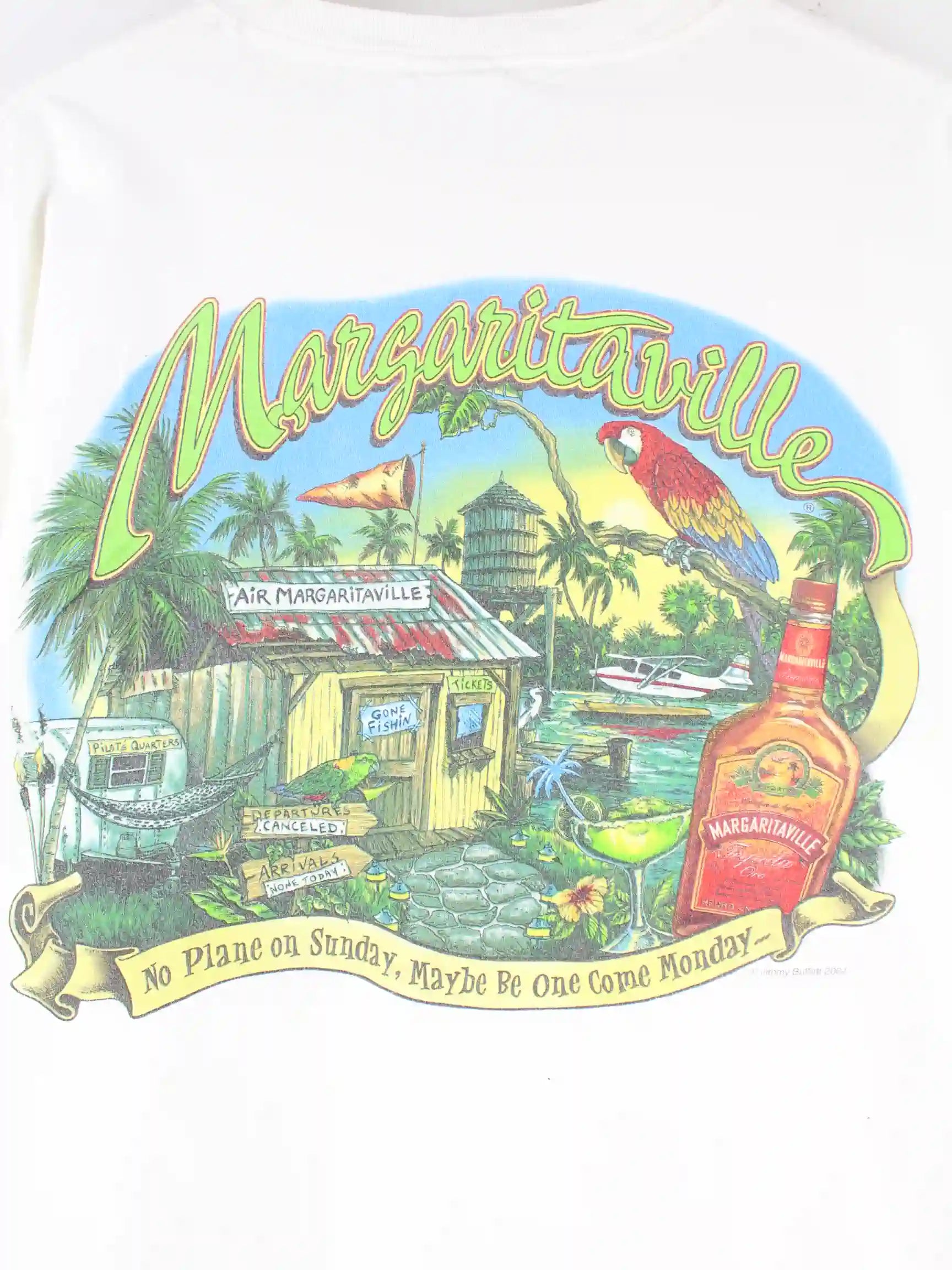 Vintage T-Shirt in Größe XL aus den 90'ern. Es ist aus Baumwolle gefertigt und in Weiß vorrätig. Mit seltenem Margaritaville Print.