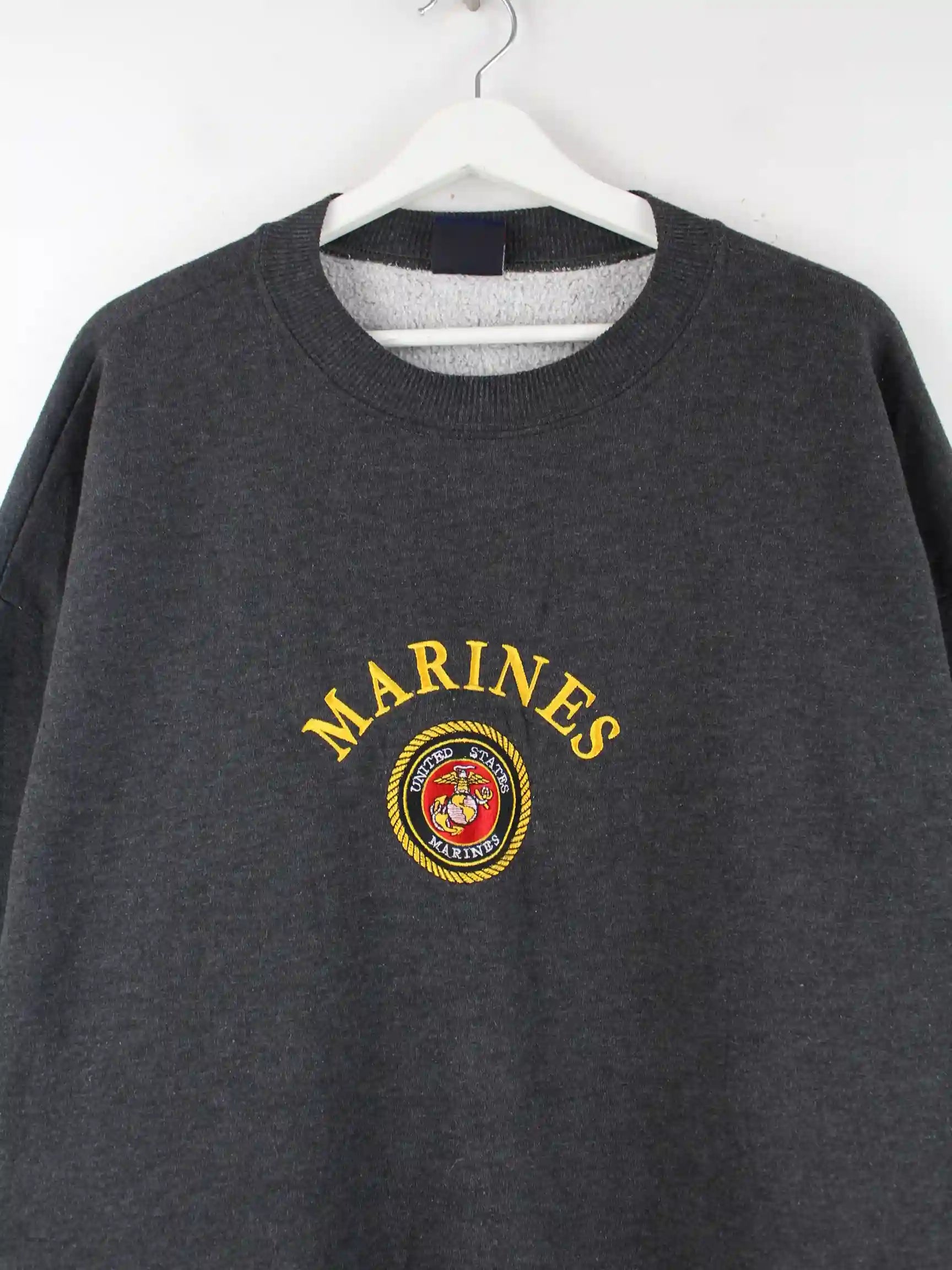 Vintage 90s Marines Embroidered Sweater Grau XL