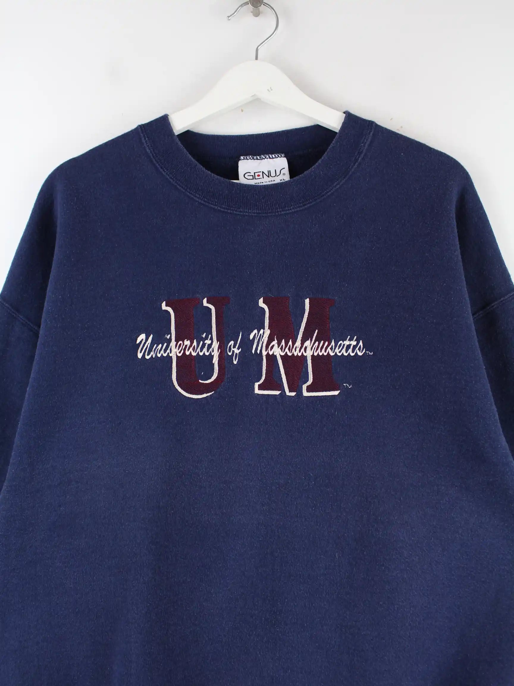 Vintage 90s Massachusetts Embroidered Sweater Blau XL