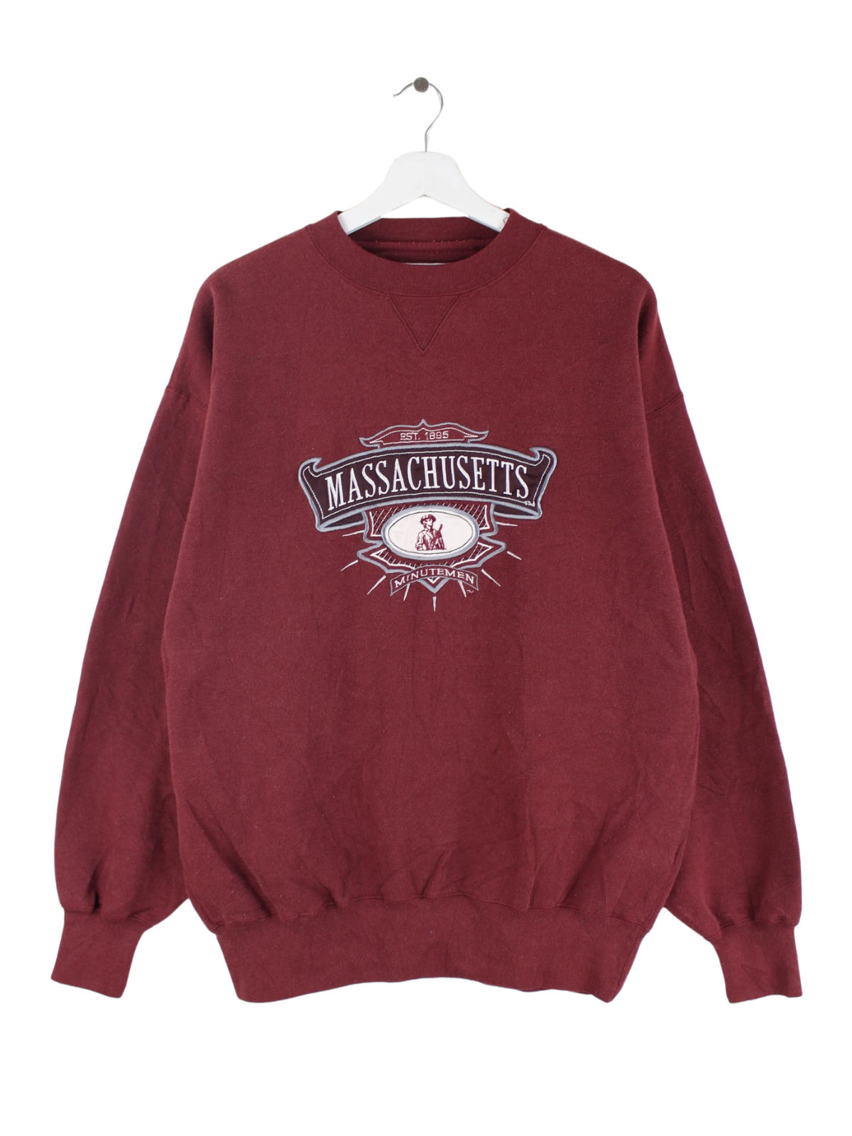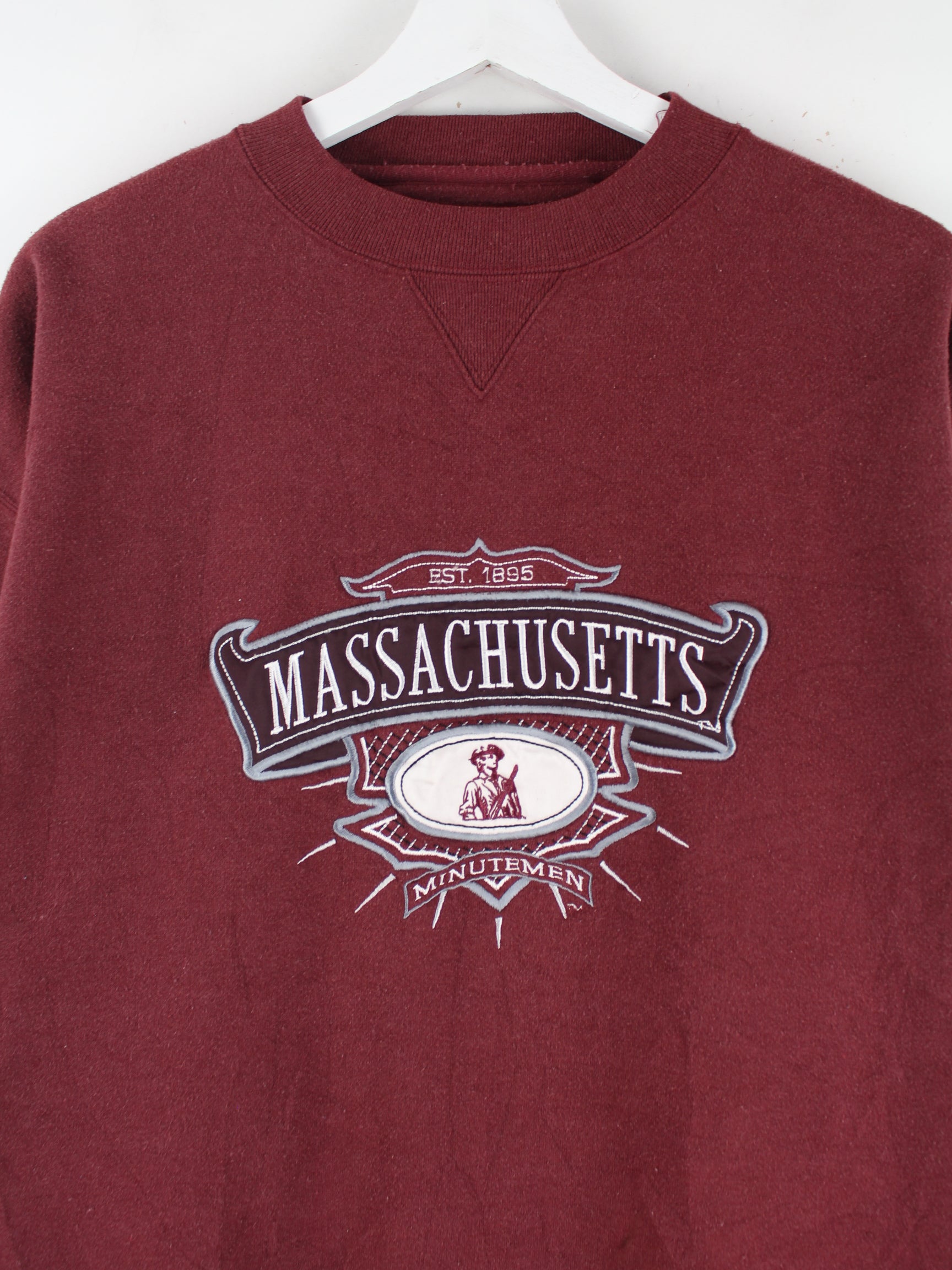 Vintage 90s Massachusetts Embroidered Sweater Rot L