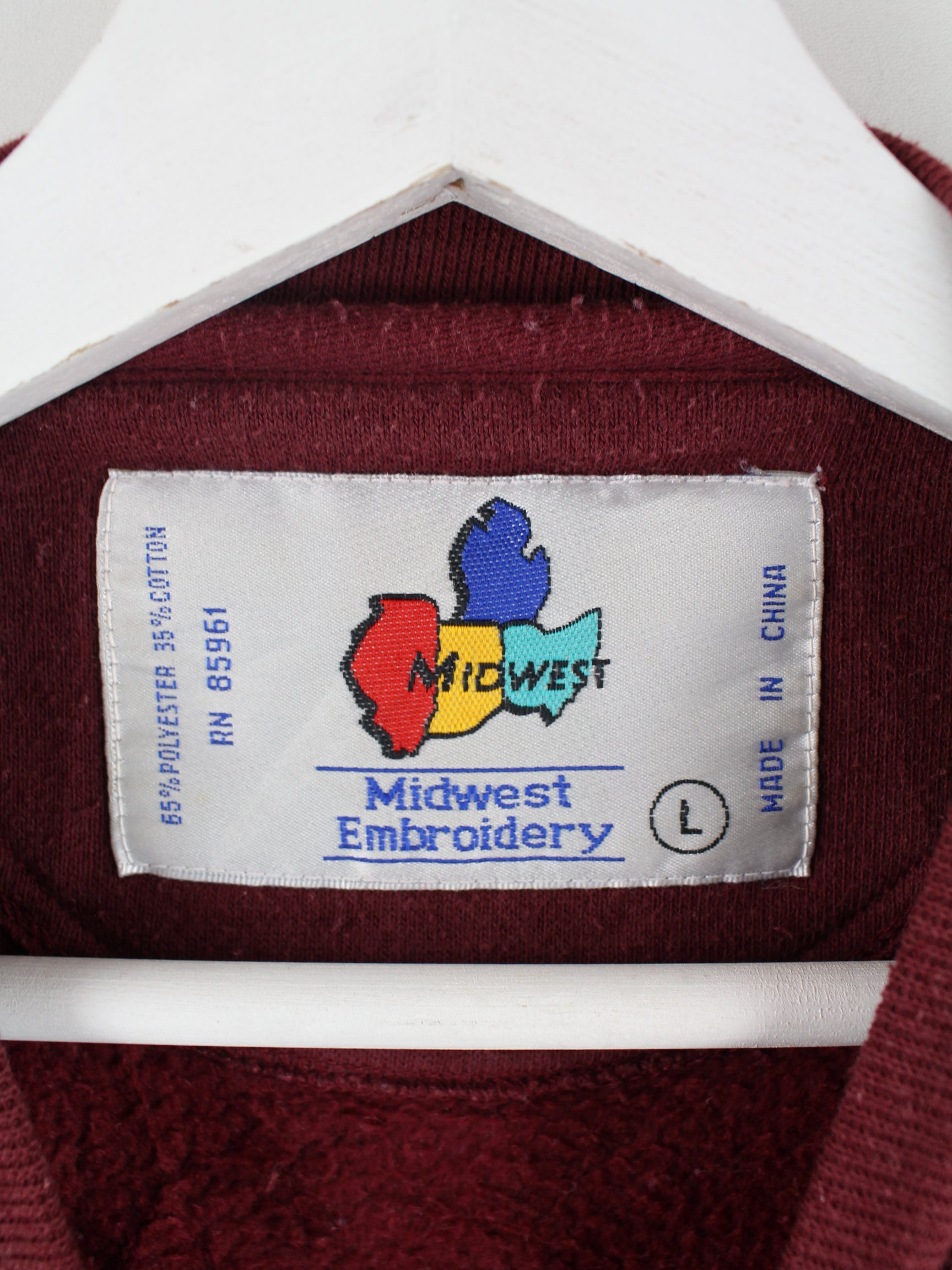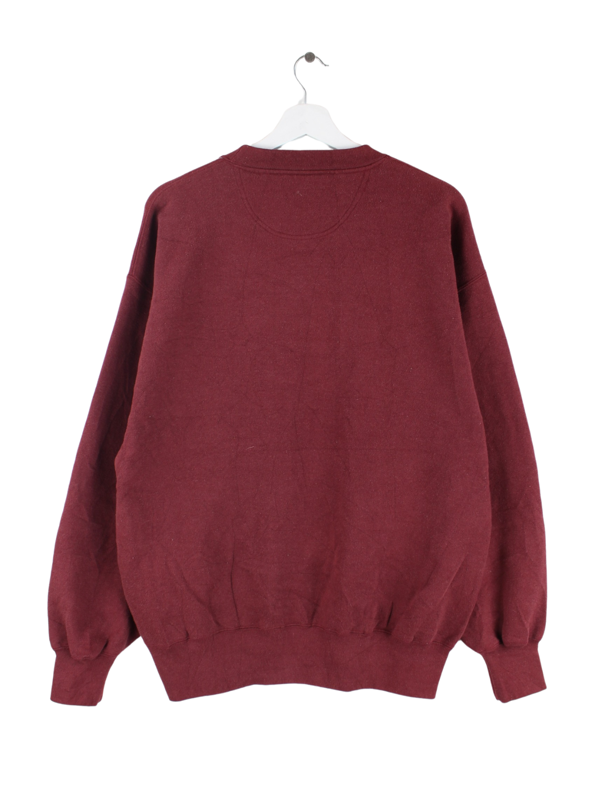 Vintage Sweater mit gesticktem Logo in Größe L aus den 90'ern. Er ist aus einer Baumwollmischung hergestellt und in Rot zu haben.