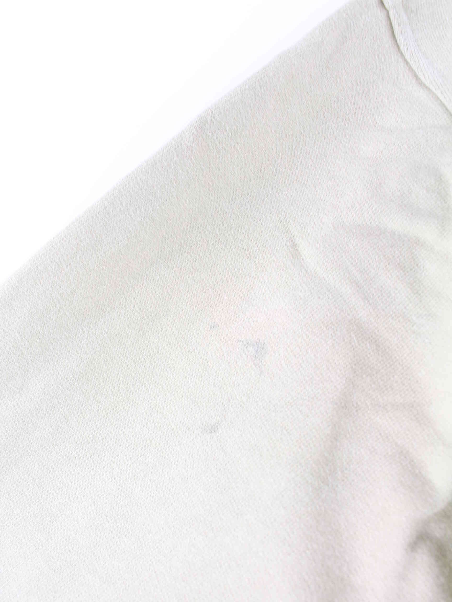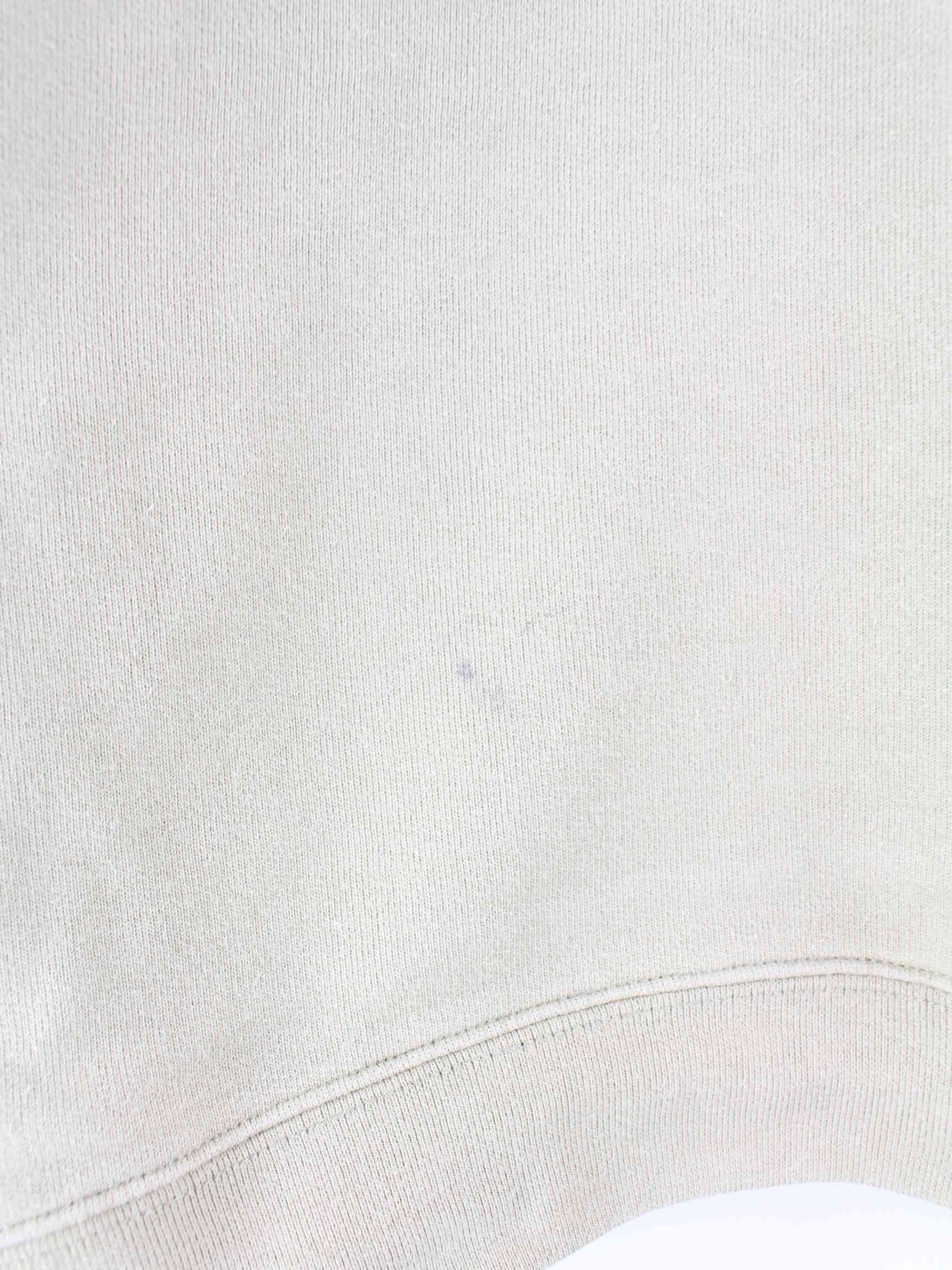 Beigefarbener Vintage Sweater aus den 90'ern in Größe S. Er ist aus einer Baumwollmischung angefertigt und in gutem Zustand vorrätig. Mit chiquem Sons Print.
