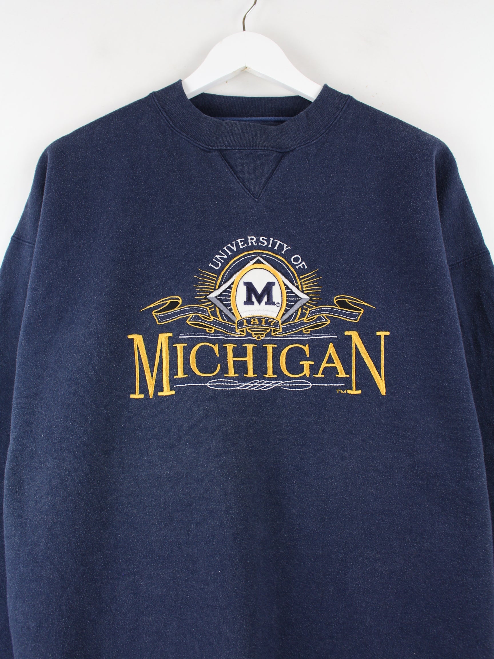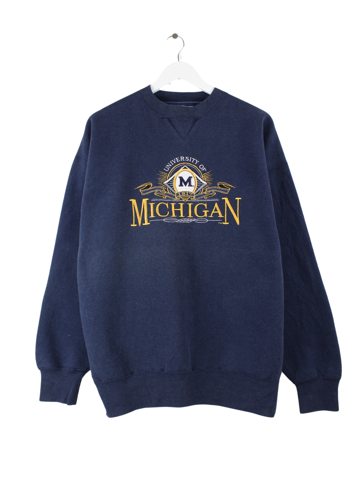 Vintage 90s Michigan Embroidered Heavy Sweater Blau L
