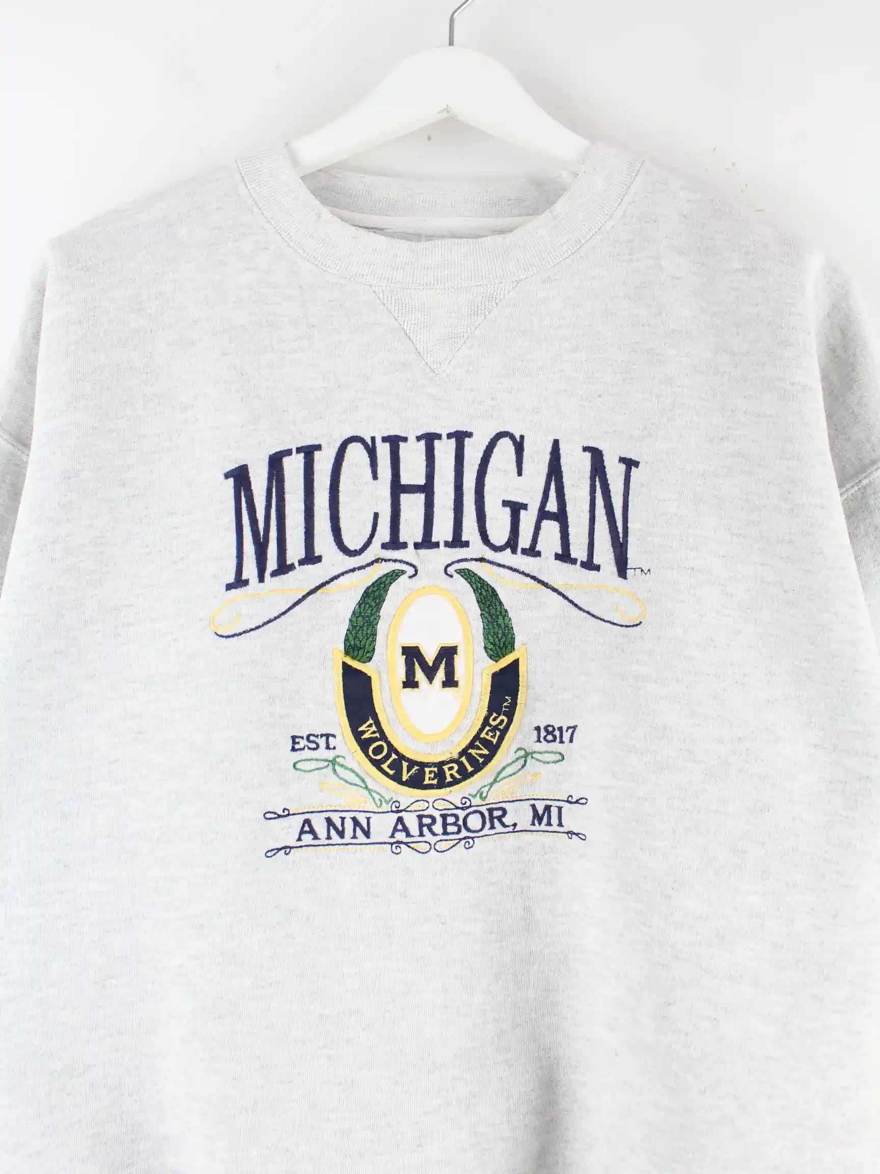 Vintage 90s Michigan Wolverines Embroidered Sweater Grau L